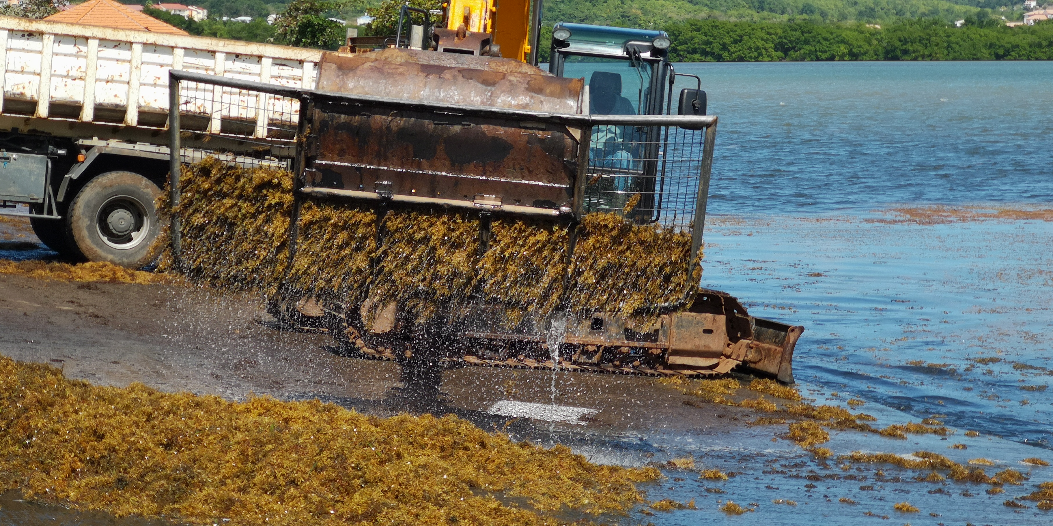 Über die Ursache der explosionsartigen Vermehrung dieser Alge gibt es unterschiedliche Informationen und Vermutungen. Fest steht für uns nur: Wo diese Alge an die Küste geschwemmt wird, ist der entstehende Geruch nicht auszuhalten. Einzige Möglichkeit, dem Gestank zu entkommen ist zumindest hier in der Gegend um Martinique, sich von der windseitigen Küste fernzuhalten. Im Lee der Insel haben wir bisher nur vereinzelt Pflanzen gefunden.