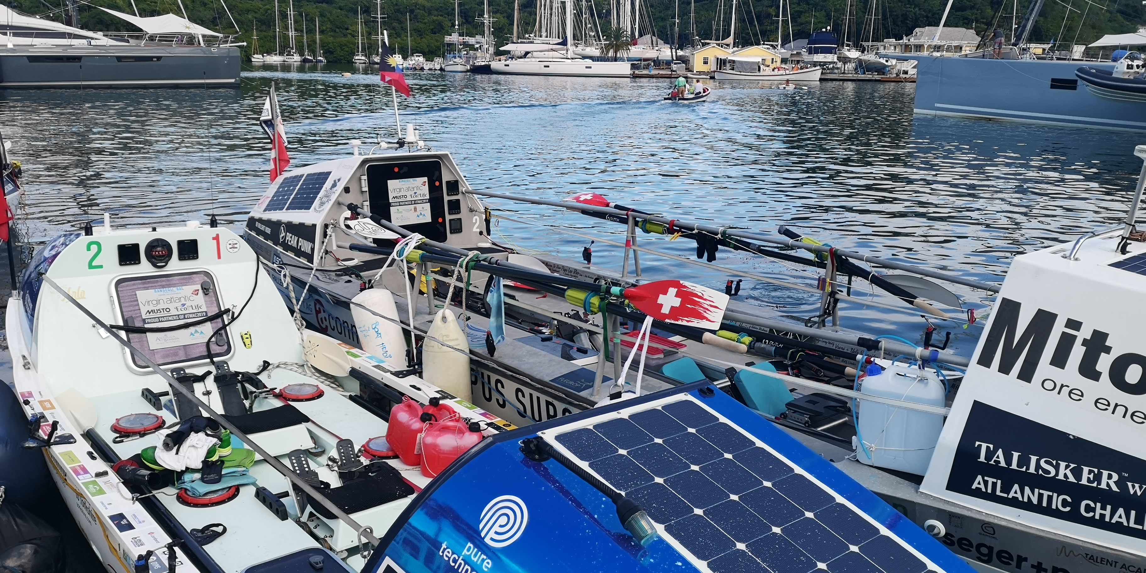 Wie schon im letzten Jahr sehen wir in English Harbour Boote der Talisker Whiskey Rallye. Die Teilnehmer rudern von der kanarischen Insel Gomera aus nach Antigua English Harbour. Am Morgen sind gerade mehrere Boote eingetroffen, darunter das einer Schweizer 4er Damen-Mannschaft. Mit Teilnehmern von 2 Mannschaften sprechen wir kurz. 45 Tage waren sie gerudert in 2h Schichten! Unvorstellbar. Dabei gibt es noch welche, die nur zu zweit gehen. Und die Verrückten, die komplett alleine rudern!