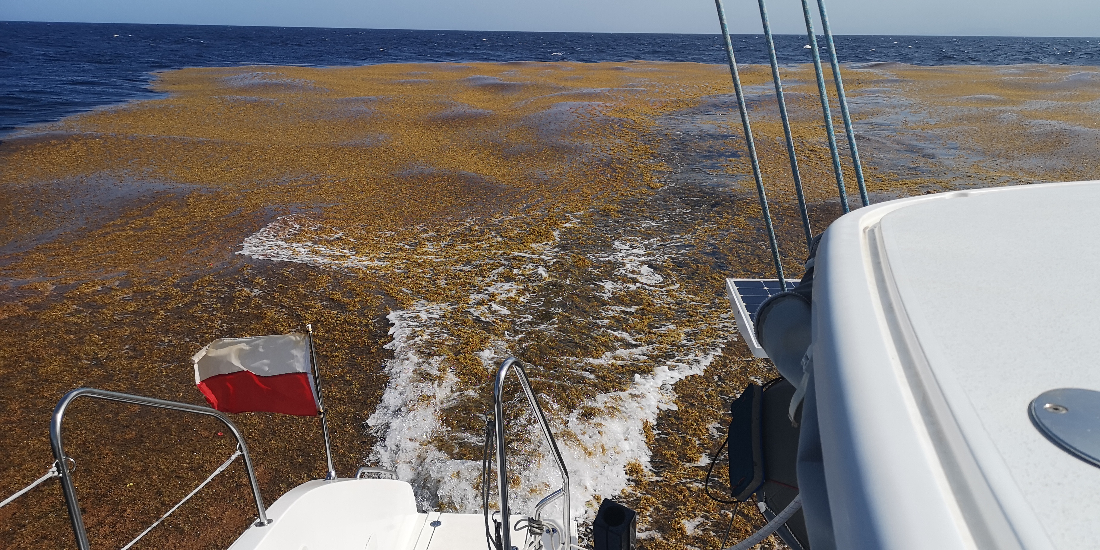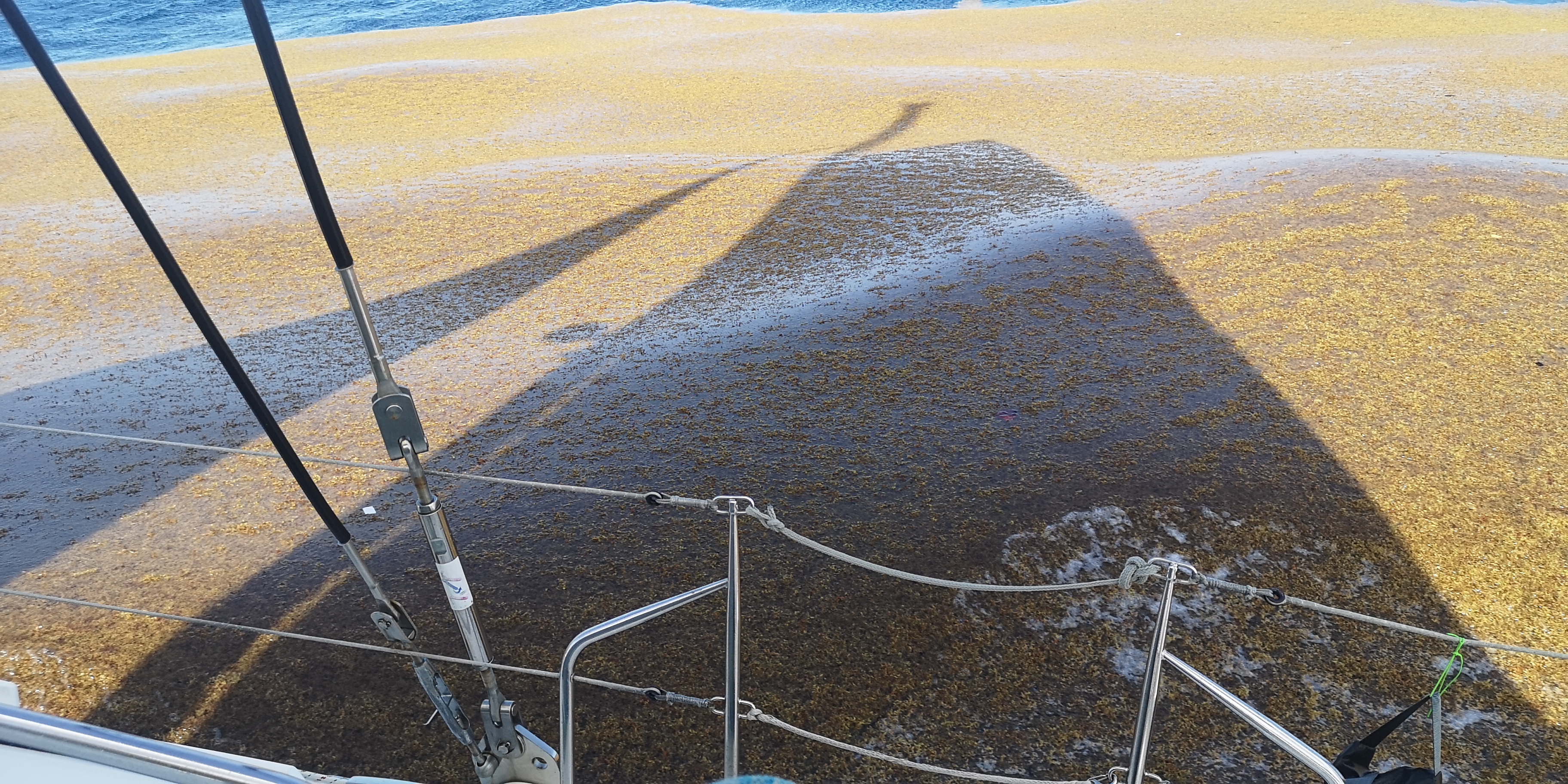 Unterwegs heisst es diverse, teils ausgedehnte, Sargassum-Teppiche zu durchqueren. Die Braunalge hatte letzte Saison die Karibik in rauen Mengen heimgesucht. Diese Saison war es nicht so wild – bis vor etwa 3 Wochen die ersten grösseren Teppiche auftauchten.