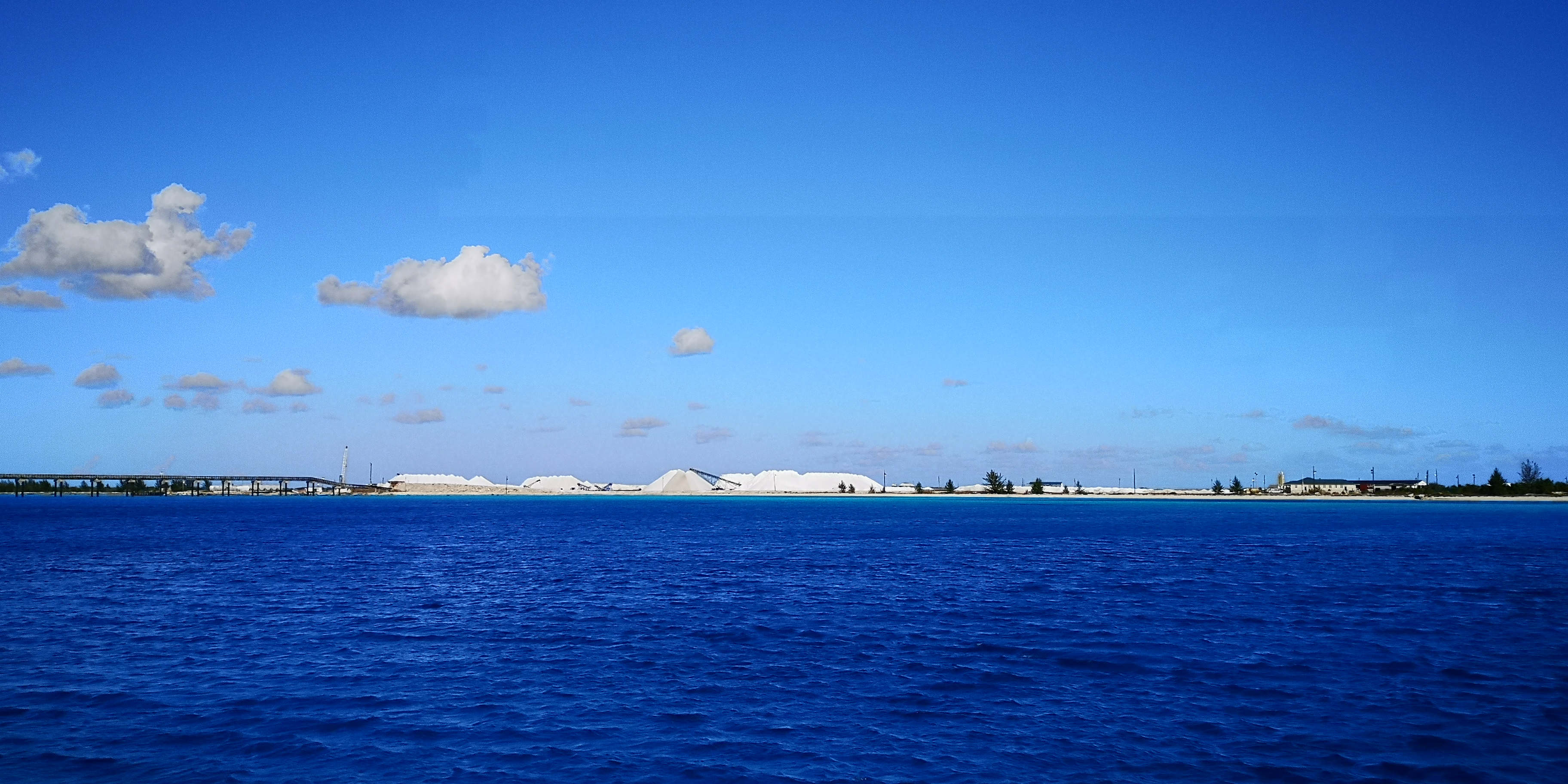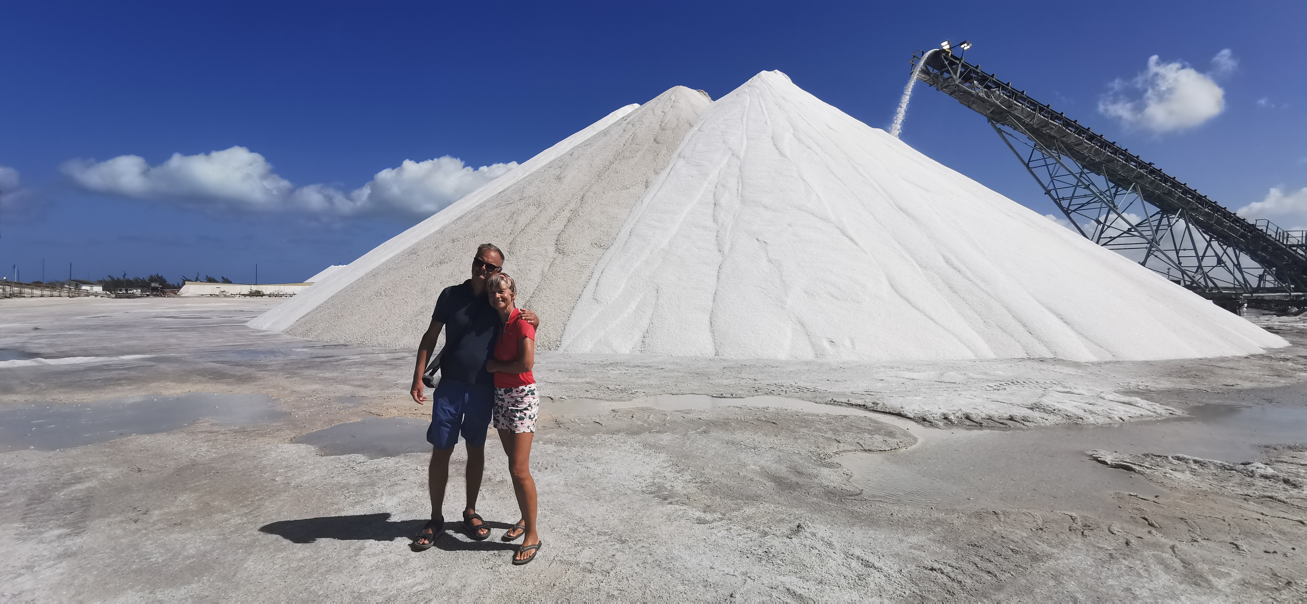 Der Ankerplatz vor Matthew Town wird uns am 2.Tag zu schwellig und wir verlegen uns in die Man of War Bay. Hier liegt die Betriebsstätte von Morton Salt. Die Salzberge leuchten strahlend weiß hinter feingelbem Sandstrand und türkisem Wasser. Leider ist keiner der Tour Guides verfügbar, so dass wir weder die Flamingos besuchen noch eine Tour durch die Salzproduktion bekommen können. Die Blicke auf die Salzberge sind aber auch so beeindruckend.