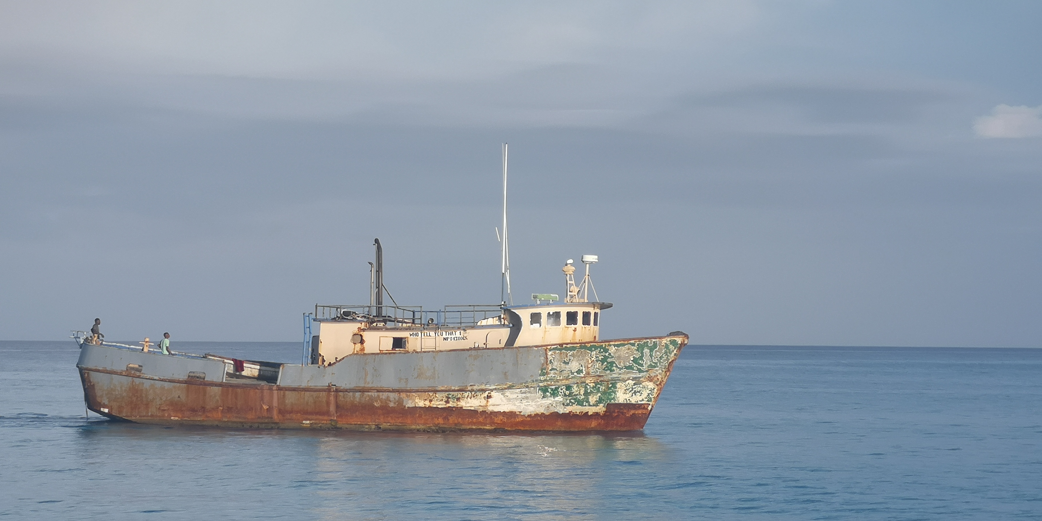 Ob George den fast wie ein Wrack aussehenden haitianischen Frachter offiziell in Matthew Town einklarieren ließ, scheint uns fraglich. Die Crew hängt im kleinen Hafen herum. Allerhand wartet am Dock auf das Verladen. Mitgebracht hat man nichts, wie die Crew auf Frage berichtet, man holt nur ab. Dabei hat der Frachter – wohl durch eintretendes Wasser – bereits solche Schlagseite, dass man sich einen Transport von Waren kaum vorstellen kann. Wertvolle Ware wird das nicht sein, gibt es doch auf Great Inagua nichts außer Salzproduktion, die anders verschifft wird, und nicht mehr Gebrauchtes. Ganz offensichtlich nutzt man hier die Nachbarschaft zum armen Haiti und hat keiner der Offiziellen in Matthew Town etwas dagegen.