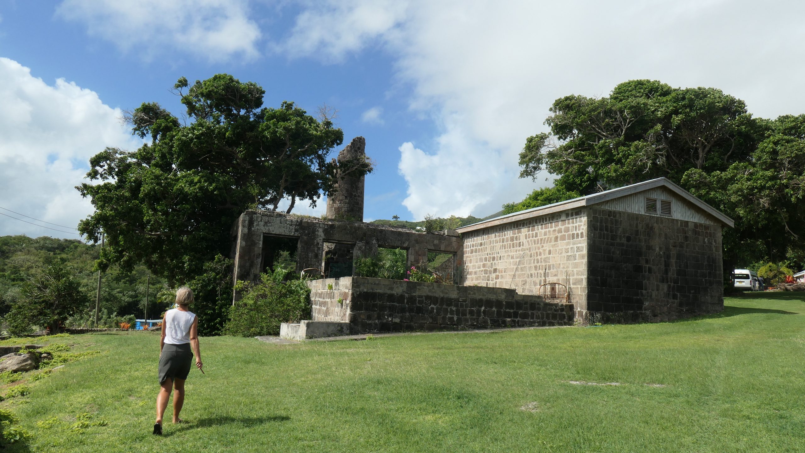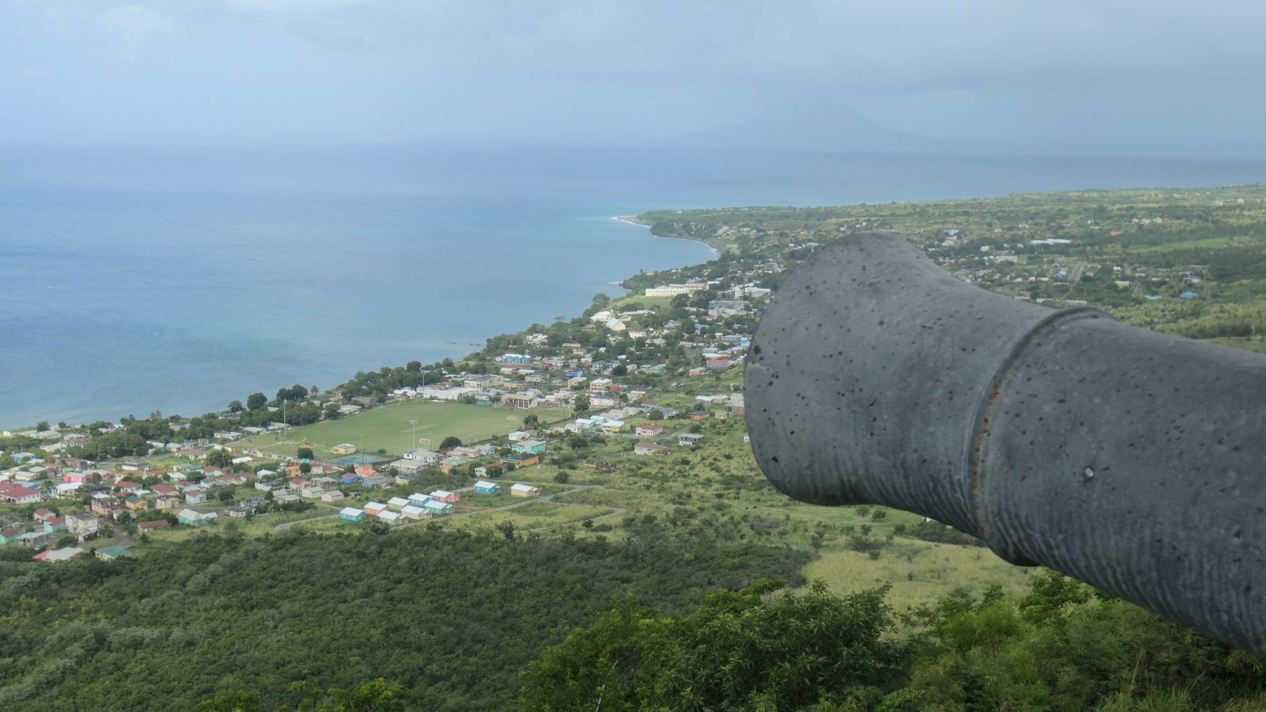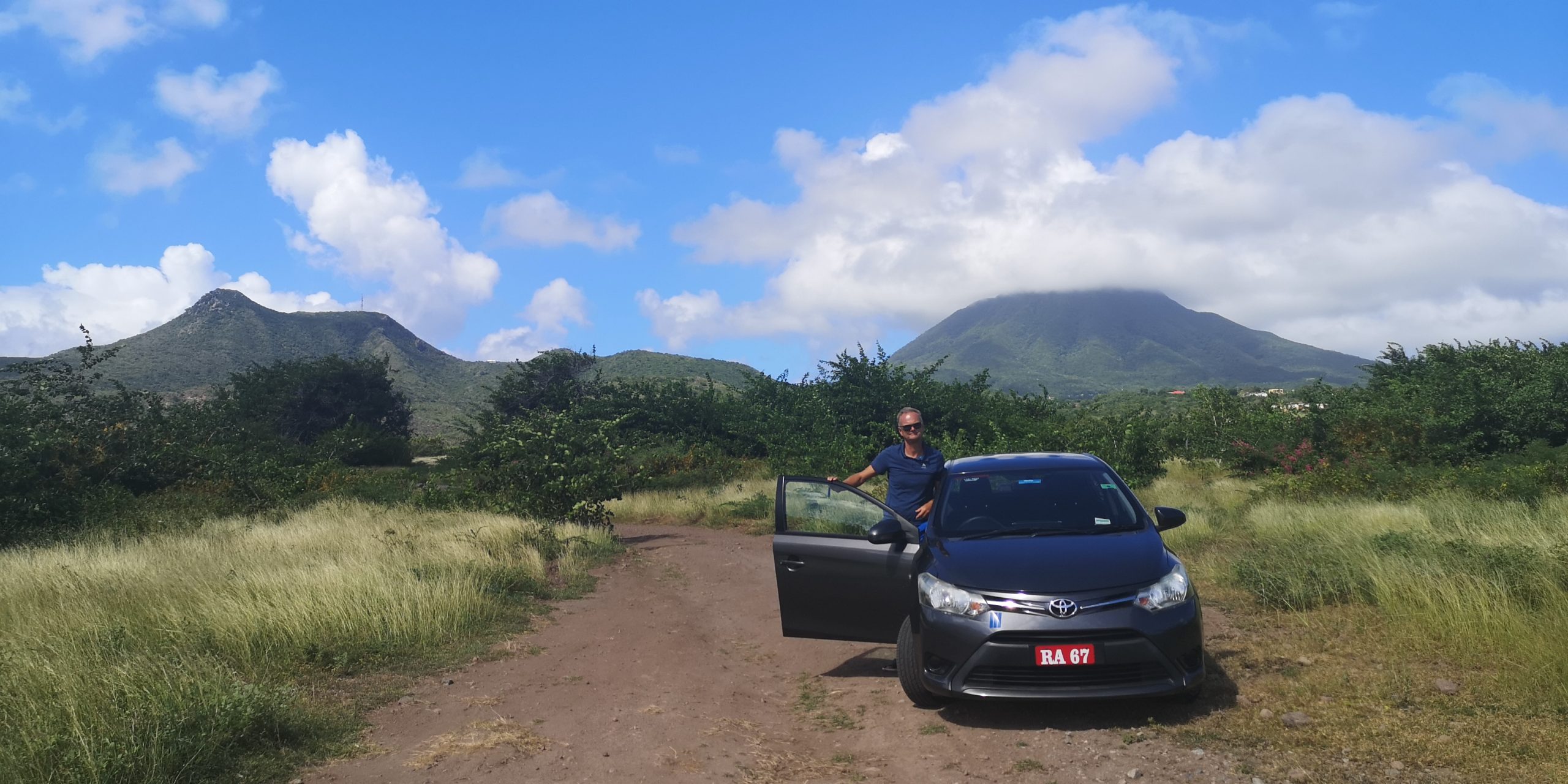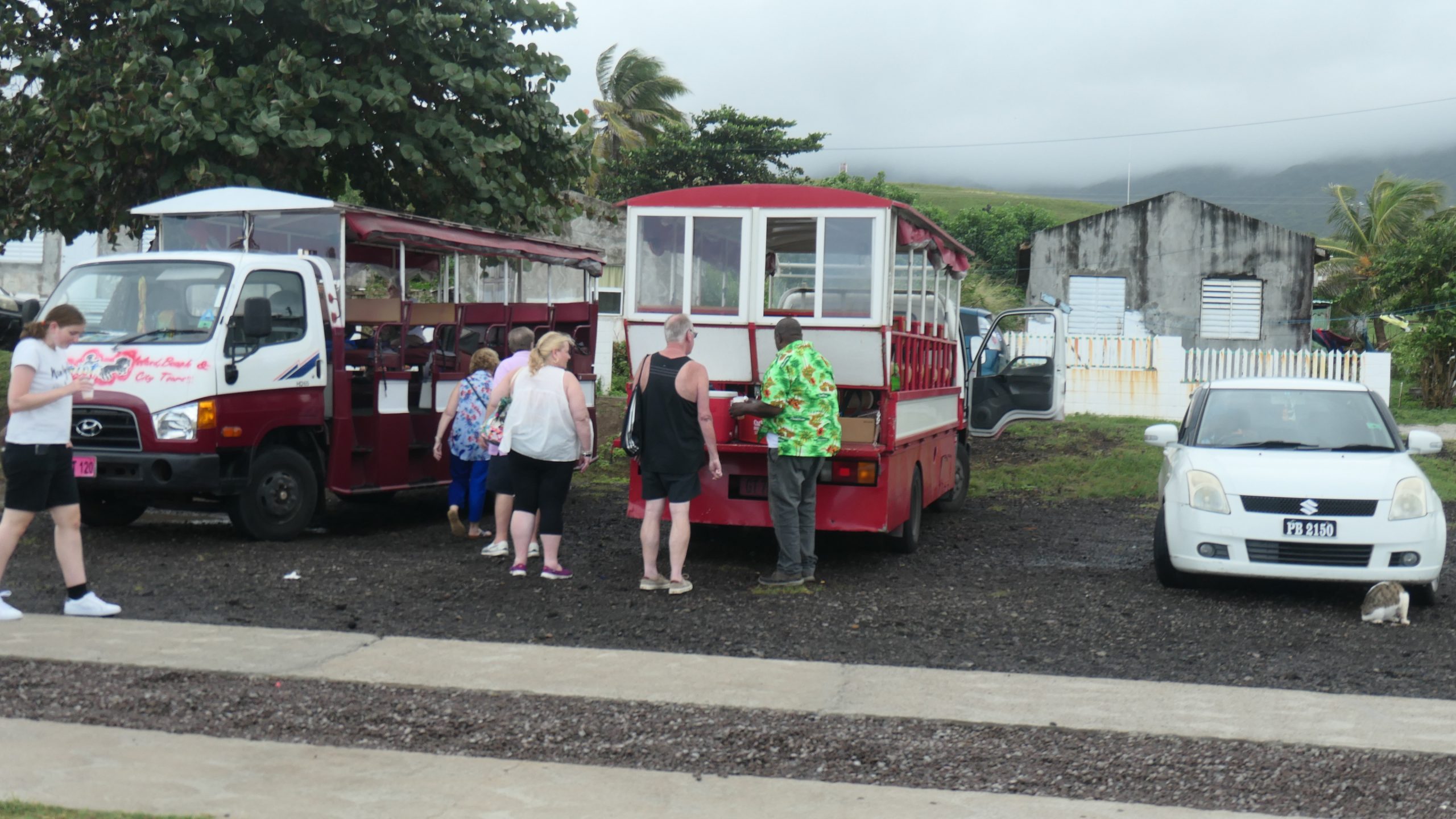 Statt dieser Tour buchen wir eine private Tour. Auf unserem Spaziergang aus der Ankerbucht Salt Plage bei Christophe Harbour hält ein Kleinwagen an und wir kommen mit dem Fahrer ins Gespräch über Taxifahrten. Das hat schon öfter so funktioniert und wir lassen uns auf den Deal ein, zunächst mit ihm nach Basseterre zu fahren und am nächsten Tag eine Inseltour mit ihm zu machen. Er fährt gut, aber sein Inselenglisch, eine Mischung aus Englisch und Creol, ist nicht immer zu verstehen. Und viel Regen an dem Tag sowie ein Autounfall auf der einzigen Straße an der Windward Seite verhindern, dass wir alles besichtigen können.