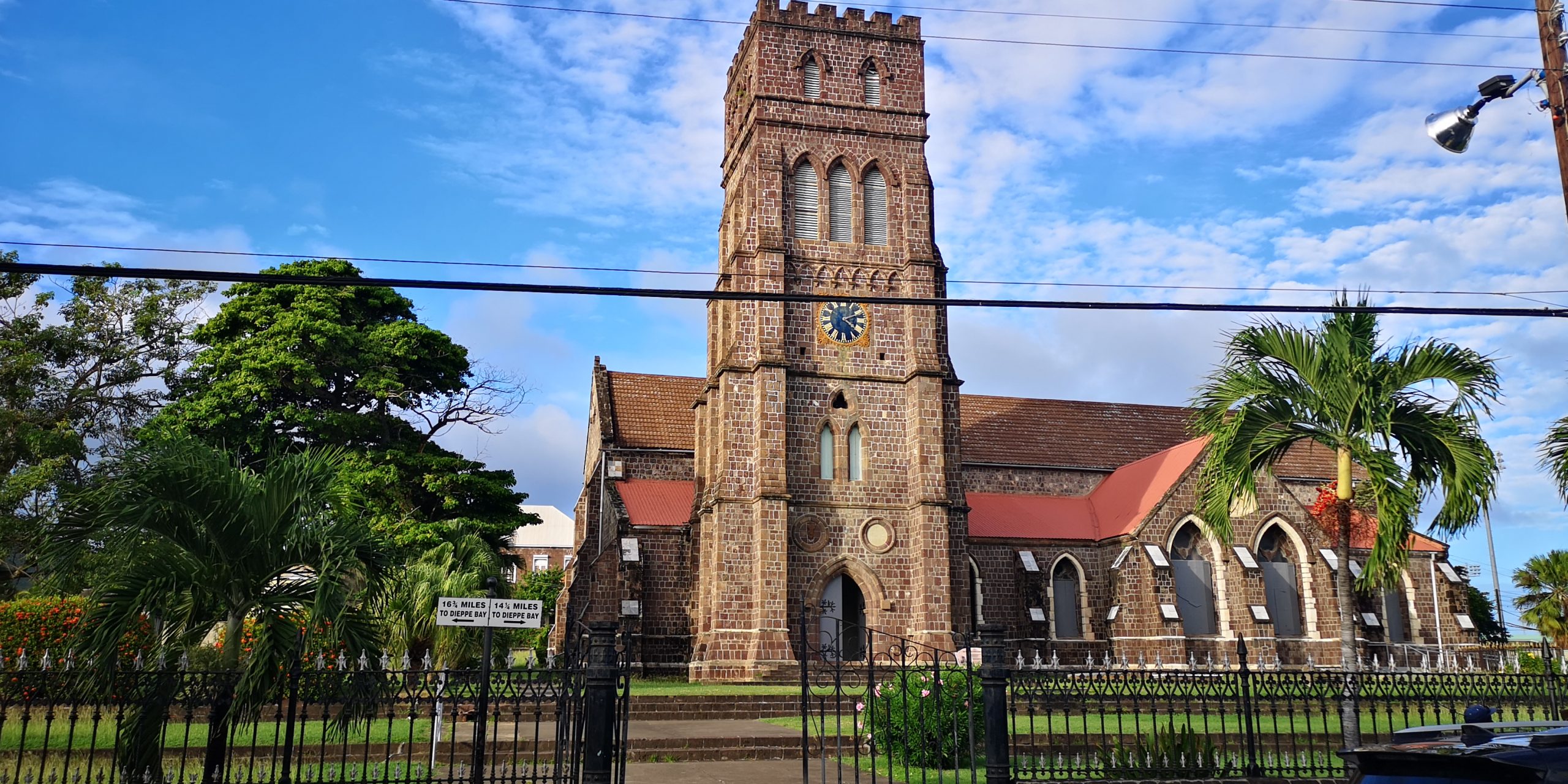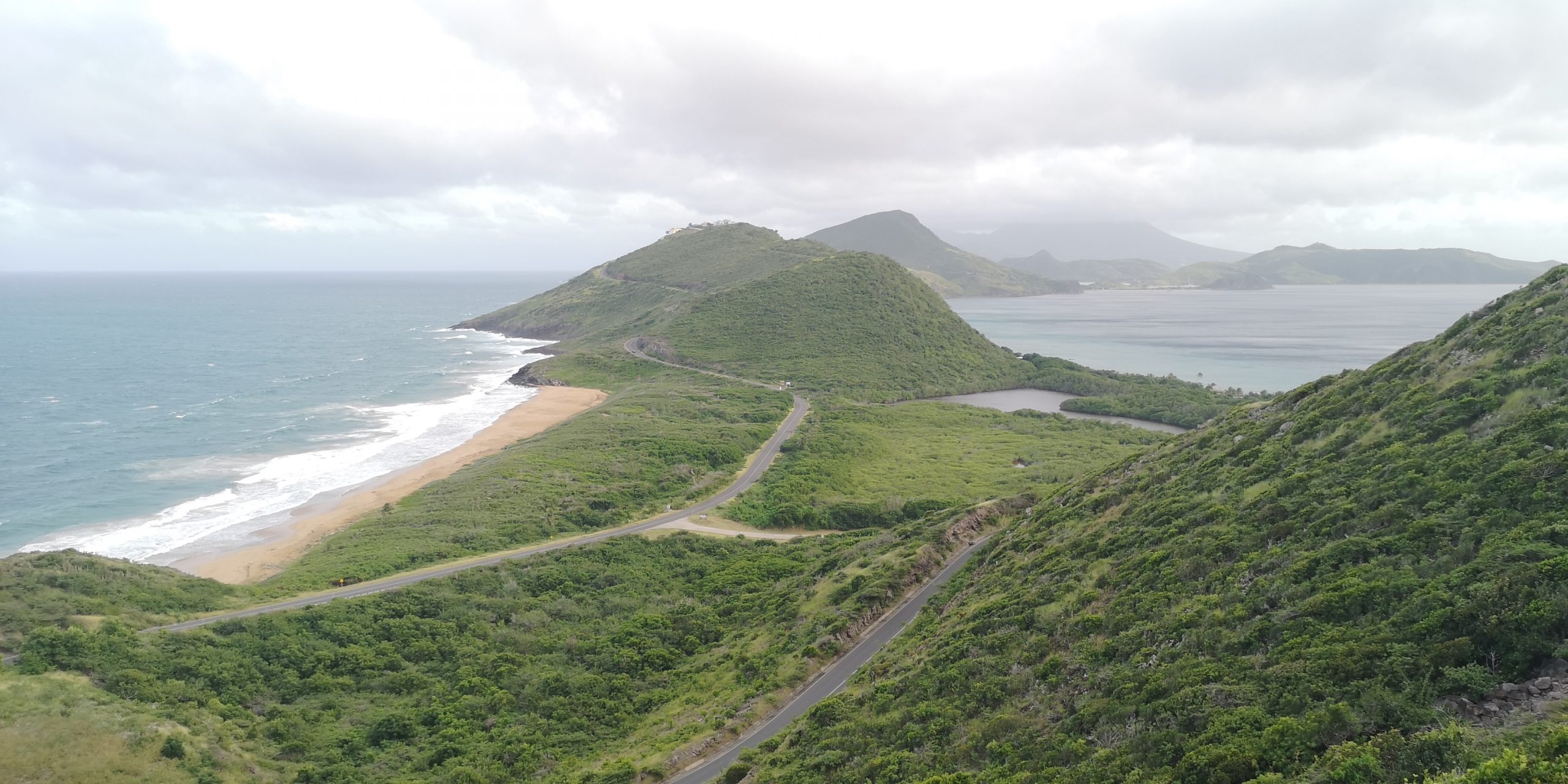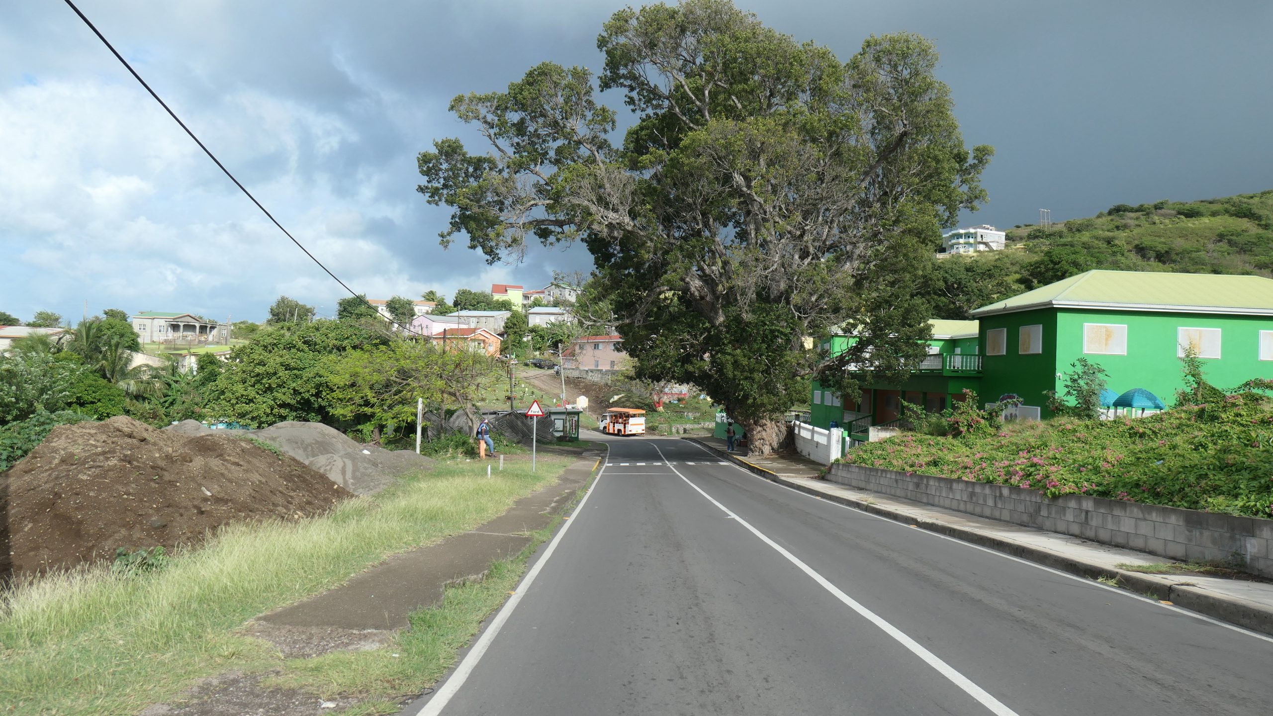 Statt dieser Tour buchen wir eine private Tour. Auf unserem Spaziergang aus der Ankerbucht Salt Plage bei Christophe Harbour hält ein Kleinwagen an und wir kommen mit dem Fahrer ins Gespräch über Taxifahrten. Das hat schon öfter so funktioniert und wir lassen uns auf den Deal ein, zunächst mit ihm nach Basseterre zu fahren und am nächsten Tag eine Inseltour mit ihm zu machen. Er fährt gut, aber sein Inselenglisch, eine Mischung aus Englisch und Creol, ist nicht immer zu verstehen. Und viel Regen an dem Tag sowie ein Autounfall auf der einzigen Straße an der Windward Seite verhindern, dass wir alles besichtigen können.