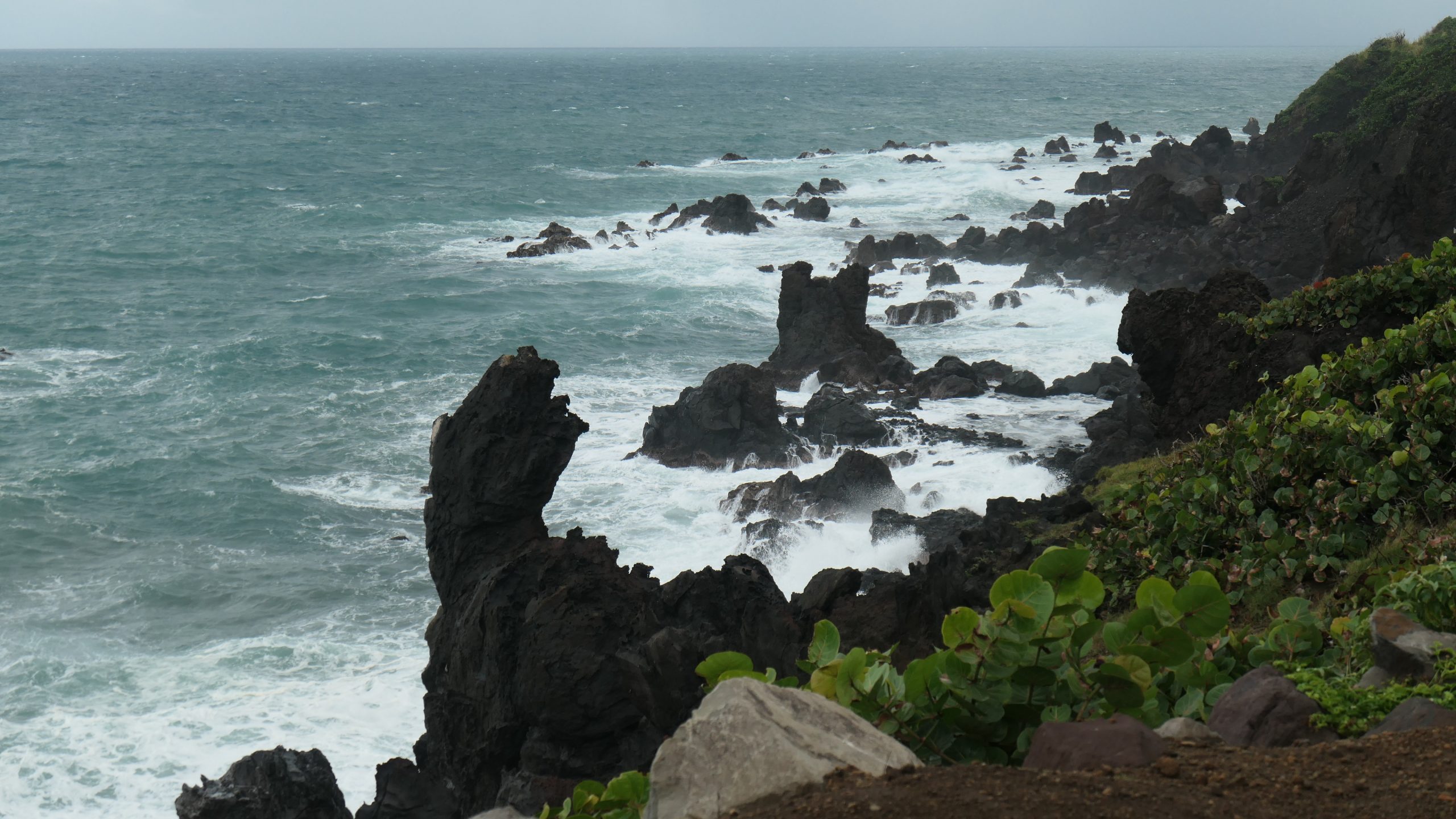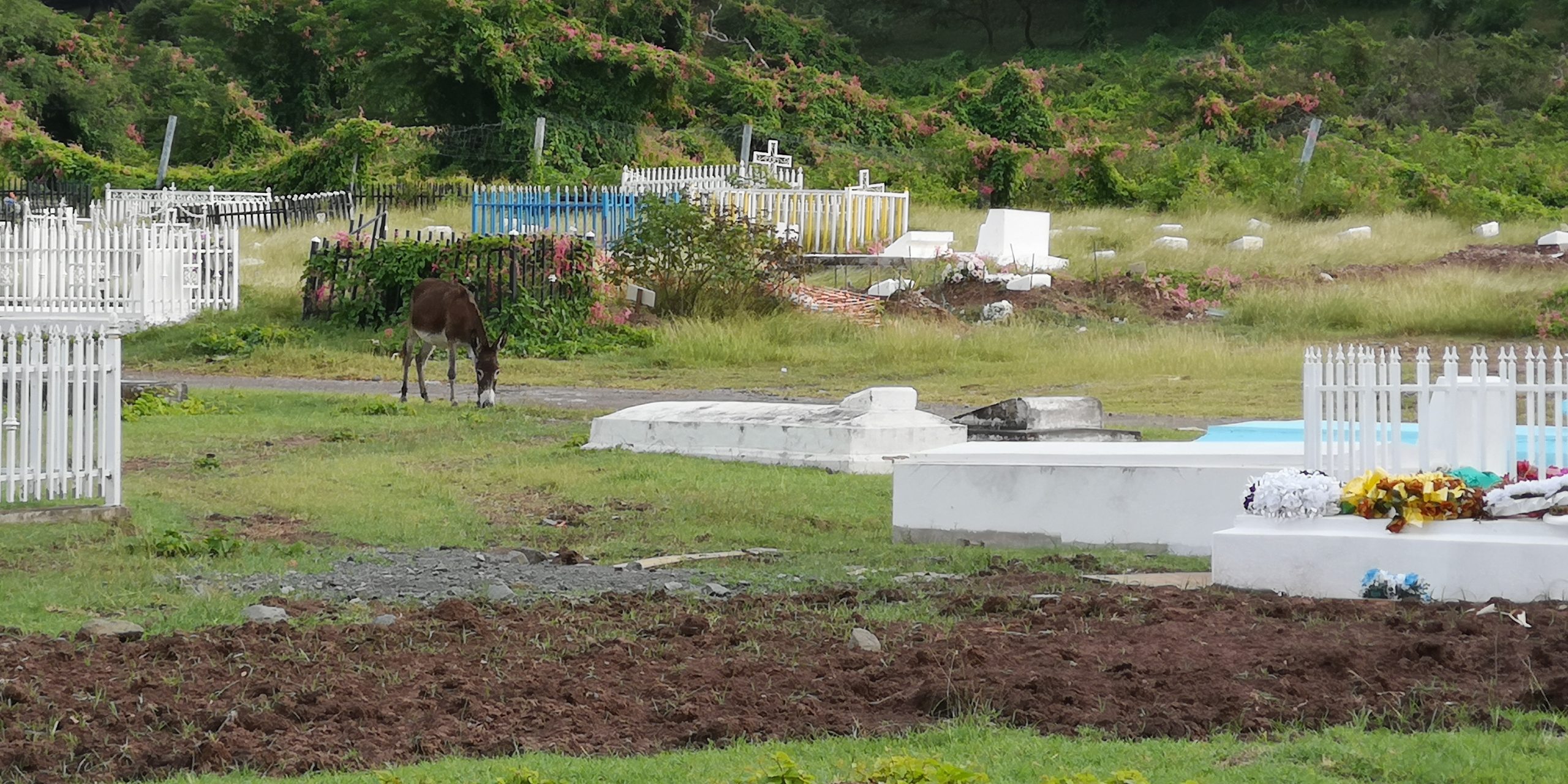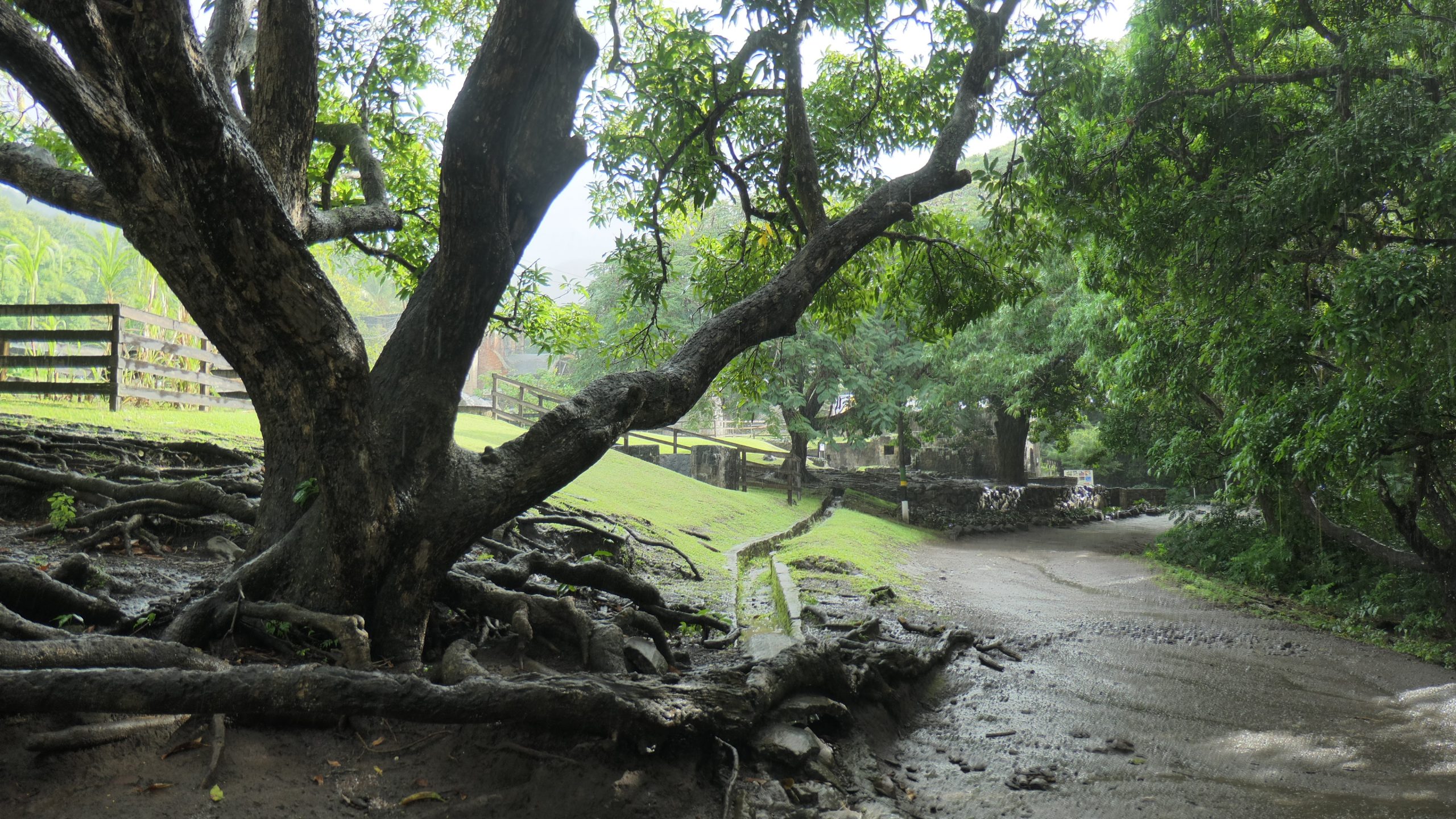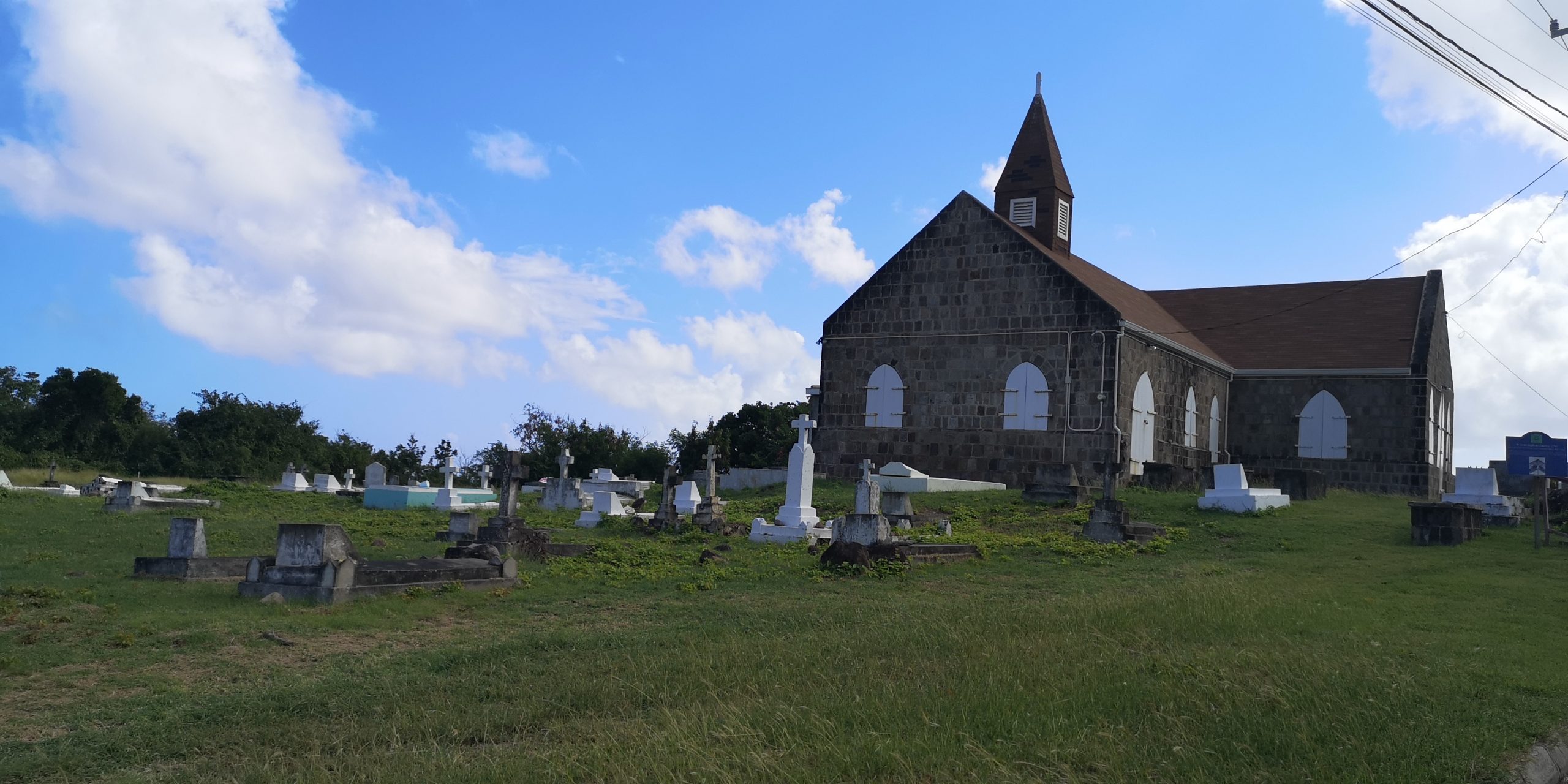 Statt dieser Tour buchen wir eine private Tour. Auf unserem Spaziergang aus der Ankerbucht Salt Plage bei Christophe Harbour hält ein Kleinwagen an und wir kommen mit dem Fahrer ins Gespräch über Taxifahrten. Das hat schon öfter so funktioniert und wir lassen uns auf den Deal ein, zunächst mit ihm nach Basseterre zu fahren und am nächsten Tag eine Inseltour mit ihm zu machen. Er fährt gut, aber sein Inselenglisch, eine Mischung aus Englisch und Creol, ist nicht immer zu verstehen. Und viel Regen an dem Tag sowie ein Autounfall auf der einzigen Straße an der Windward Seite verhindern, dass wir alles besichtigen können.