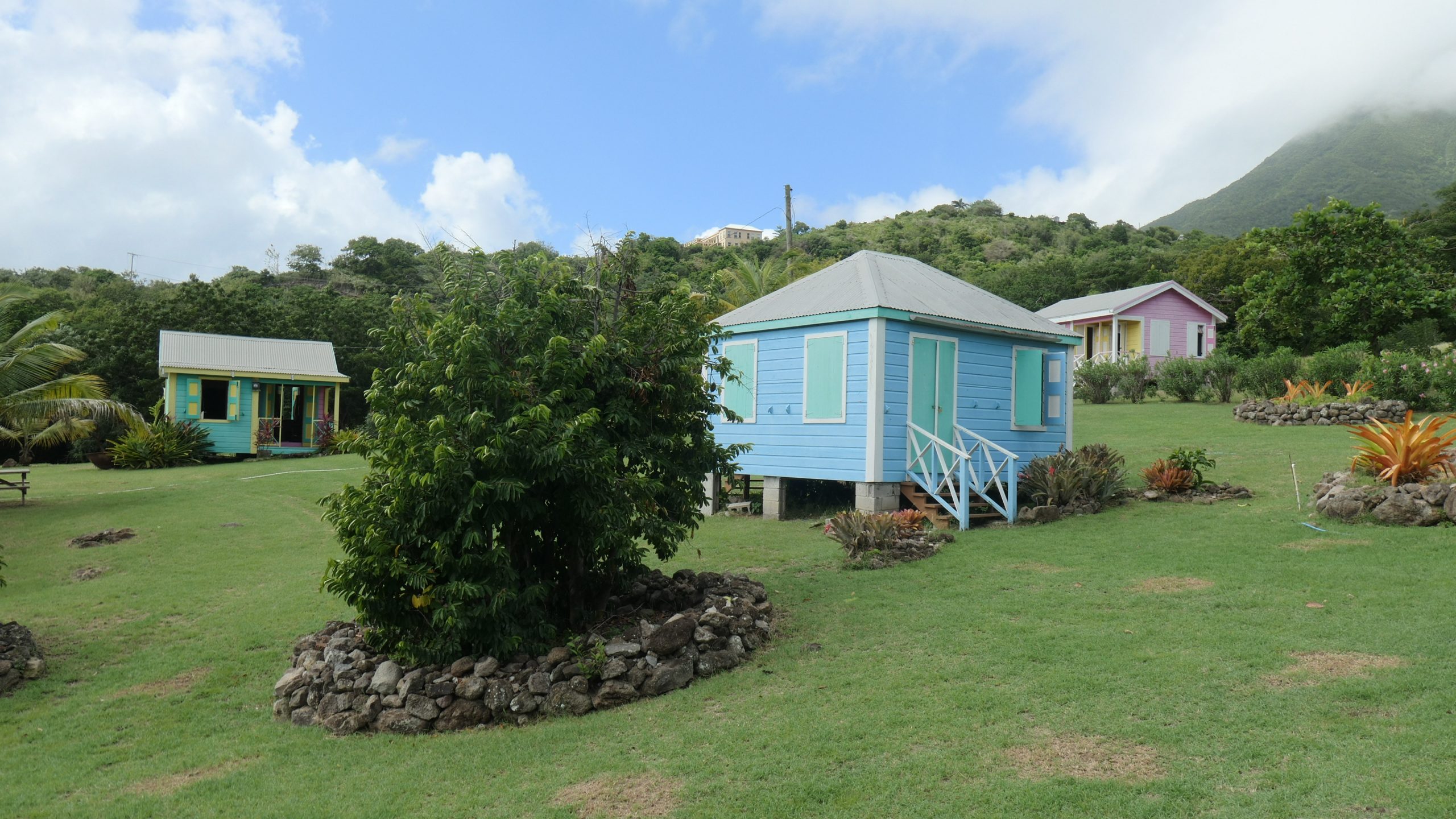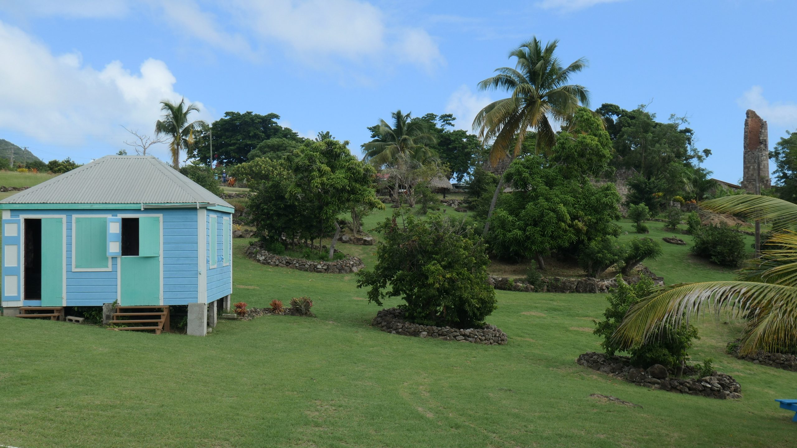 Die Sklaven lebten zwar auf dem Gelände der Plantagenbesitzer. Sie konnten sich aber nicht dauerhaft häuslich einrichten. Denn der Plantagenbesitzer hatte jederzeit das Recht, sie zu verkaufen. Erlaubt war daher nur der Bau von Chattel Houses, einräumigen Holzhäusern, die ohne Nägel errichtet wurden und die der Sklave abbauen musste, wenn er verkauft wurde. Wir besichtigen sie im Freilichtmuseum auf Nevis. Im Einraumhaus lebte die ganze Familie eng zusammen. Die Eltern hatten ein durch Vorhang abgetrenntes Bett, die Kinder schliefen jenseits des Vorhangs. Wenn der Sklave sich bewährte, durfte er mit Einverständnis des Plantagenbesitzers für seine Familie ein zweites Einraumhaus als Erweiterung direkt neben das existierende bauen. Speziell auf Nevis sieht man noch solche direkt nebeneinander gestellten Holzhäuser.