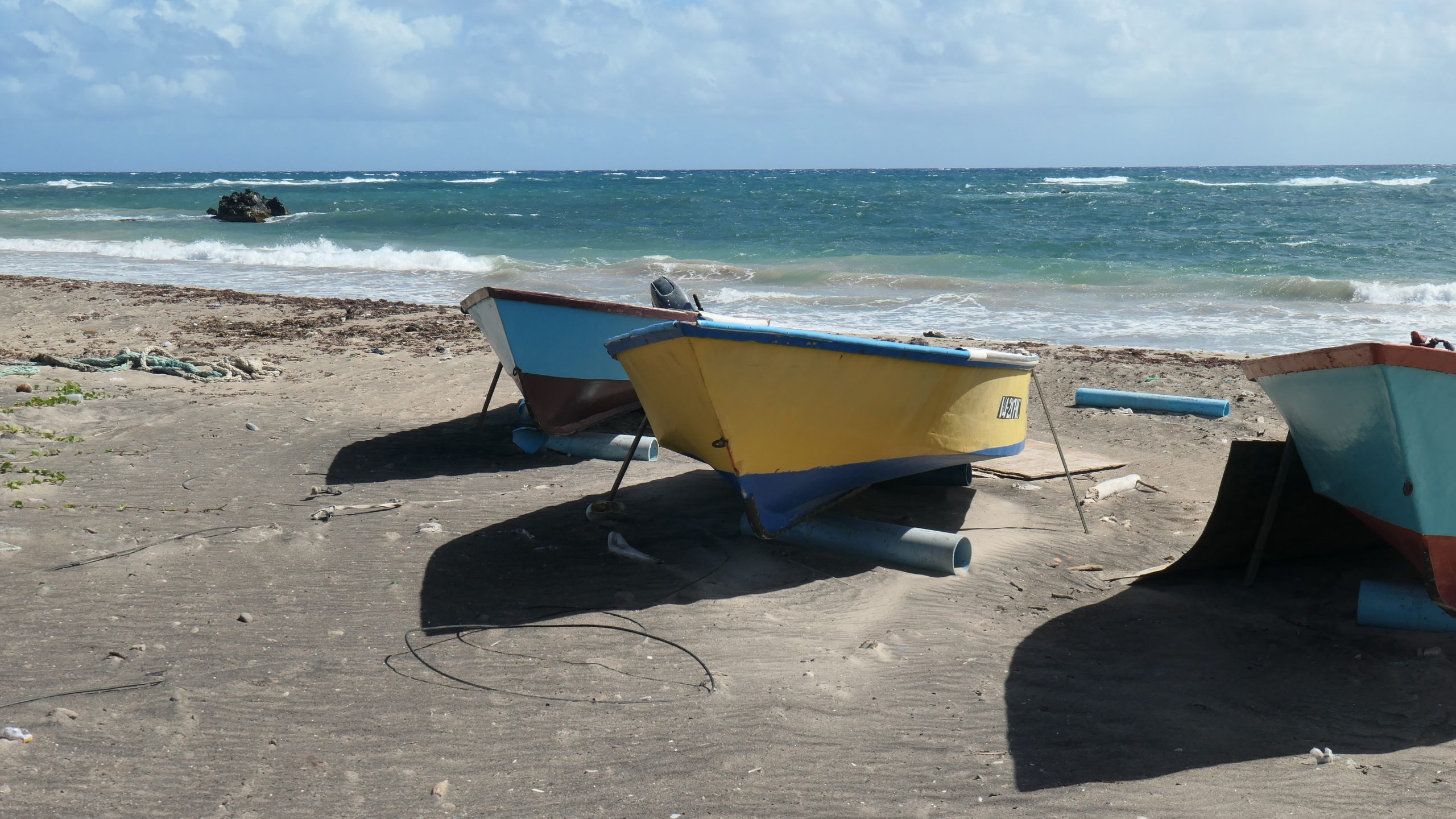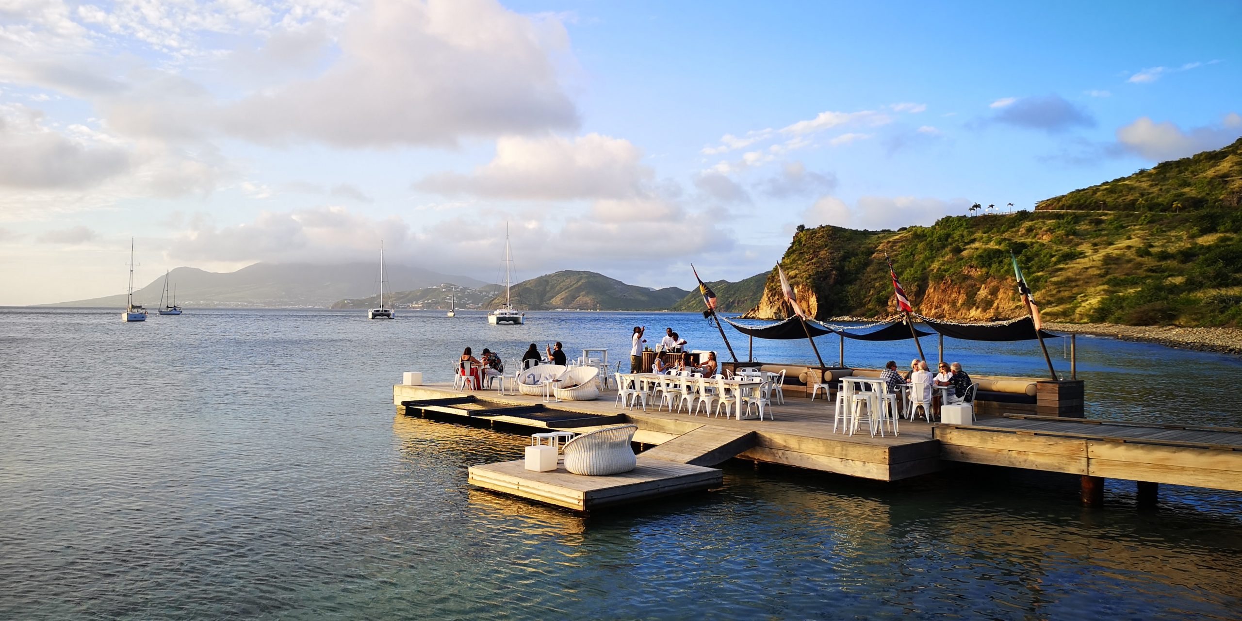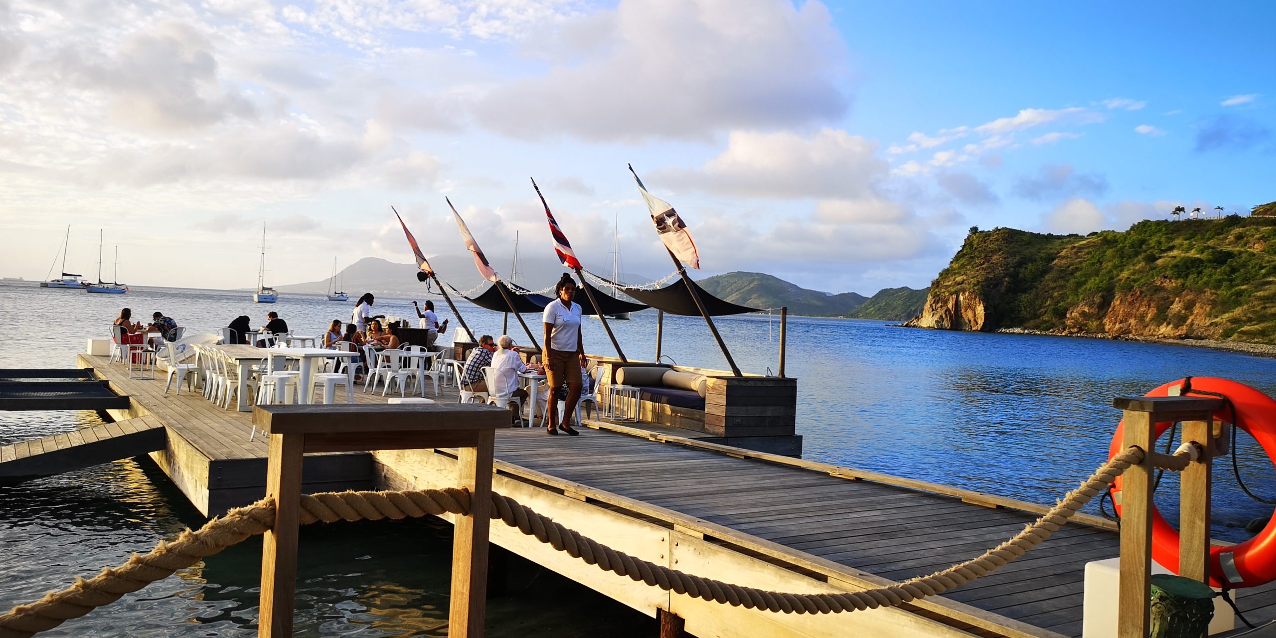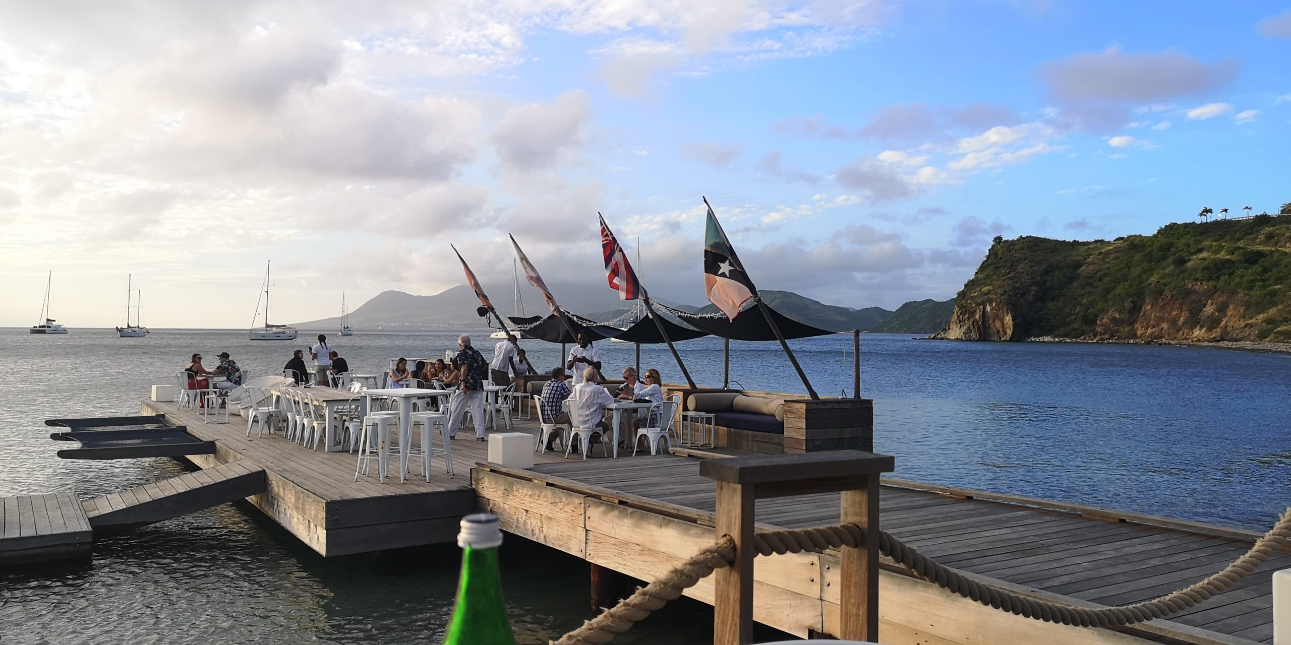 Wir sind heilfroh, mit einem dritten Fahrer in Salt Plage anzukommen. Die Bucht liegt an einem Salzsee, aus dem früher Salz gewonnen. Wir lagen dort sehr ruhig am Anker, allerdings erzählten andere Segler, ihr Schiff sei auf Drift gegangen. Es gilt also den Ankergrund gut anzuschauen. Das Dinghy kann man sehr gut an der Bar am Salt Plage vertäuen, ggf in Absprache mit der Security der Bar. Am Strand Salt Plage wurde früher das Salz aus dem See verarbeitet und verschifft. Heute steht dort eine Bar am Ufer, die zum Christophe Harbour in der benachbarten Bucht gehört. Dort ist eine Marina für Superyachten entstanden mit einem tollen Marina Gebäude. Von den geplanten Villen und dem Golfplatz drumherum gibt es noch nicht viel. Investoren werden gesucht. Die Preise sind nicht in der lokalen Währung Eastcarribean Dollar ausgewiesen, sondern in US-Dollar. Gleiches gilt für die zahlreichen gehobenen Restaurants und Hotels auf beiden Inseln. Man kann sehr gute Qualität bekommen, zahlt aber auch entsprechend.