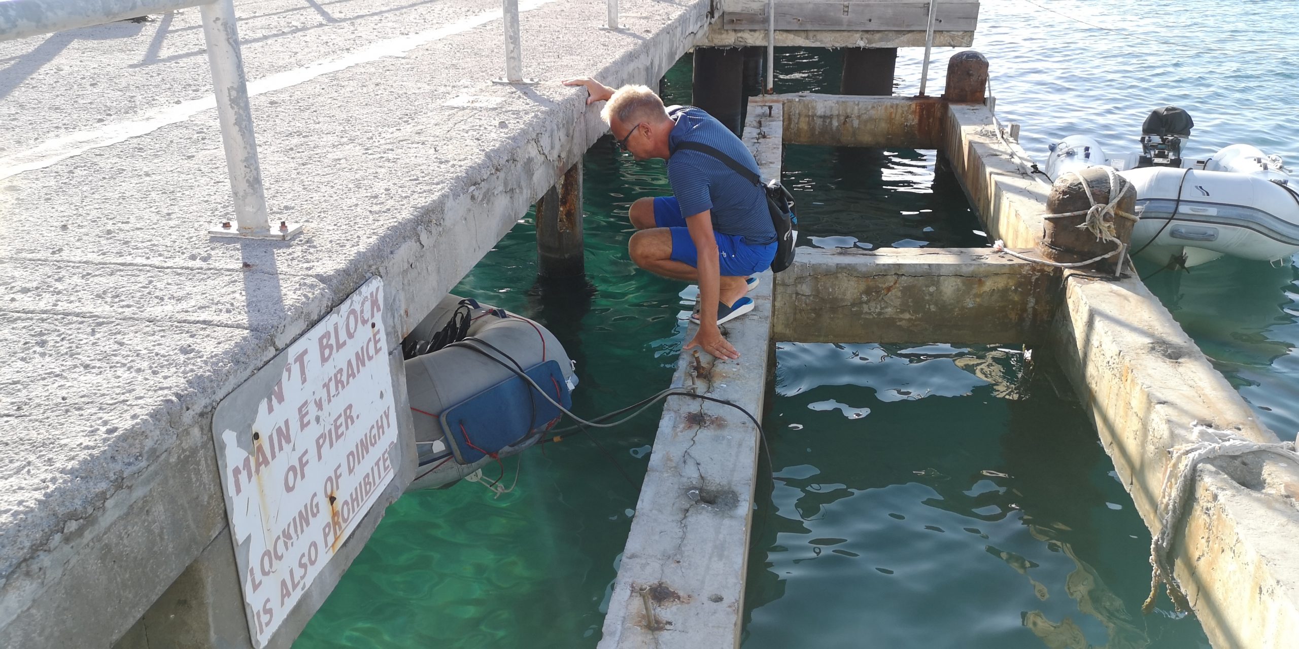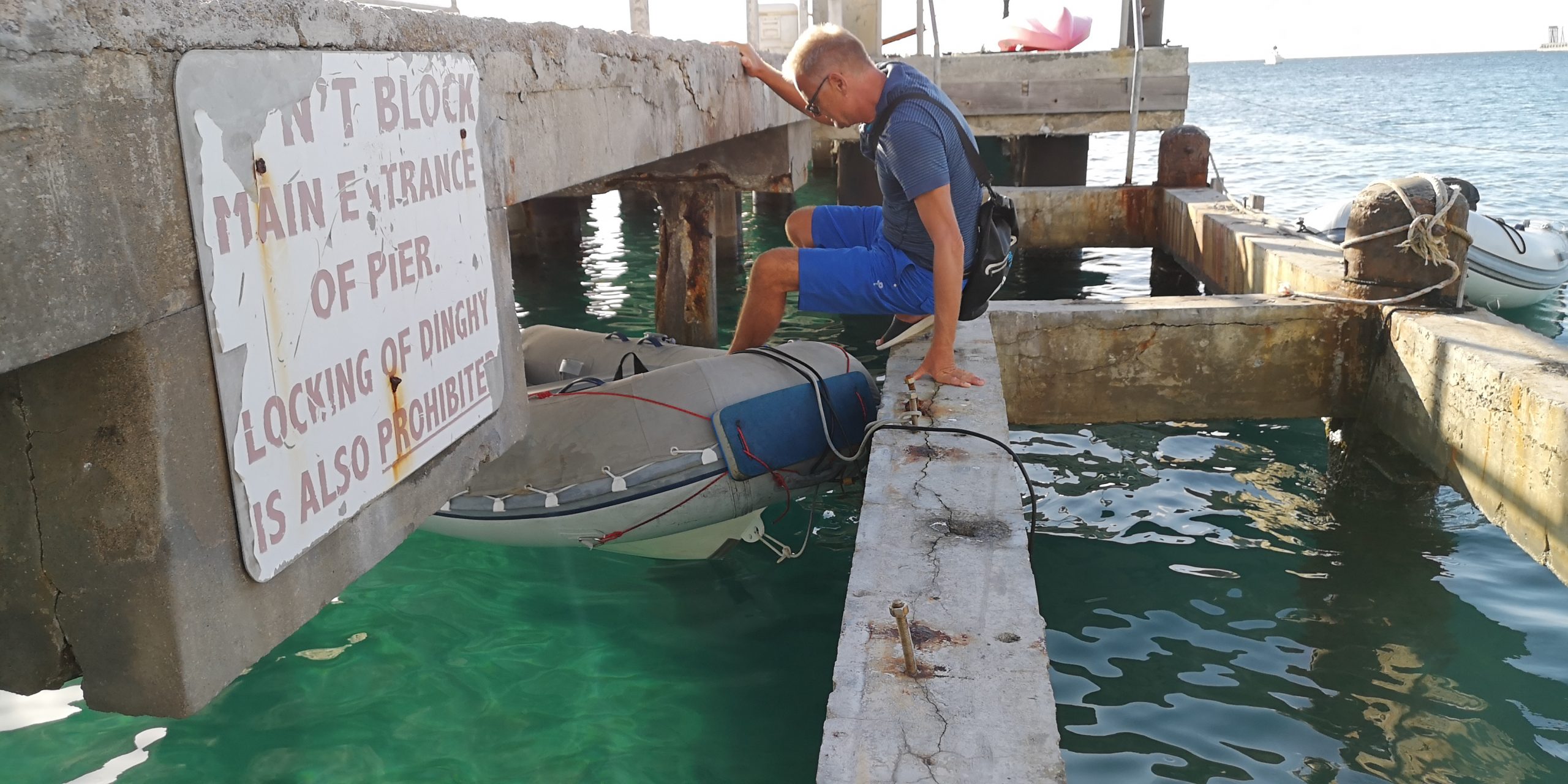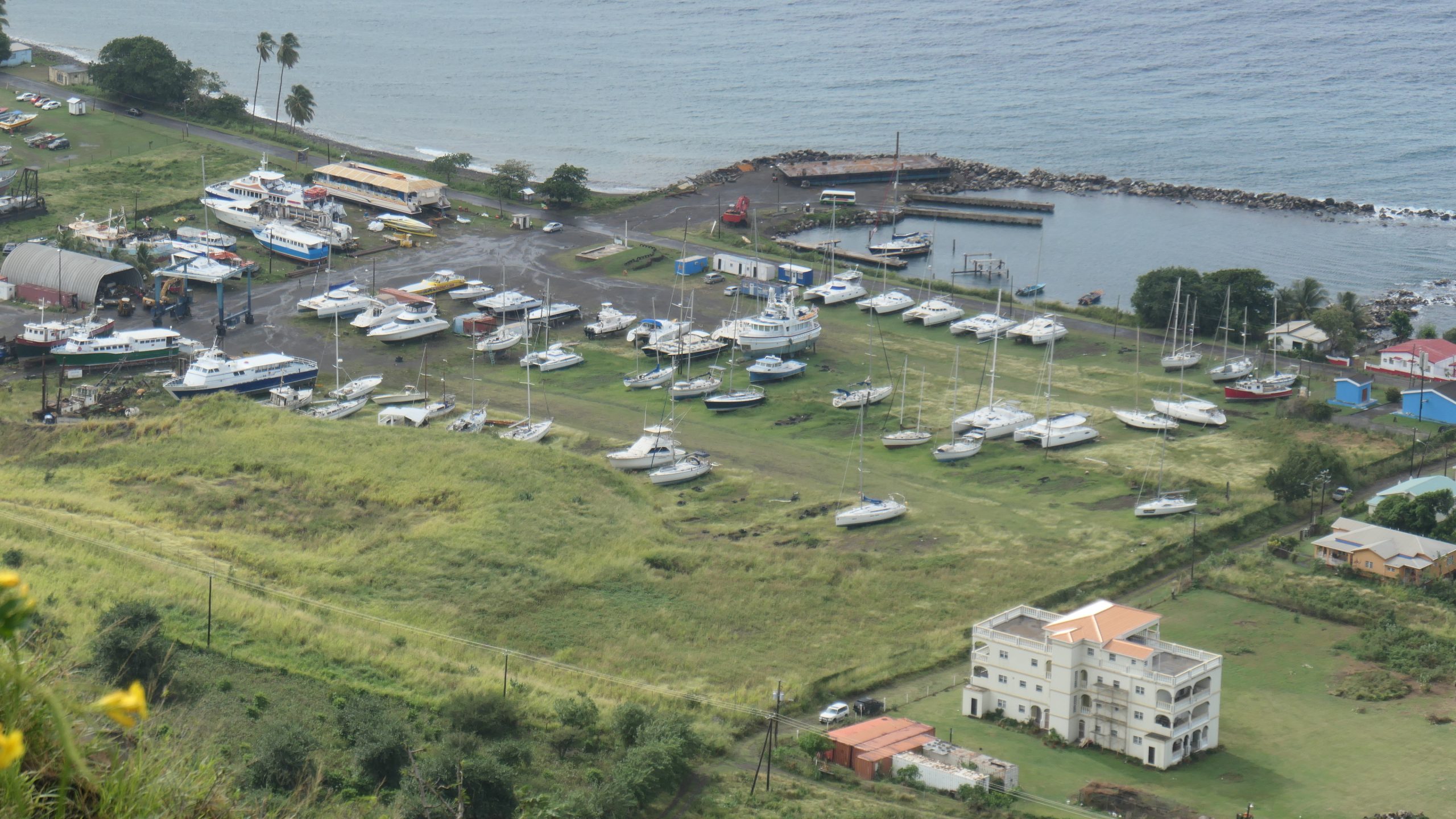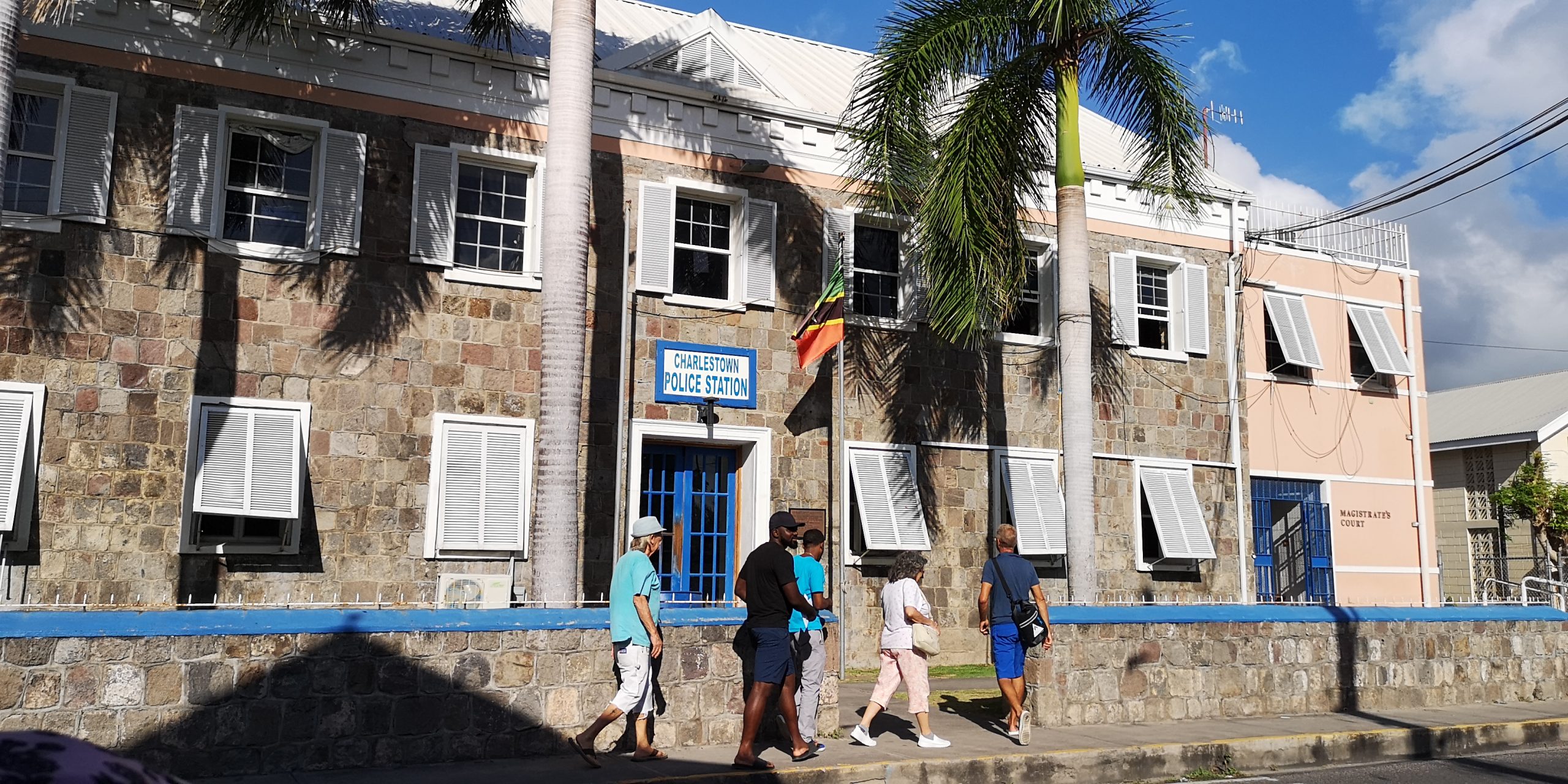 Wir liegen bei Nevis vor dessen Hauptort Charlestown. Entgegen zahlreichen anderen Berichten war das Einklarieren freundlich und zügig. Schwierig ist das Parken des Dinghys vor Charlestown. Der Dinghysteg ist zerstört. Am Pier schwellt es, so dass man entweder eine der Moorings aufpicken muss, um das Heck zu sichern oder einen Heckanker. Solange es weniger Schwell hat, kann man das Dinghy auch unter das Pier legen. Kraxelig ist das Aussteigen in beiden Fällen.