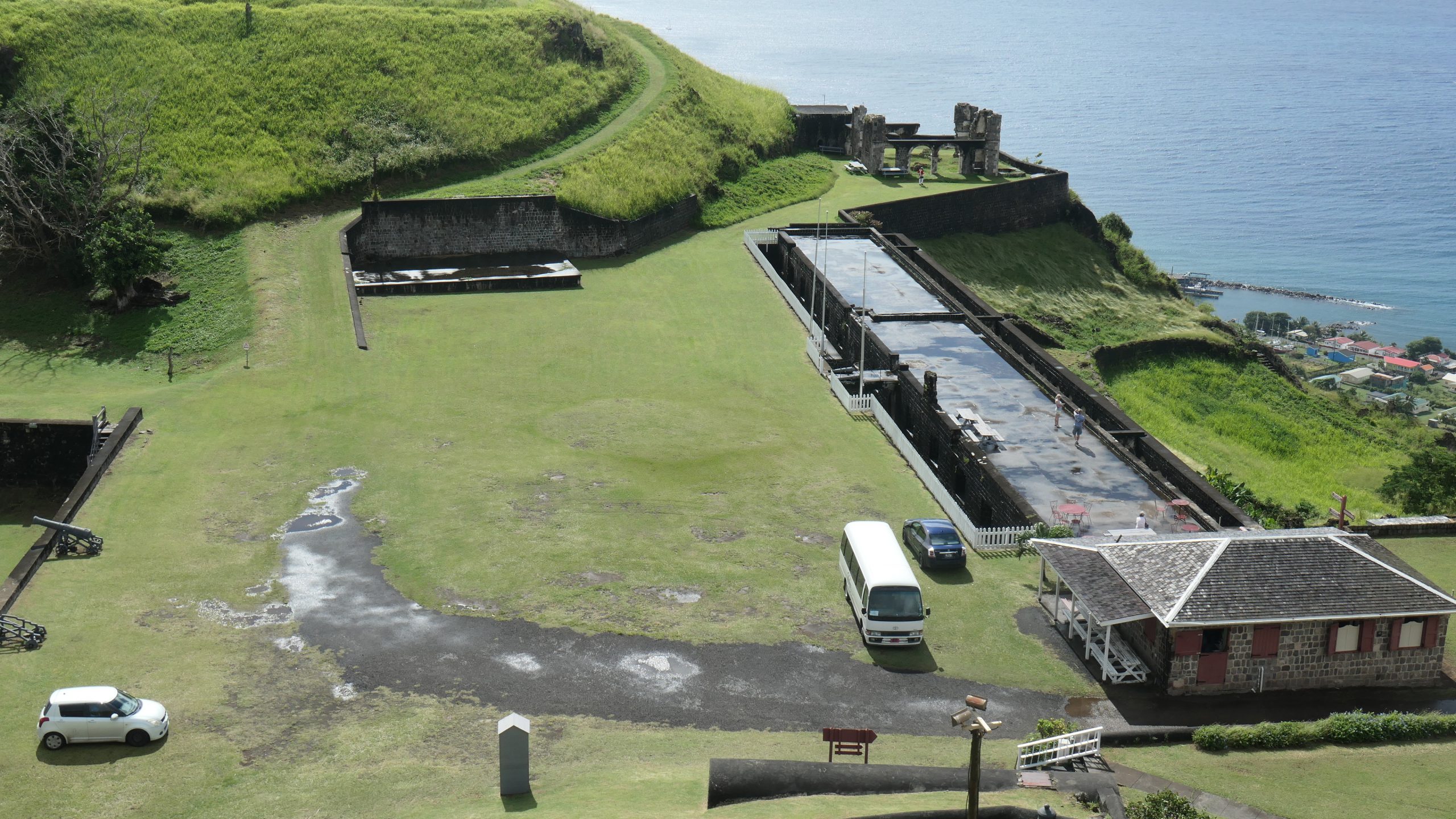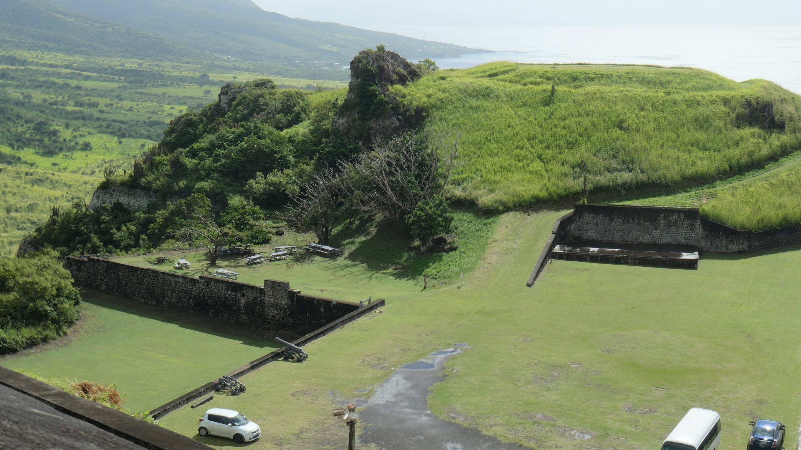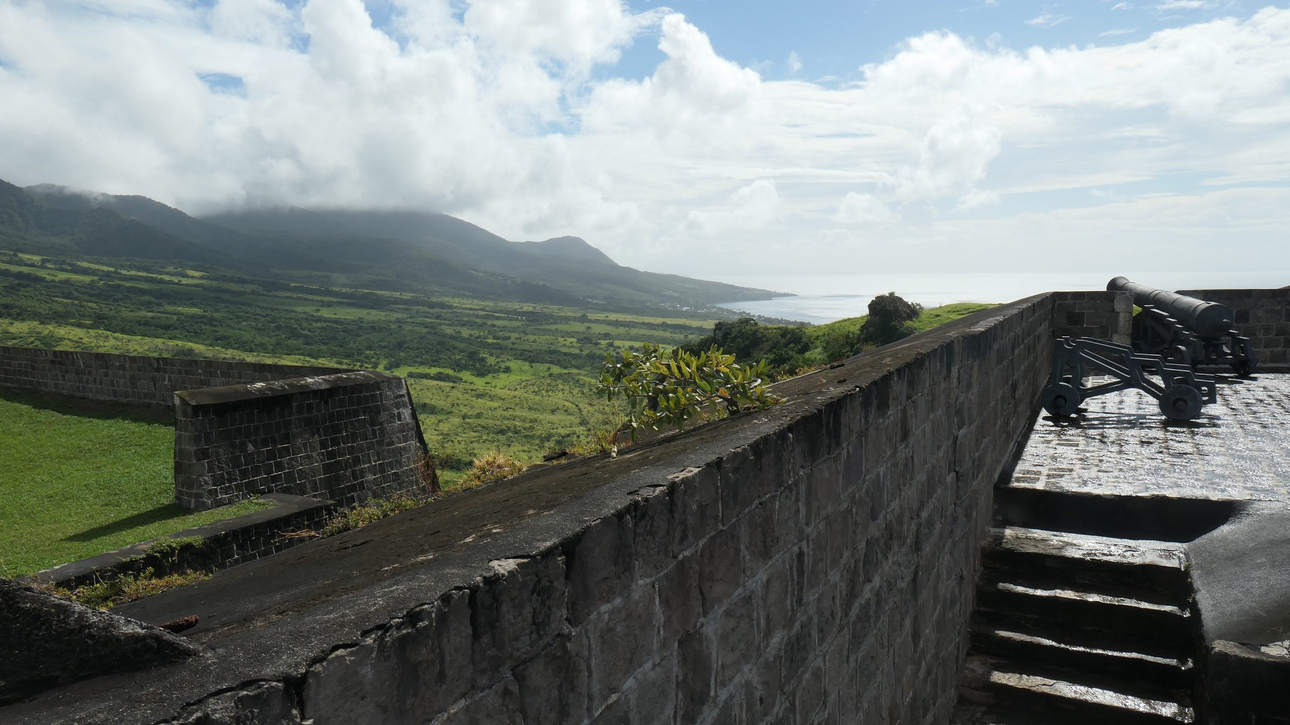 Das Fort George auf dem Brimstone Hill von St Kitts zeugt von den Auseinandersetzungen um die Inseln. Beeindruckend ist die Leistung der Briten, die auf einem abgeflachten Berg im Nordwesten von St Kitts im 17.Jahrhundert mit der Errichtung einer massiven Verteidigungsanlage begannen. Britische Armeeingenieure hatten geplant, aber gebaut wurde das Fort von afrikanischen Sklaven.