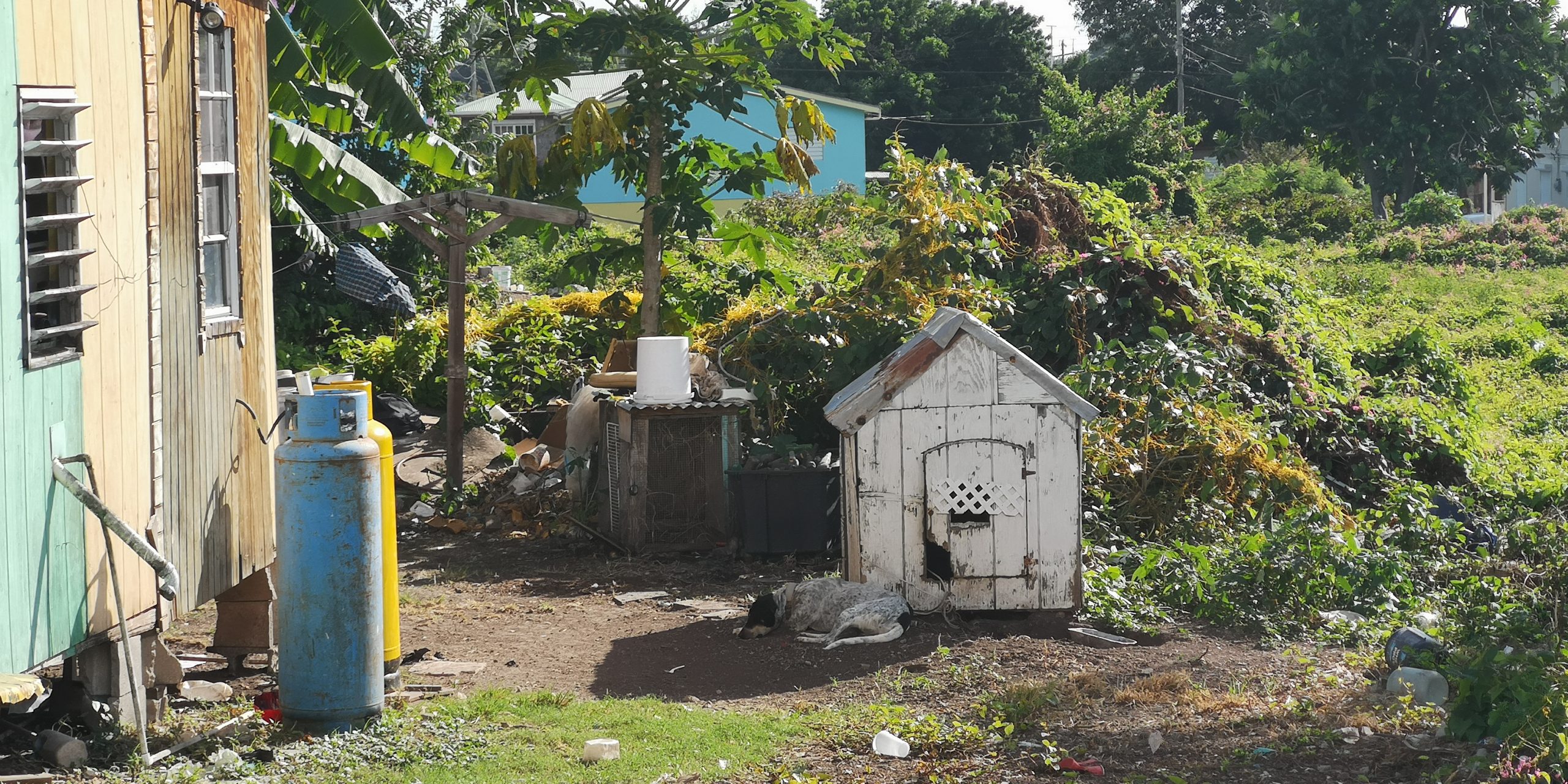 Selbst die Haushunde haben ihr karibisches Holzhaus. Viele wilde Esel gibt es auf Nevis. Früher wurden die Esel als Lasttiere genutzt.
