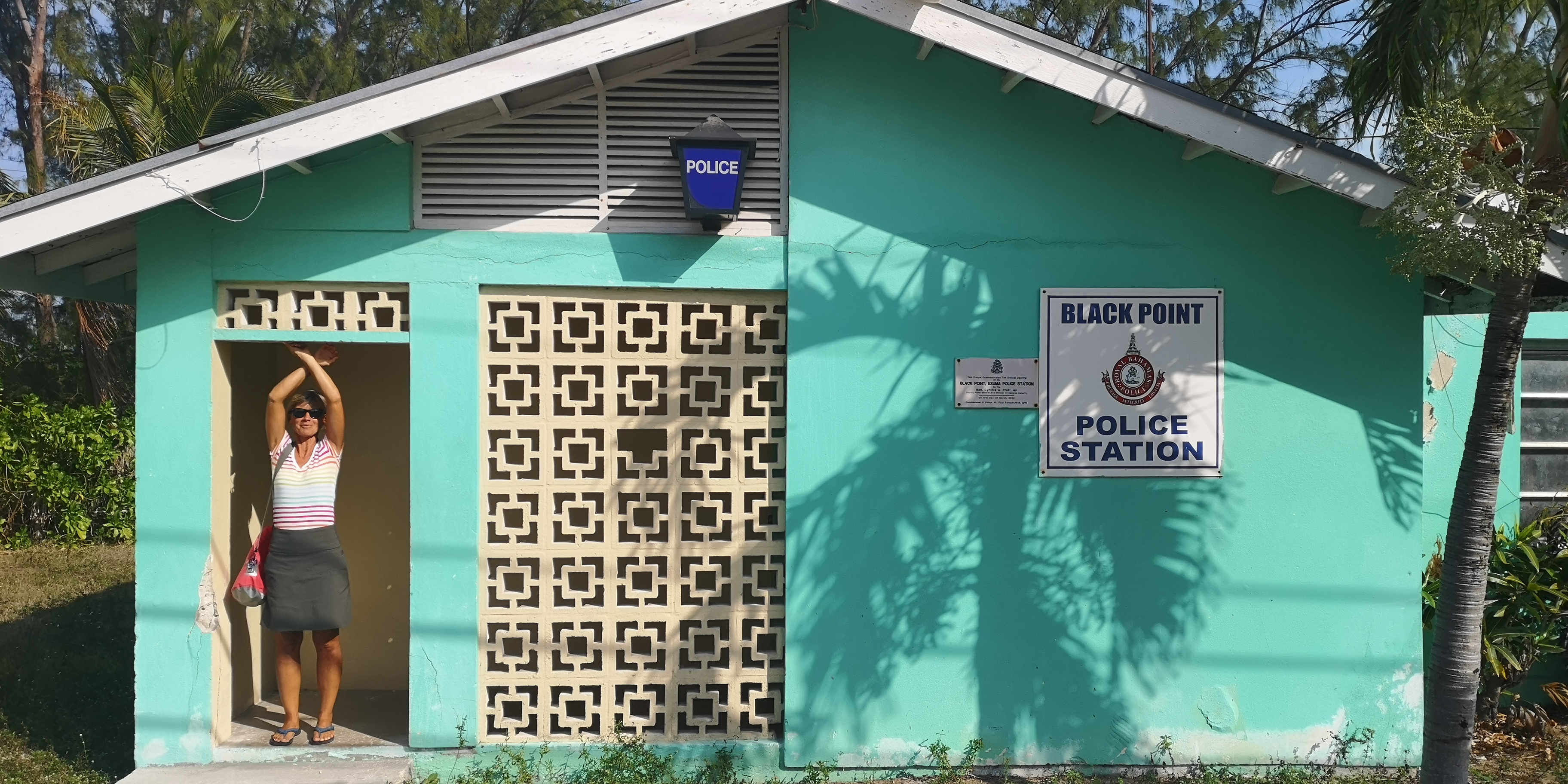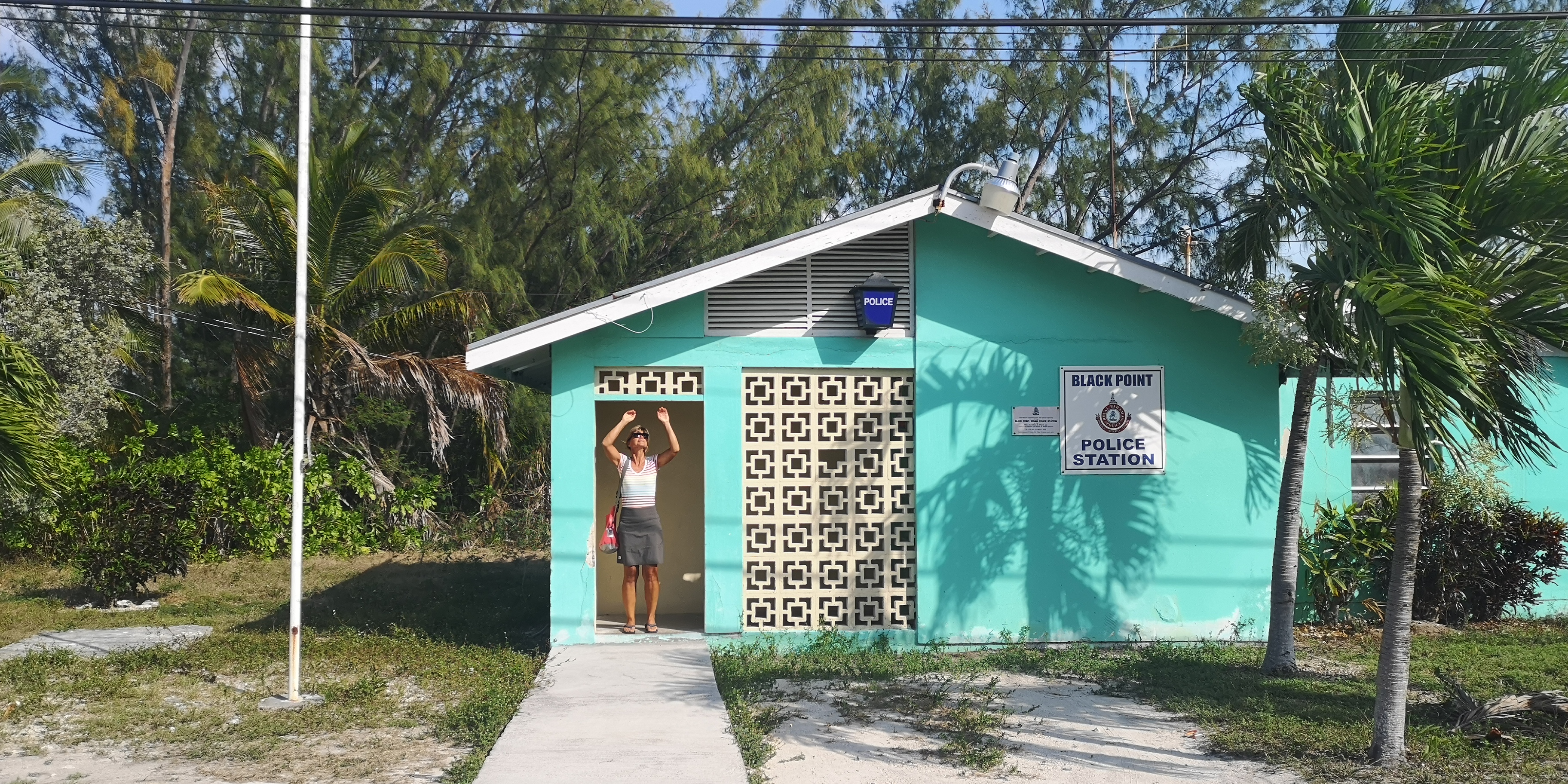 Es ist späterer Nachmittag und wir sehen auf der Straße in Black Point eine Reihe junger Frauen mit Tshirts vom Staniel Cay Yachtclub. Sie kommen wohl gerade von der Arbeit auf der Nachbarinsel zurück. Viele der Bewohner von Black Point arbeiten dort.