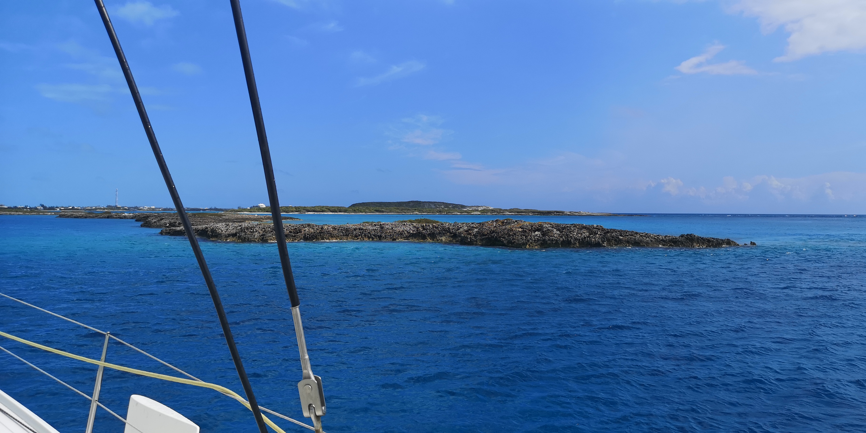 Am Nachmittag setzt Ebbe ein. Darauf haben nicht nur wir gewartet. Eine Schar an Cruisern und Ausflugsbooten macht sich auf zu einer wirklichen Attraktion. Der James Bond Film „Thunderball“ wurde hier gedreht und war namensgebend für eine sensationelle Höhle in der Bucht vor dem Yachtclub. Zur Ebbzeit kann man schnorchelnd hinein schwimmen vom Dinghy aus, das vor der Höhle verankert werden kann. Beim Schnorcheln ist man umgeben von Fischschwärmen. Wir nehmen an, dass die Fische hier gefüttert werden und daher so zutraulich sind und am Ort bleiben. Sonnendurchflutete Löcher in der Decke der Höhle und verschiedene Höhleneingänge malen wunderschöne Lichtspiele ins Wasser. Das Video kann gar nicht wiedergeben, wie herrlich es dort ist, aber zumindest ein Teil ist doch drauf: