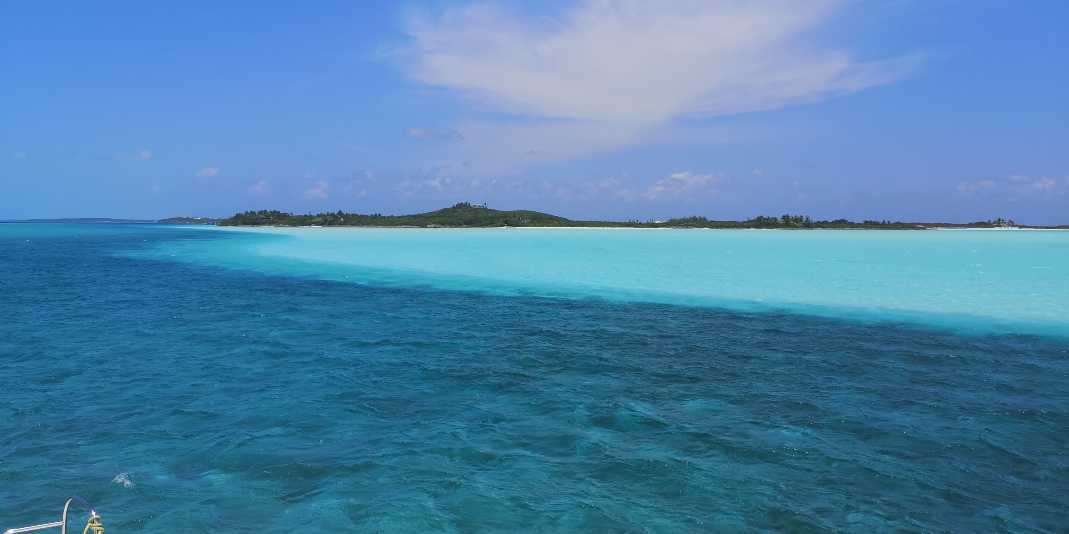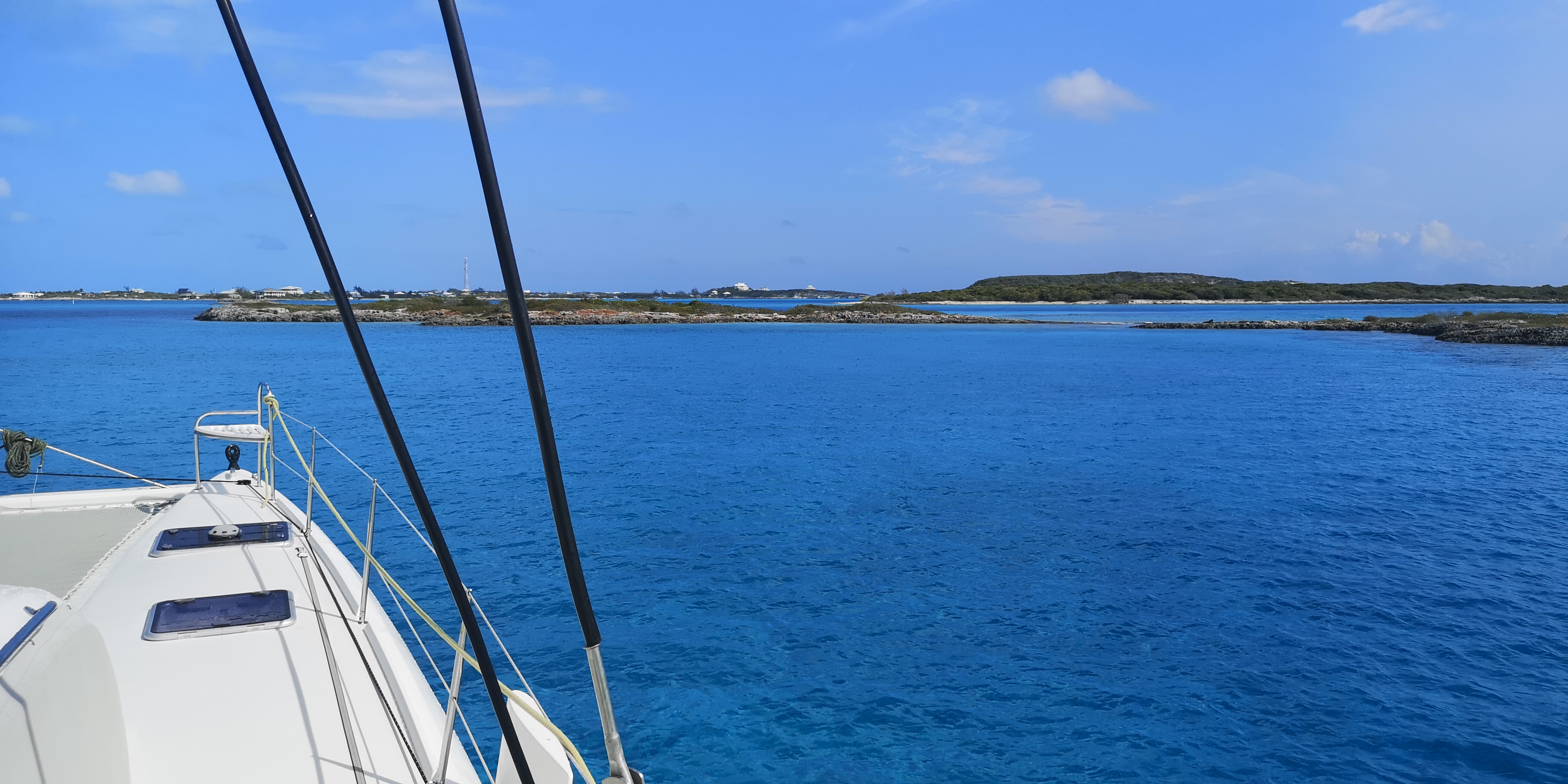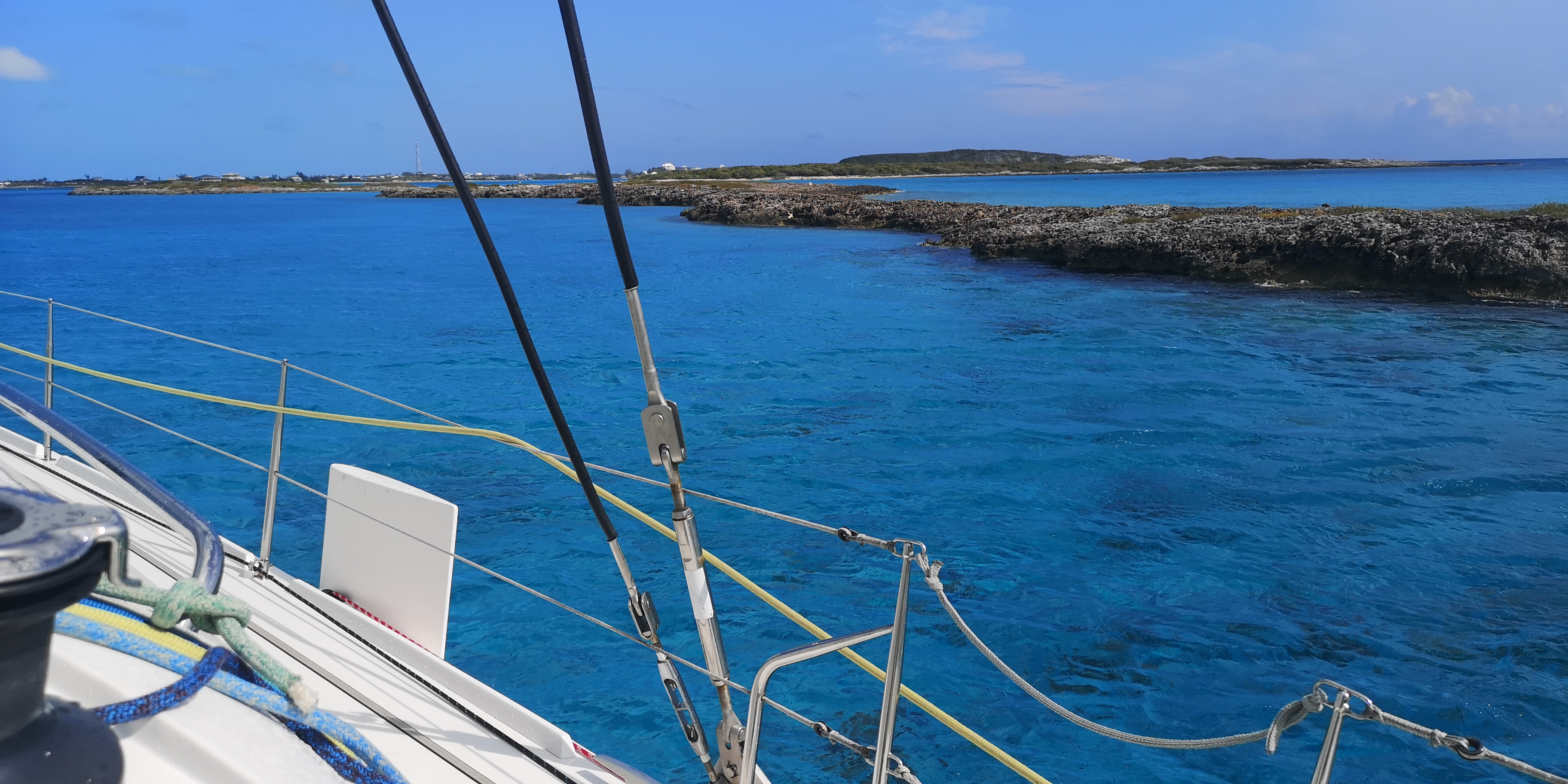Anderntags geht es weiter nach Staniel Cay. Obwohl diese Insel quasi um die Ecke liegt, hat es die Anfahrt in sich. Diverse Flachwasserzonen, Cays und Felsen müssen über befahrbare Channel passiert werden. Wir entscheiden uns für eine spannende aber auch nervenaufreibende Route. Da wir am Steuer draußen nur die hier nicht zuverlässige Navionics Karte haben, sitze ich wieder drinnen am Bord PC mit der Rasterkarte und gebe dem Captain Hinweise zur Route. Die ist wirklich eng, wir können fast auf die Felsen spucken, durch die wir hindurch navigieren.