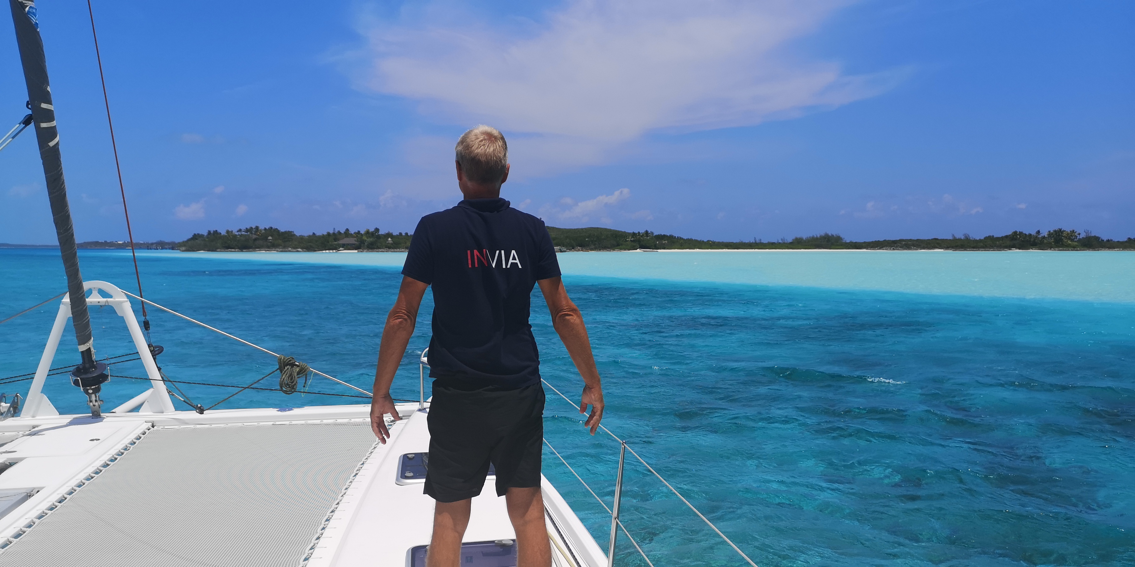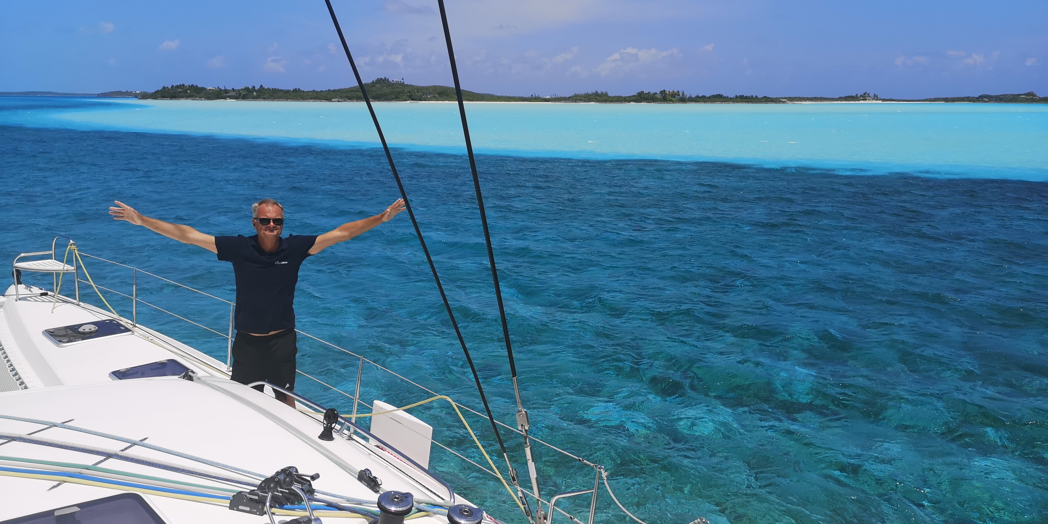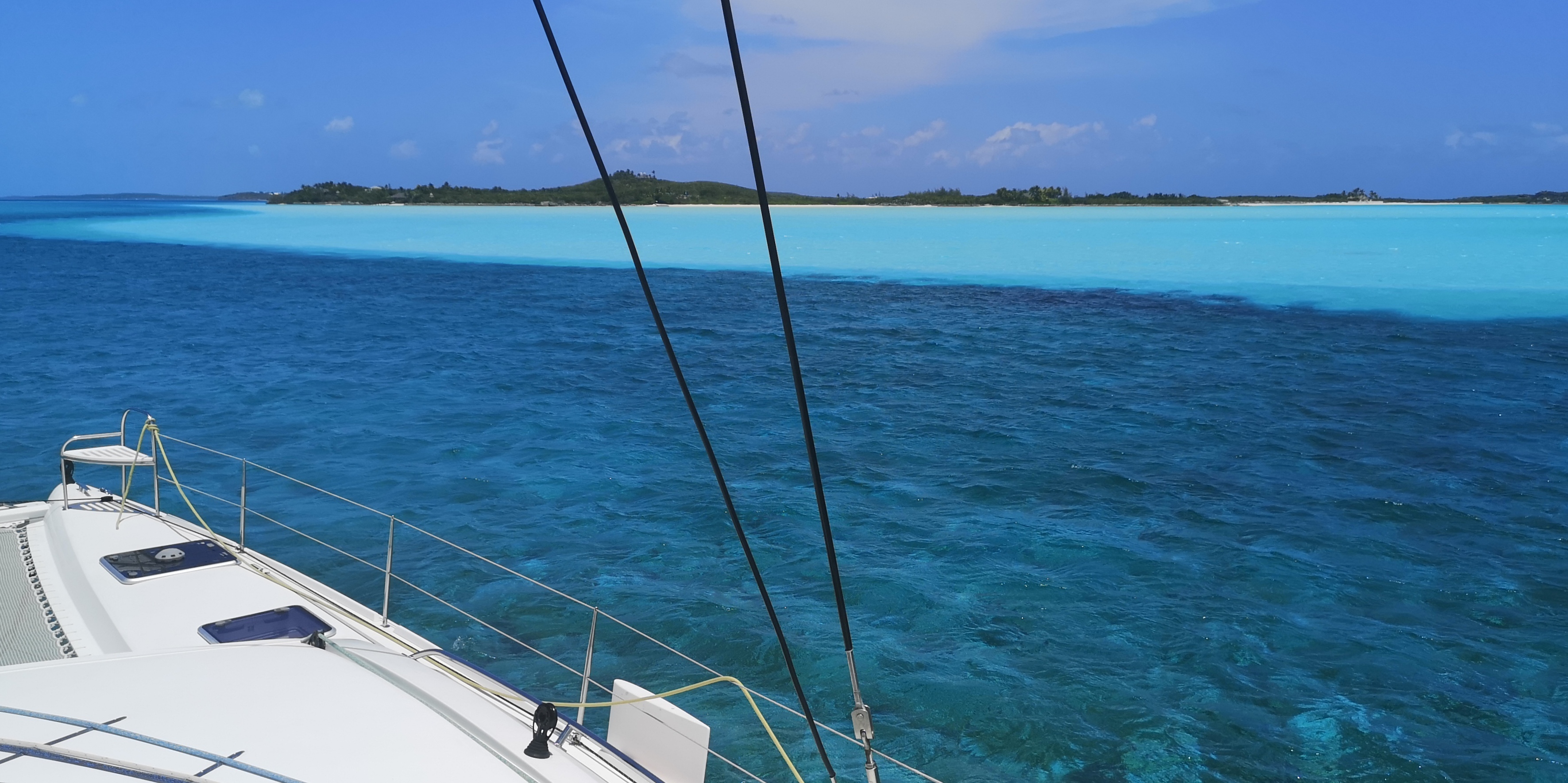 Anderntags geht es weiter nach Staniel Cay. Obwohl diese Insel quasi um die Ecke liegt, hat es die Anfahrt in sich. Diverse Flachwasserzonen, Cays und Felsen müssen über befahrbare Channel passiert werden. Wir entscheiden uns für eine spannende aber auch nervenaufreibende Route. Da wir am Steuer draußen nur die hier nicht zuverlässige Navionics Karte haben, sitze ich wieder drinnen am Bord PC mit der Rasterkarte und gebe dem Captain Hinweise zur Route. Die ist wirklich eng, wir können fast auf die Felsen spucken, durch die wir hindurch navigieren.