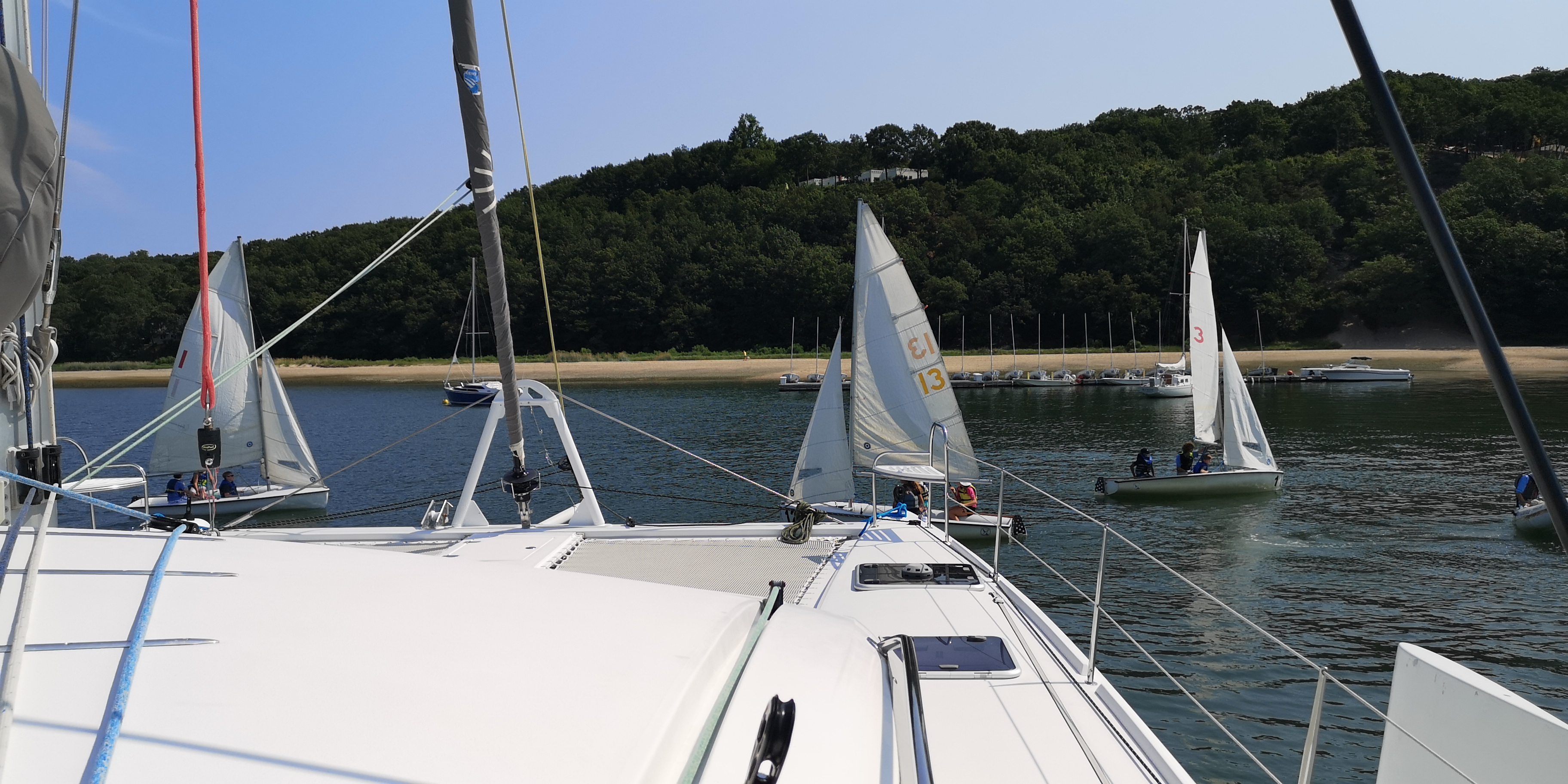 Nächster Stop ist Port Washington, dort wo wir zuletzt bei 40 – 45kn Wind unser Ankerdrama hatten und auch diverse andere Yachten auf Drift gingen. Und schon wieder kündigt sich kurz vor Erreichen der Bucht ein Gewitter an! Die Coast Guard New York warnt per Funk vor schweren Gewitterstürmen. Und am Horizont zieht es rabenschwarz herauf. Mist aber auch nochmal! Schnell die Segel geborgen – ja tatsächlich gabs mal für kurze Zeit segelbaren Wind – und mit beiden Motoren auf 2.200 rpm schnell in die Bucht. Dort liegt u.a., an einer gelben Boje der Stadt festgemacht, die VAIREA. Und wir haben Glück, wir können noch eine freie Boje ergattern. Denn nach erneutem Ankern in dieser Bucht ist uns beiden nicht. Das Gewitter zieht im Wesentlichen an uns vorbei, ausser Regen und etwas über 20kn Wind bekommen wir nicht viel ab.