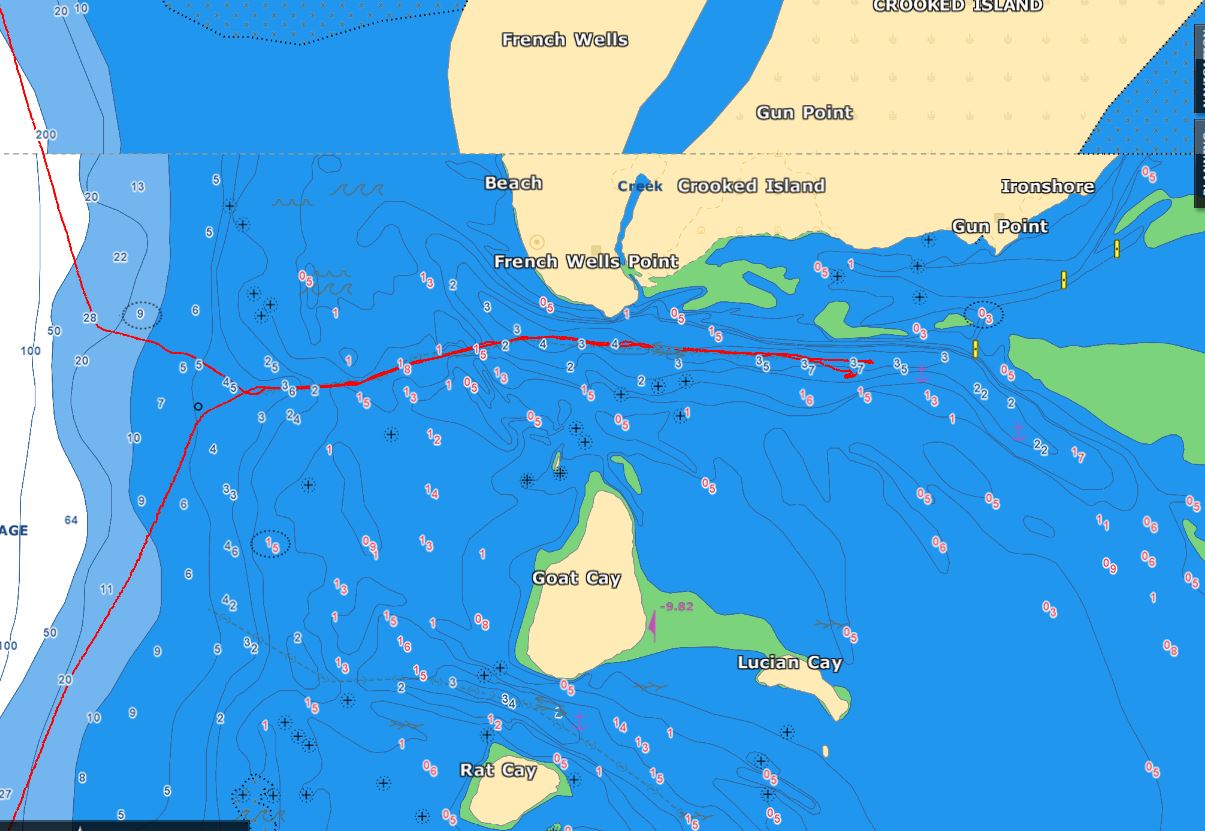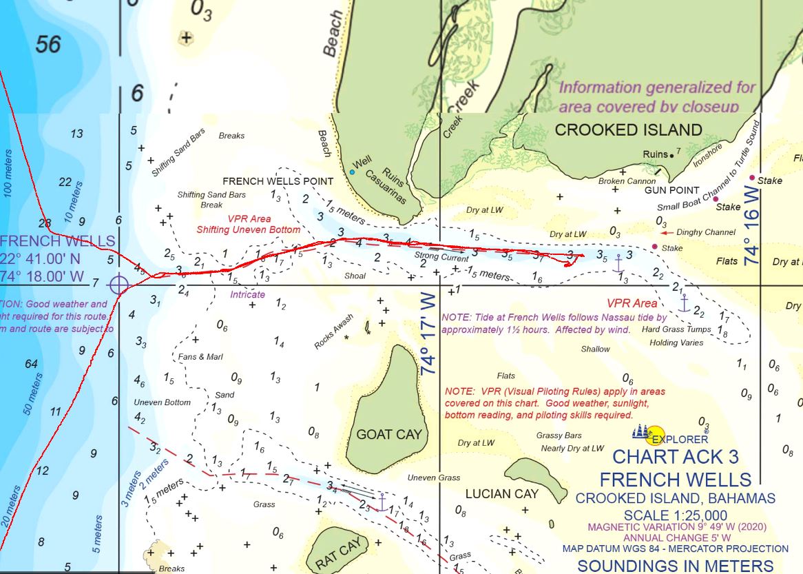 Der Name stammt tatsächlich von den Brunnen, die von Franzosen gegraben wurden. Und zwar von französischen Piraten, die dort ein Versteck hatten. Der Kanal in French Wells wird von Long Cay auf der einen und Crooked Island auf der anderen sowie sowie der flachen Bucht von Acklins recht gut geschützt.