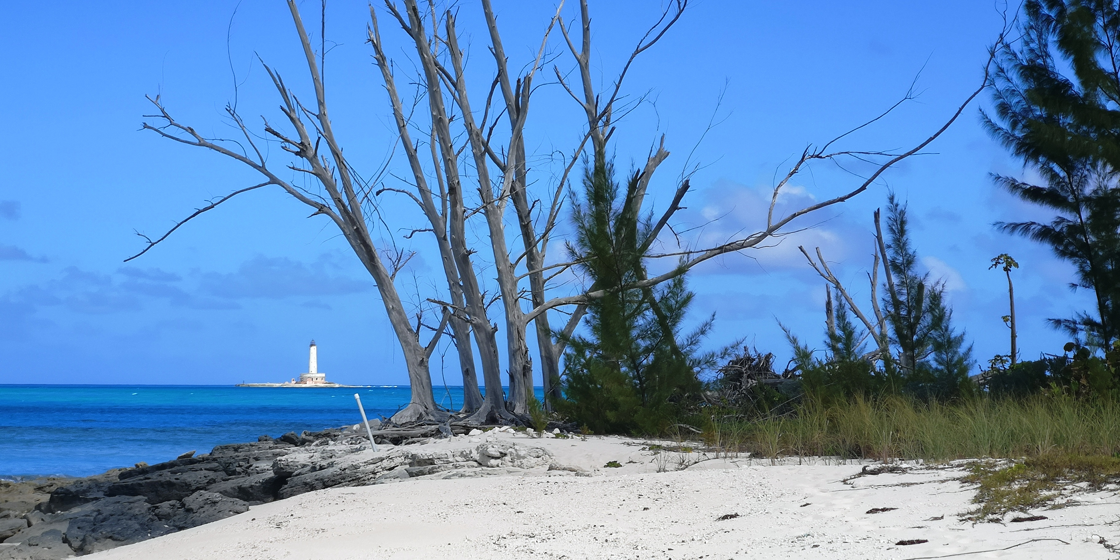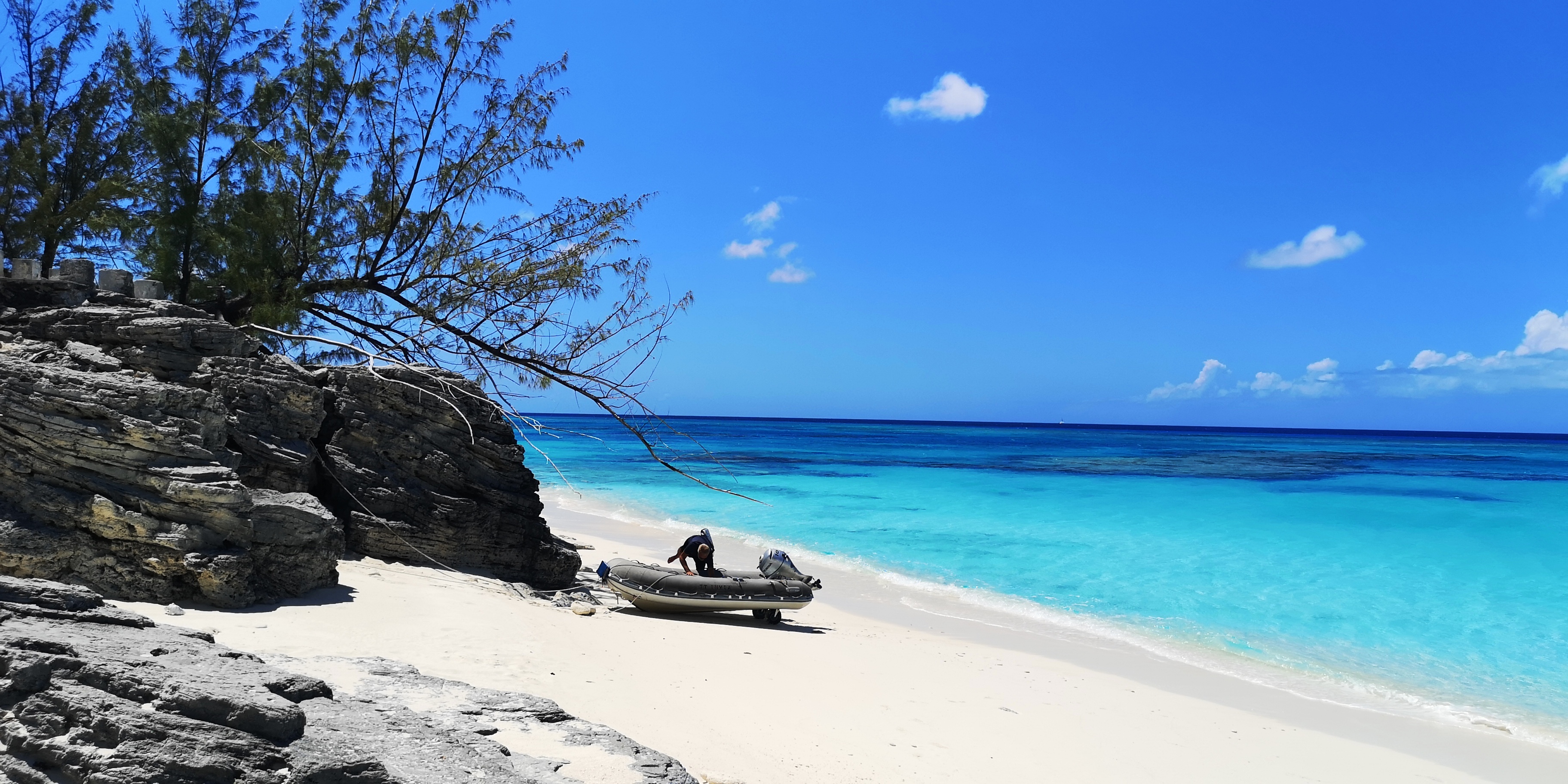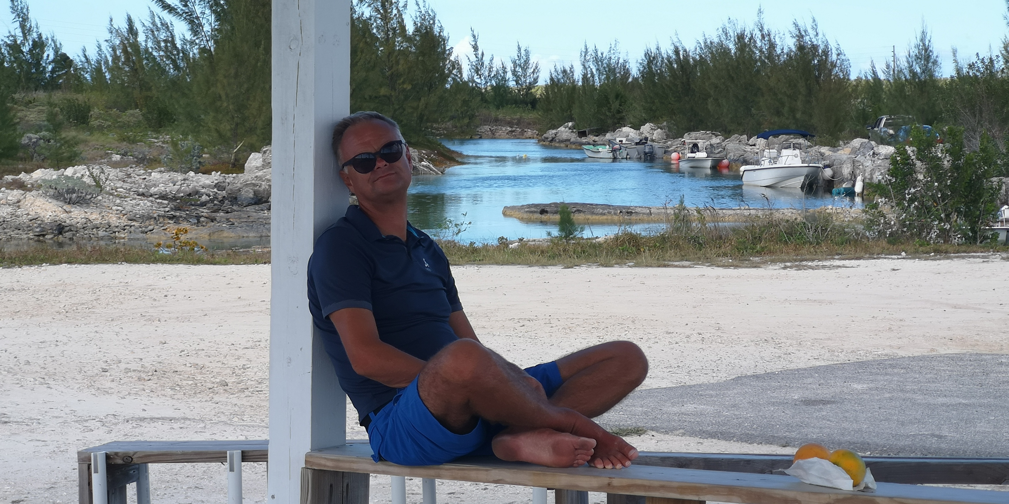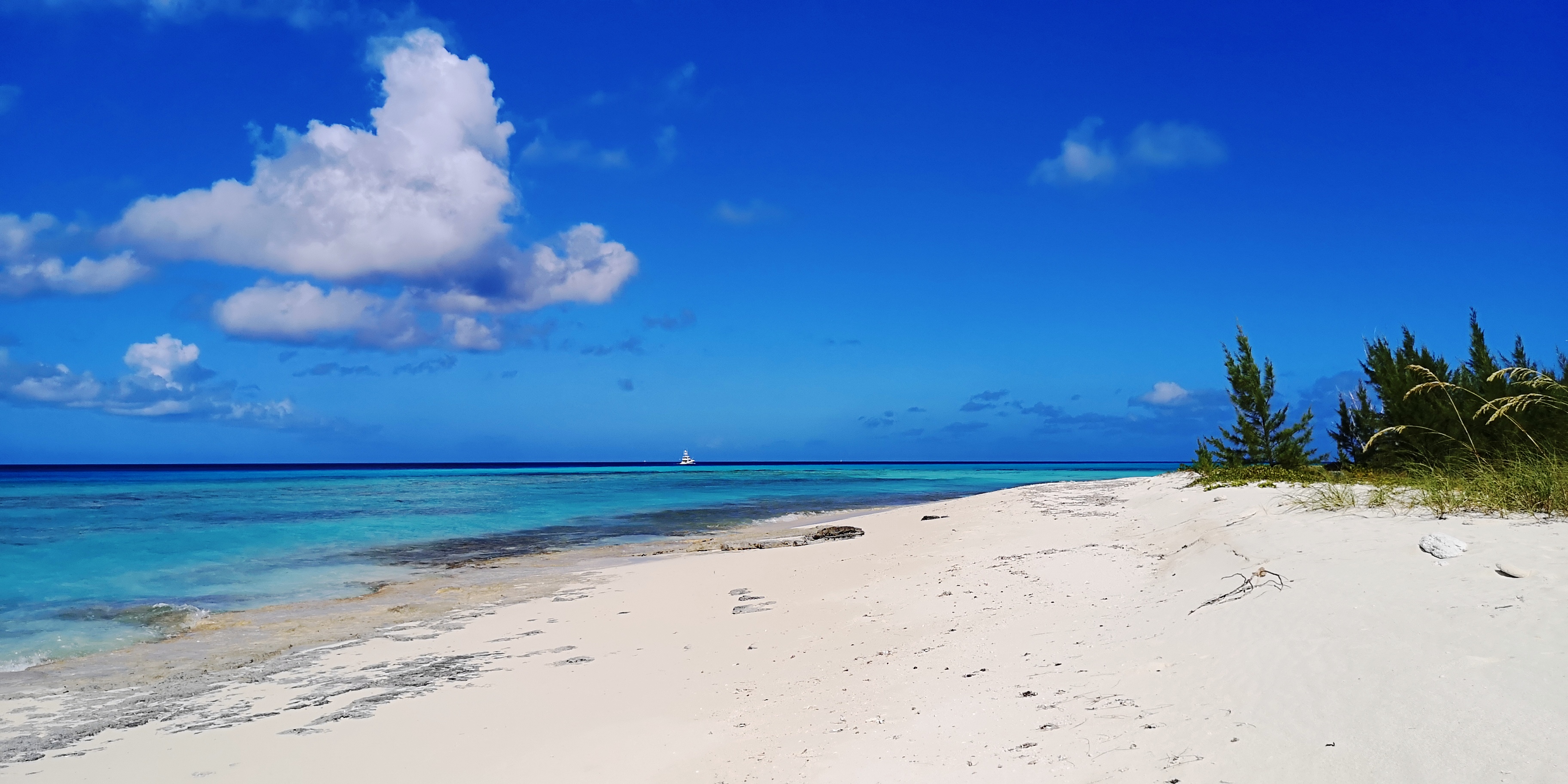 Wir gehen weiter nach Long Cay, aber nicht mehr ganz in den Süden wo wir bei der Fahrt zum Landrail Point Halt gemacht hatten. Sondern legen uns etwa 1,4 nm nördlich von Albert Town. Albert Town ist keine Stadt mehr, eigentlich auch keine Siedlung. Früher einmal besiedelten um 4000 Menschen die Insel. Die goldenen Zeiten sind aber längst vorbei. Heute sind viele Häuser – zuletzt nach dem Hurricane 2015 – verlassen und aufgegeben. Vor der zerstörten Kirche – der ältesten anglikanischen Kirche in den Bahamas – treffen wir auf De-Angelo, der aus das Haus gegenüber kommt. Ganze 6 Personen würden noch in Albert Town leben, meinte er. Er selbst wohnt eigentlich auf Crooked Island, besucht aber seinen Freund auf Long Cay. 14 weitere Personen sollen irgendwo sonst wohnen auf der Insel, meint De Angelo. Wir finden trotz langen Fußmarsches in Staub und sengender Sonne bis zur anderen Inselseite nur Reste früherer Siedlungen, und davon viele. Außerdem alte Brunnen und weite Gebiete, in denen früher Salz gewonnen wurde.