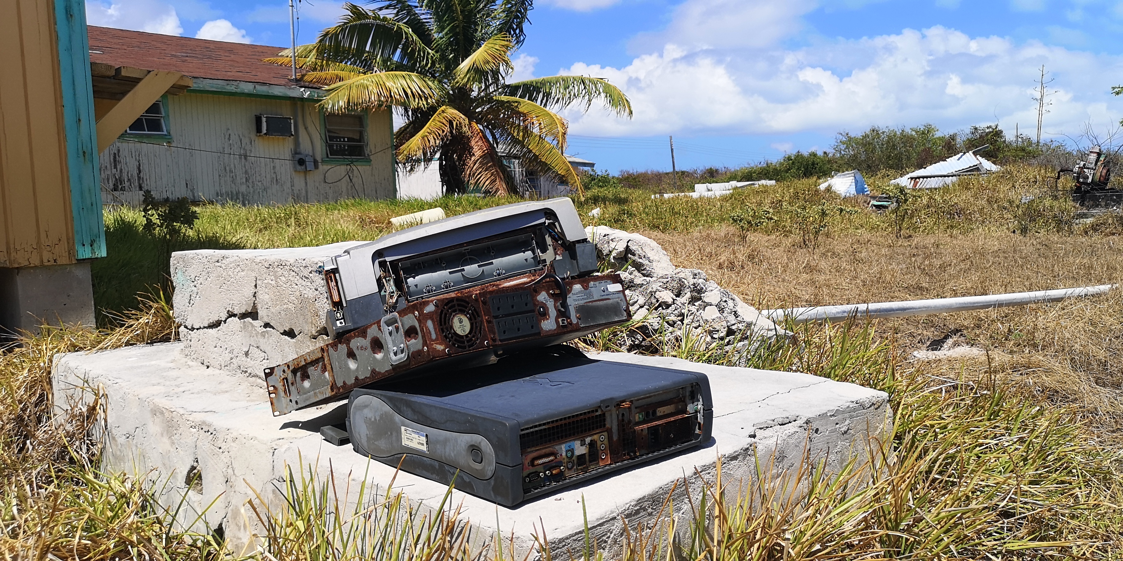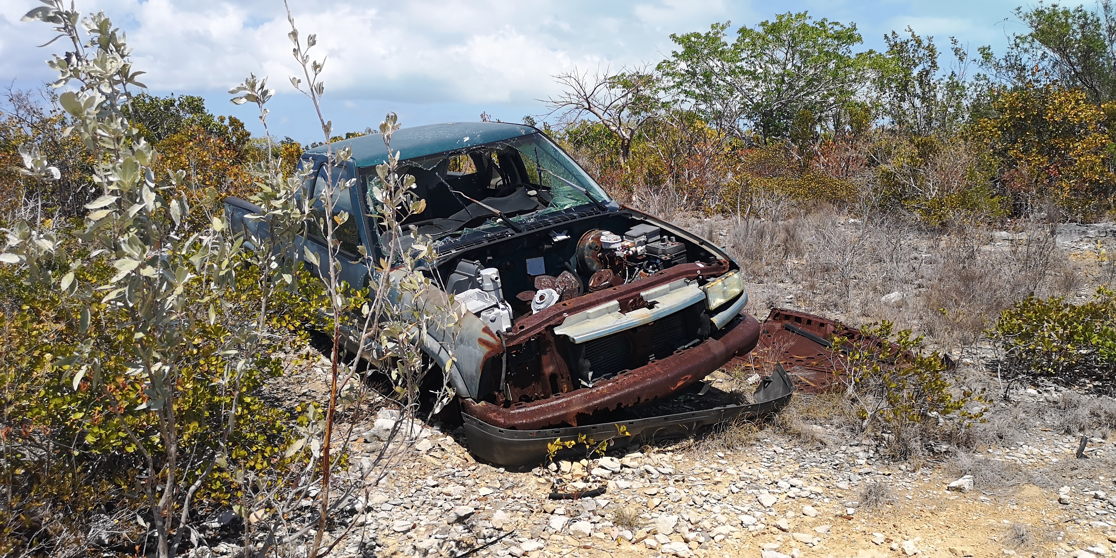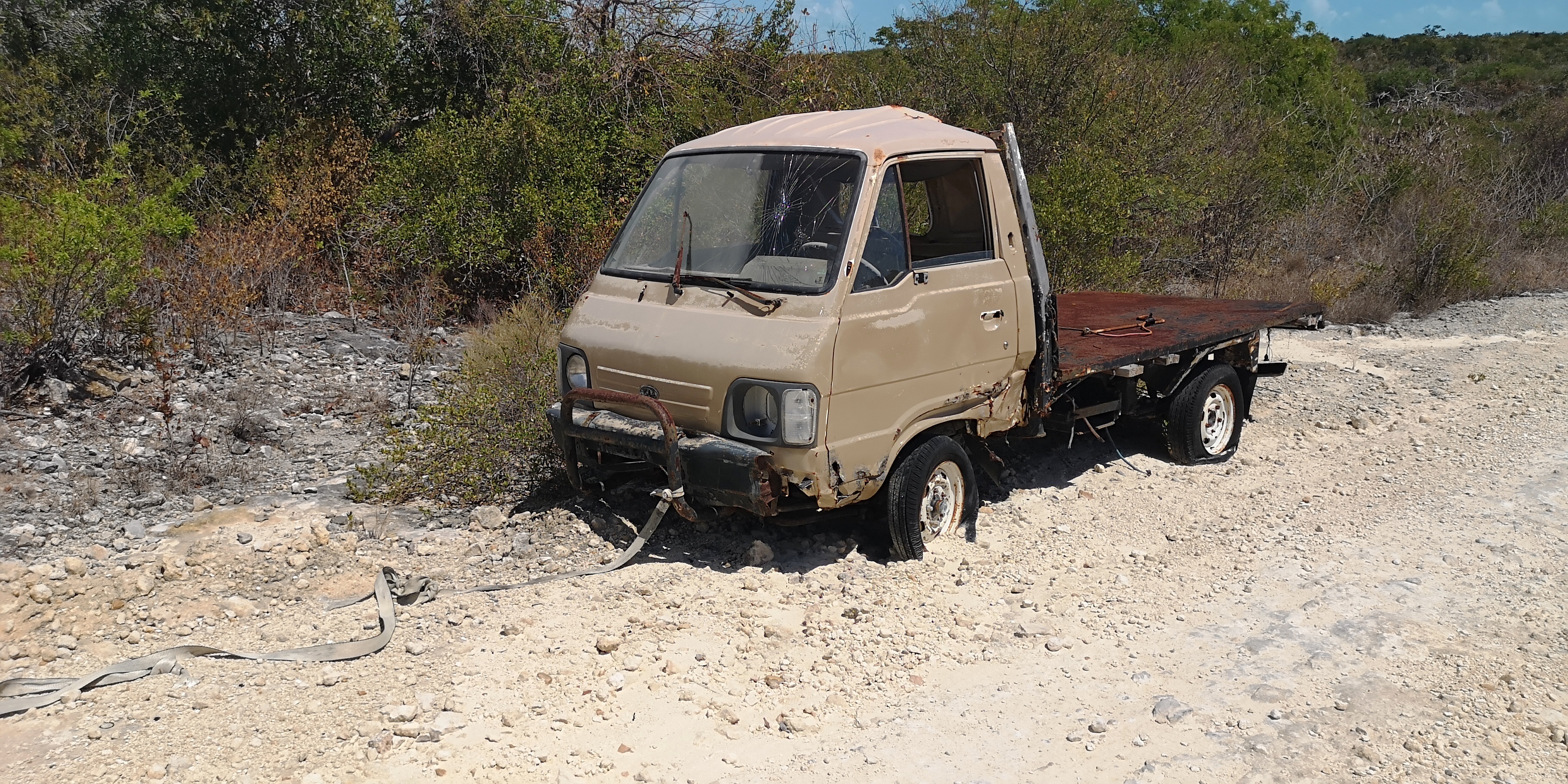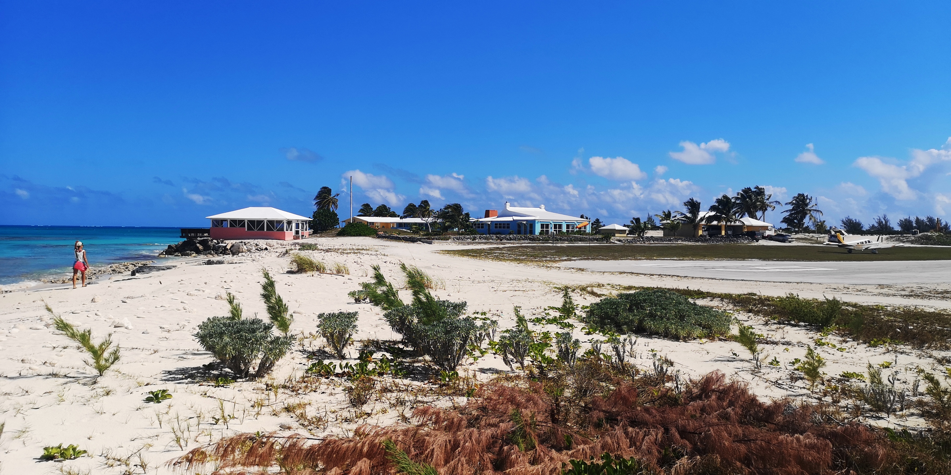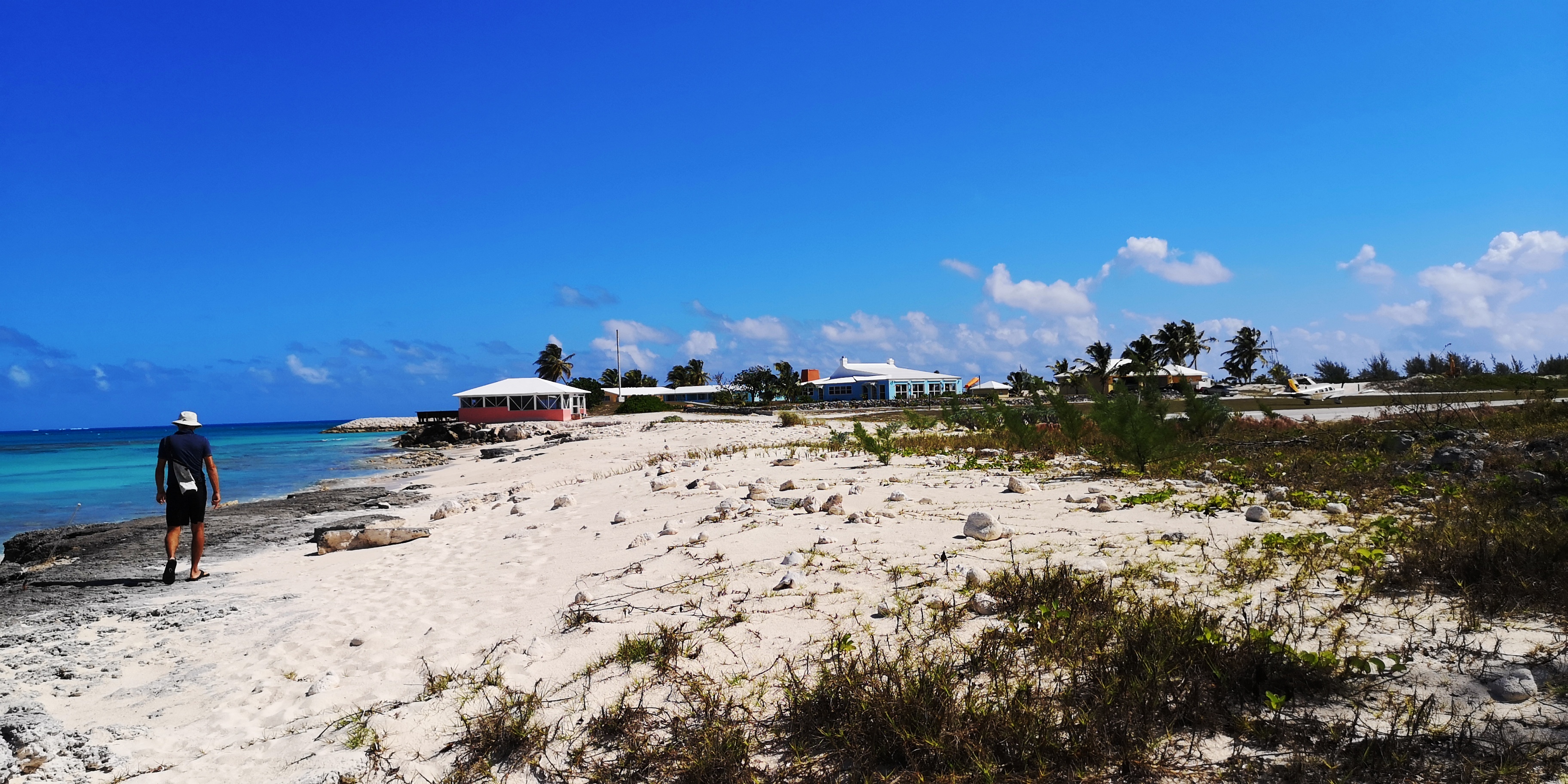 Wir durchqueren die Insel – der Breite nach von einem Ende zum anderen. Infrastruktur gibt es hier abgesehen von der Straße, Strom und einem Funkmasten keine. Allerdings sind wir uns beim Wasser nicht sicher. Es gibt alte Brunnen und zerstörte Wasserleitungen. Eventuell ja auch doch noch ein heute funktionierendes System, aber wir sehen keines. Laden – no have. Aber das Mailboot versorgt auch die wenigen Menschen hier, erzählt De Angelo. Mailboot bedeutet, es kommt sporadisch an festgelegten Tagen ein Frachtschiff und liefert bestellte Waren. Auch die Lebensmittelläden auf den südlichen Bahamas werden so beliefert. Wir haben bisher dort keine Frischware eingekauft, um den Menschen auf den Inseln ihre wenigen frischen Güter zu belassen. Noch zehren wir von den Vorräten aus Puerto Rico und teilen die ein.
