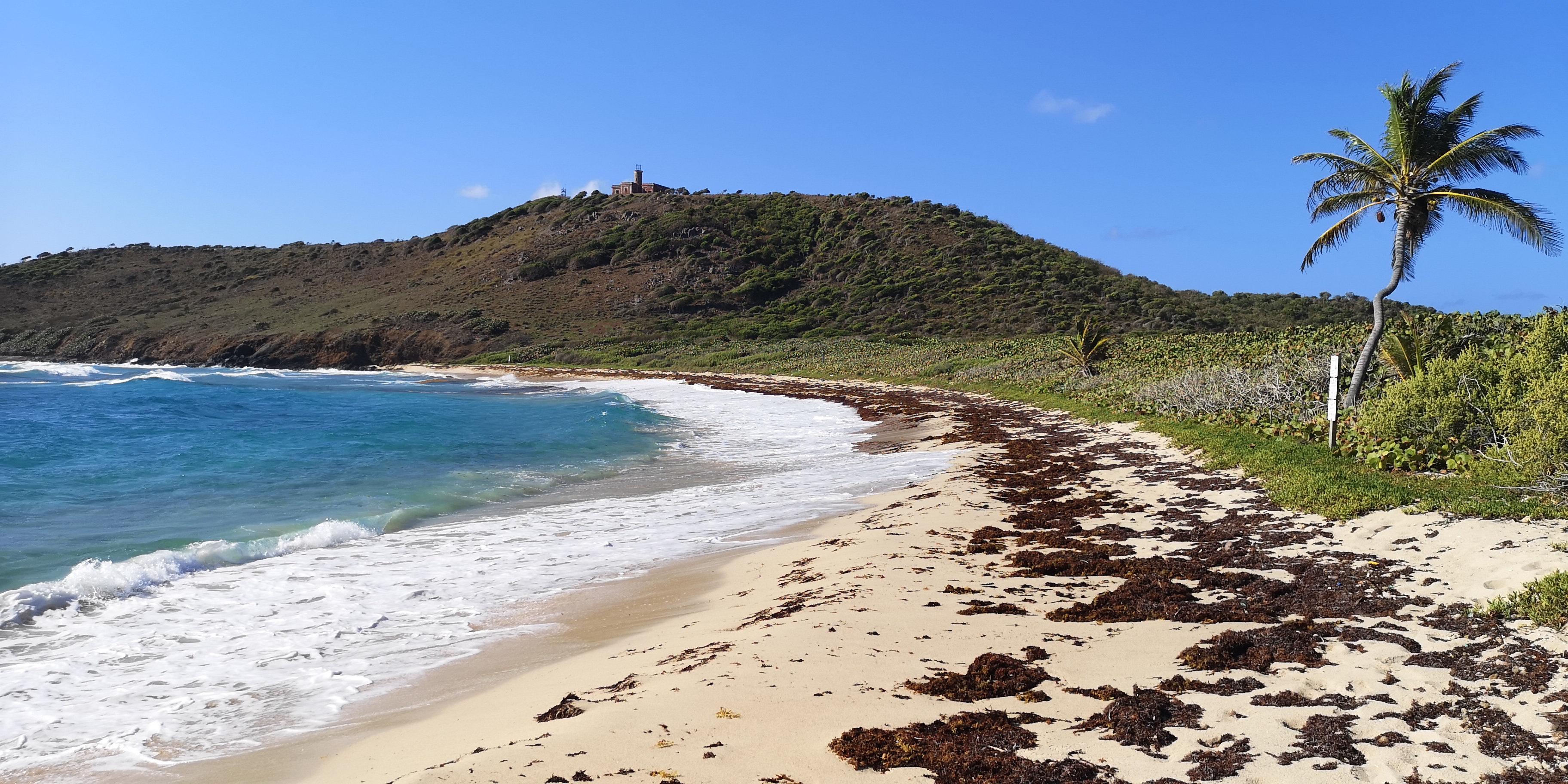 Angeblich hat es in der Bucht Tortuga sowie an der Westseite von Culebrita Mooring-Bojen. Wir fanden keine – nur diese, die sich wohl losgerissen hatte und an den Strand von Tortuga gespült wurde. Leider immer wieder dasselbe Problem: Bojen sind sehr sinnvoll wenn kein Sandgrund zum Ankern vorhanden ist. Sie schützen auch evtl. vorhandene Korallen vor Zerstörungen durch Anker oder Ankerkette. Macht in sensiblen Gebieten absolut Sinn! Aber sobald sie mal gesetzt sind (in ärmeren Ländern gerne durch Spenden finanziert), kümmert sich keiner mehr darum. Anstatt die Kette bzw. Schot, mit der die Boje an ihrer Verankerung im Boden befestigt ist, regelmässig zu kontrollieren und ggf. nach 1 – 3 Jahren zu erneuern, passiert: Gar nichts. Schon so mancher Segler fand sich mit seinem Schiff auf dem Felsen oder am Riff, weil die Boje gerissen ist. Verantwortlich ist für die Boje trotzdem immer der Skipper, selbst bei Bojen für die Gebühren einkassiert werden und in deren Umkreis Ankern verboten ist (wie es z.B. in den BVIs oft der Fall ist). Darum meide ich Bojen und bevorzuge mein eigenes Ankergeschirr. Da weiss ich, was ich habe.