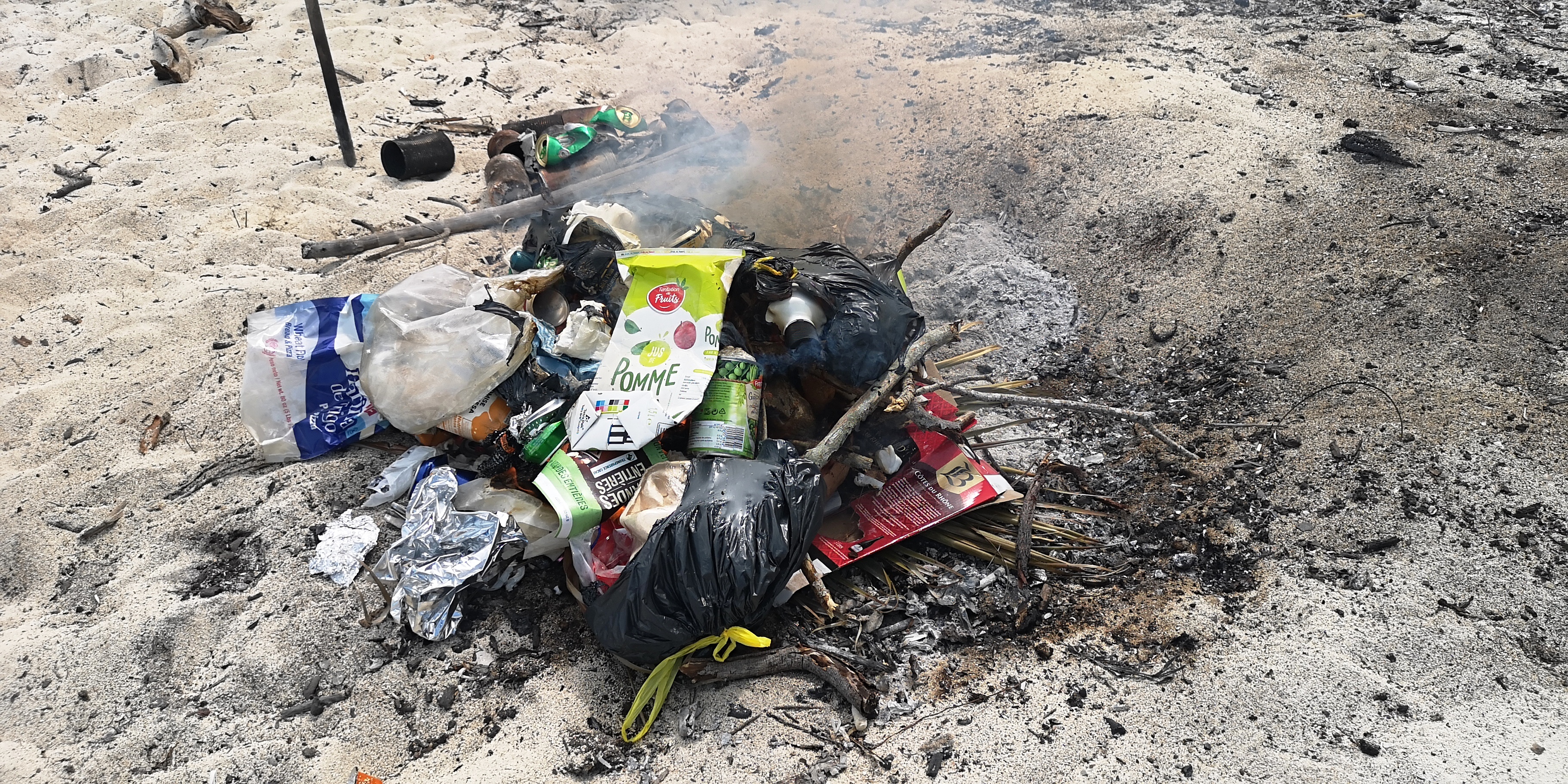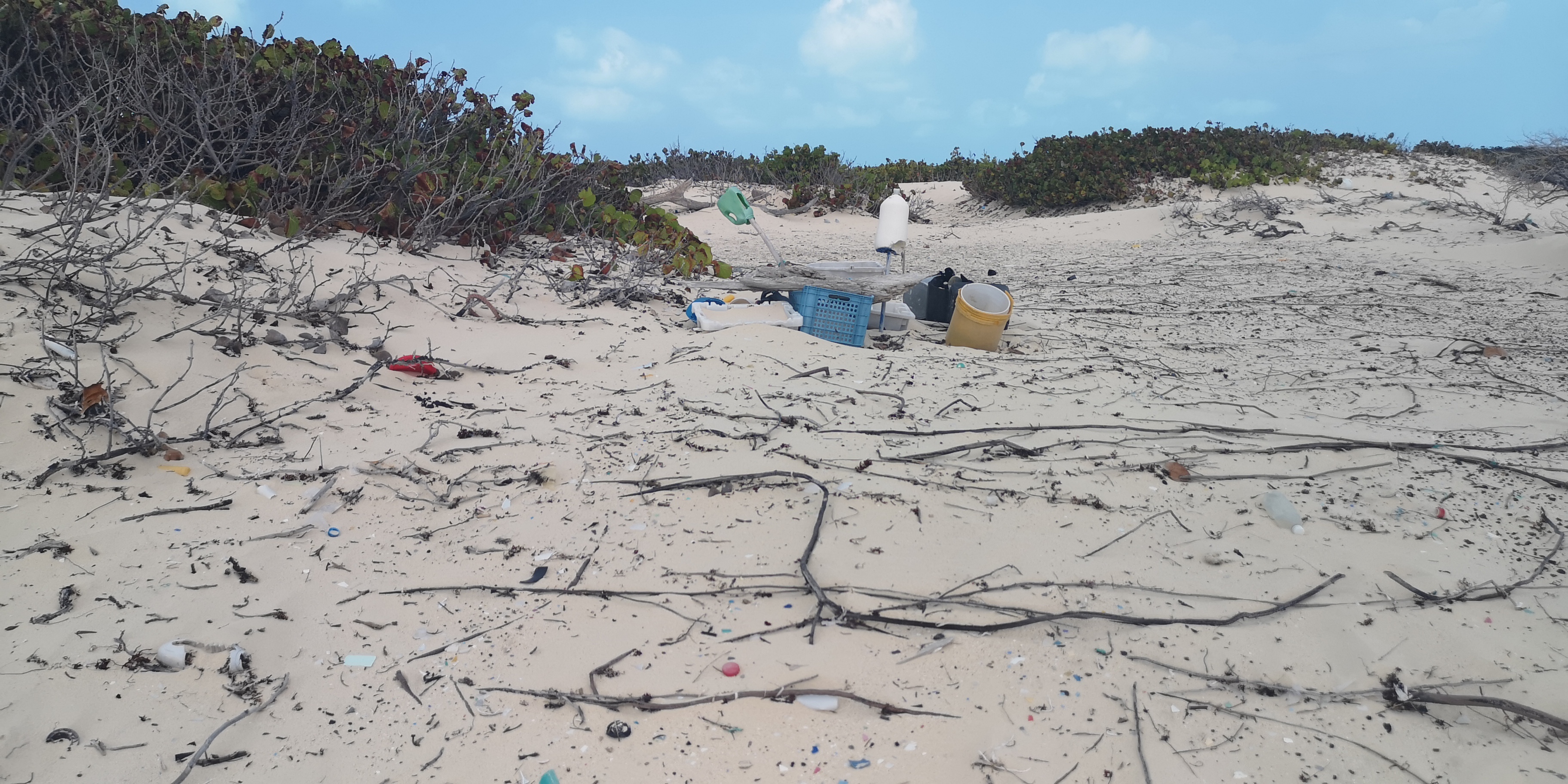Die Müllentsorgung ist hier auf den entlegenen Inseln der Bahamas Eigenverantwortung. Auch auf den spärlich bewohnten Inseln gibt es zwar einen „Trash Dump“. Aber der Müll liegt dort oft wochen- oder monatelang. Kommt Wind auf, fliegt gerne das leichte Plastik usw. von dannen und weht ins Meer. Der Rest wird verbrannt oder verscharrt – auf den meist flachen Inseln oft, ohne ausreichend abgedeckt werden zu können. Mit der Folge, dass bei Sturm so manches wieder im Meer landet.