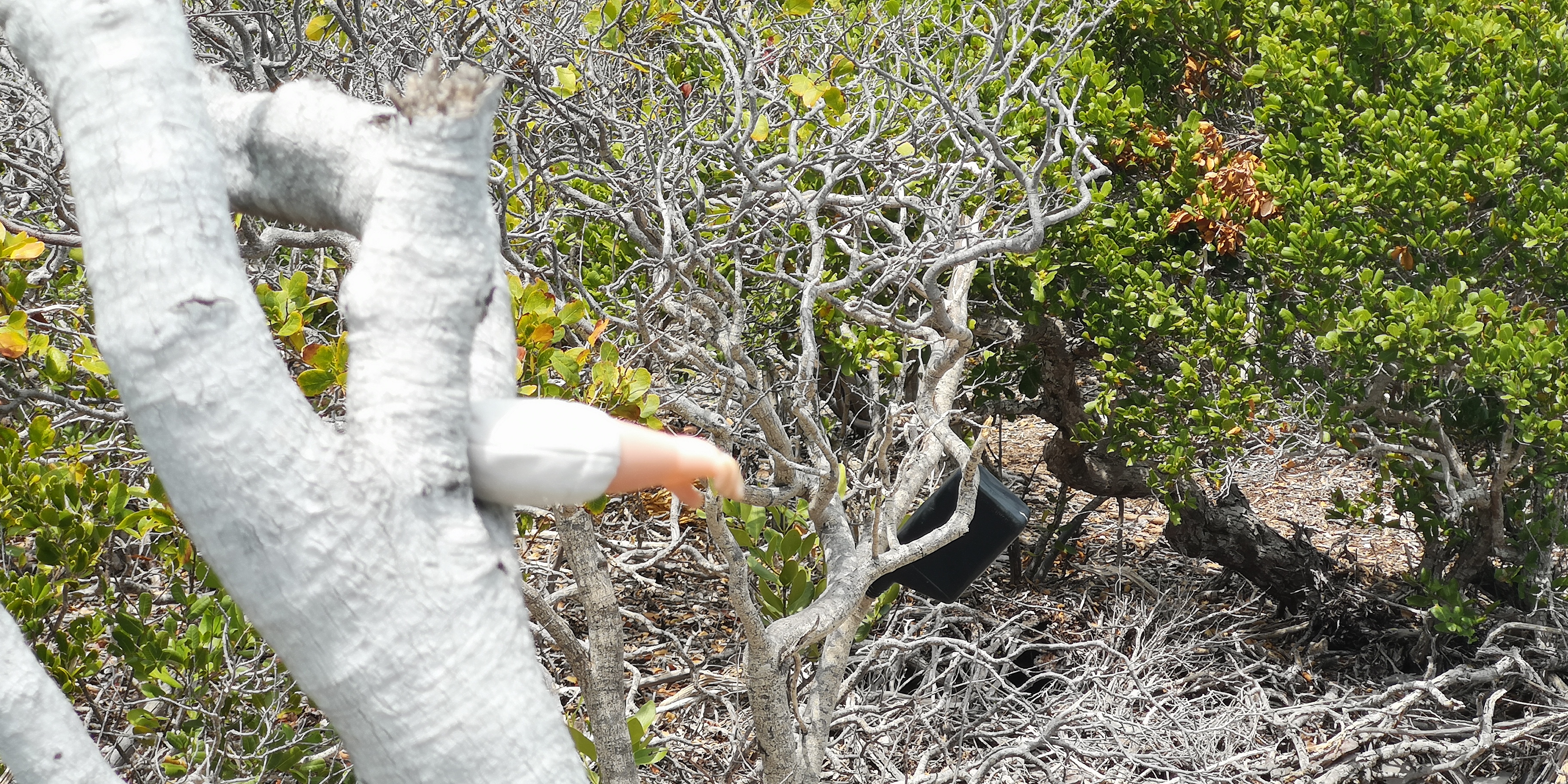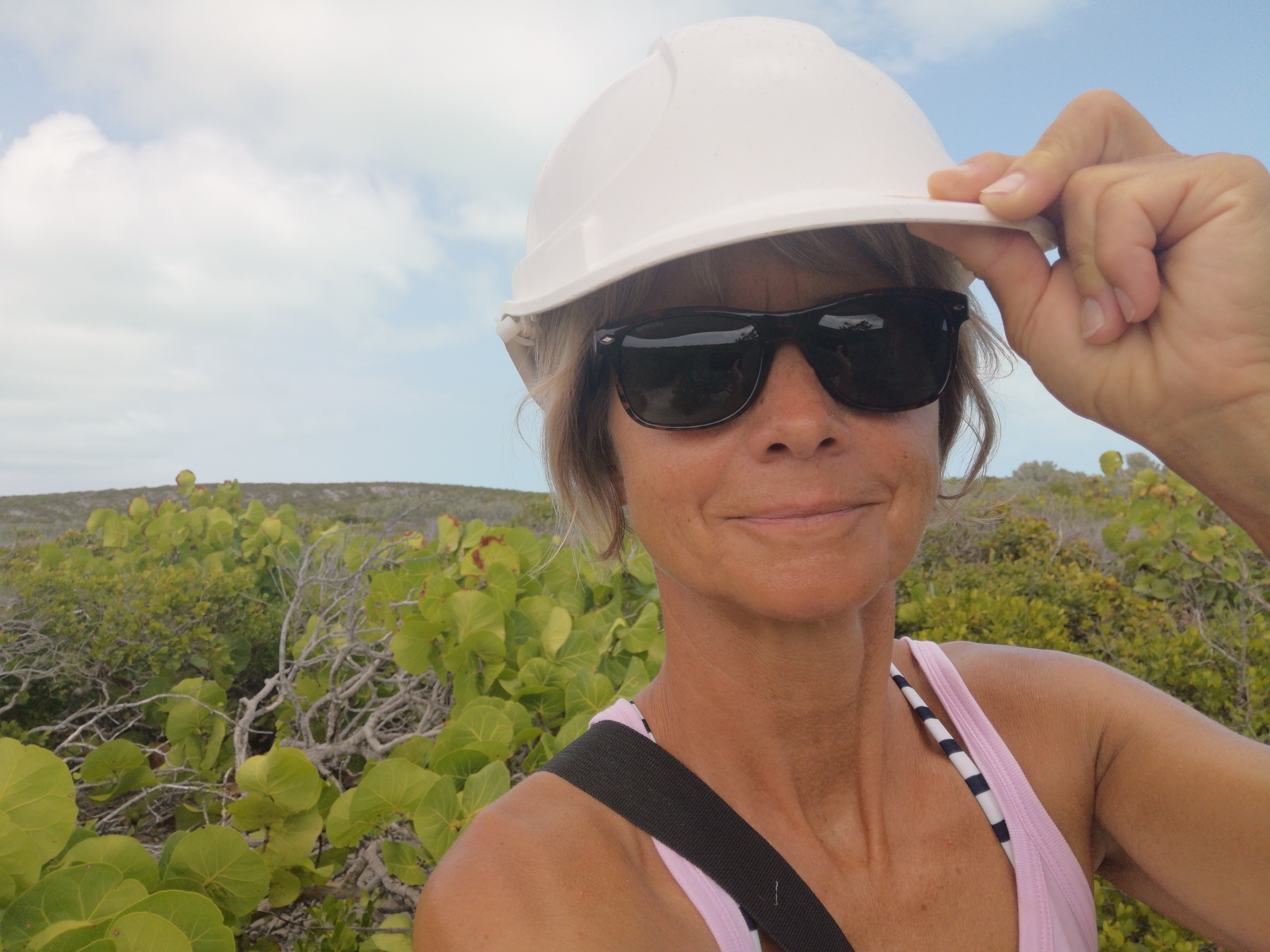 Nicht romatisch ist das Müllaufkommen an der Ostküste von Hog Cay. An die dem Wind ausgesetzten Strände spült das Meer den Zivilisationsmüll. Sogar Rollerblades, einzelne, finden wir. Definitiv nicht von den Bahamas. Und erstaunlich viele Bauarbeiterhelme.