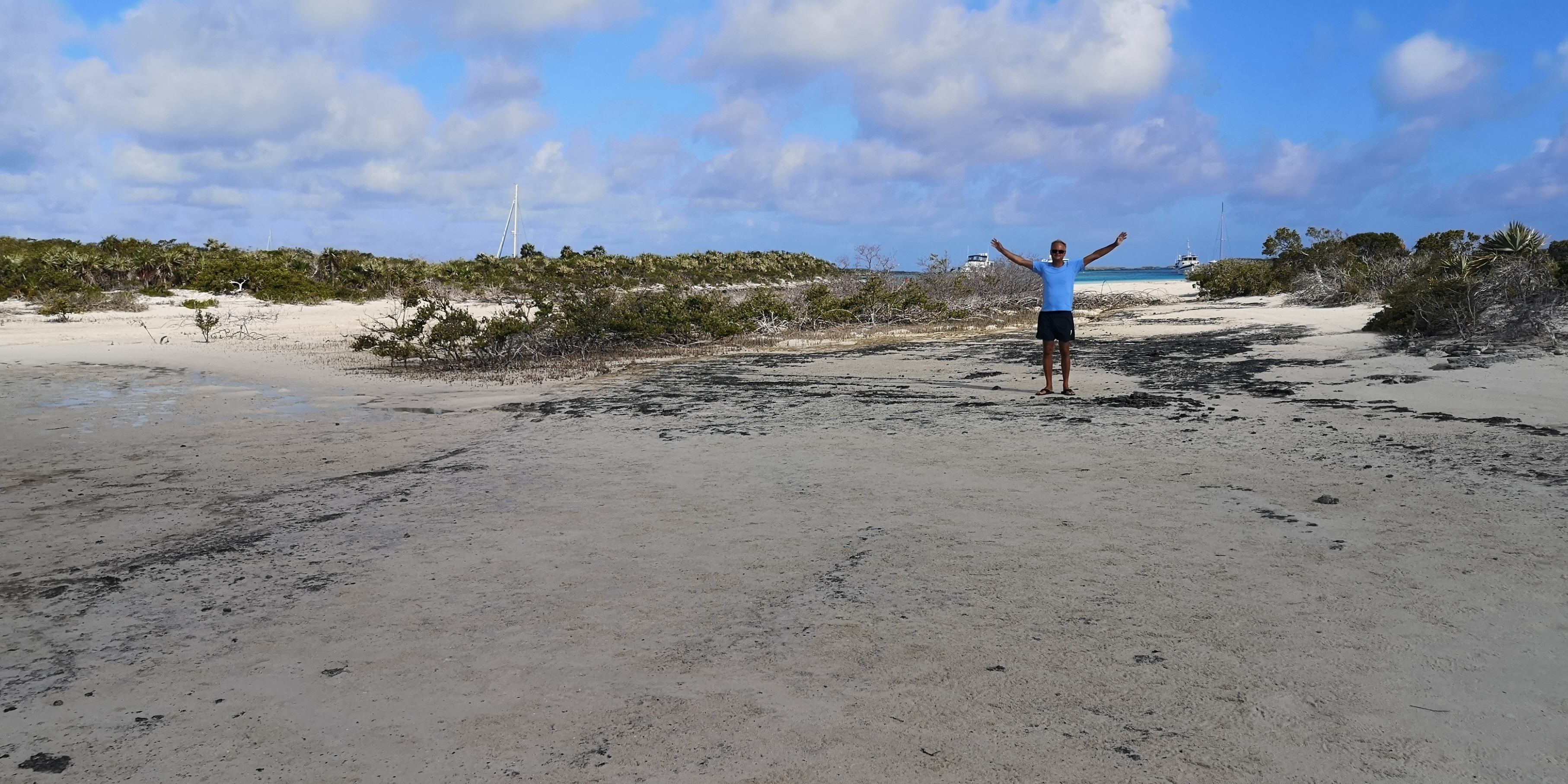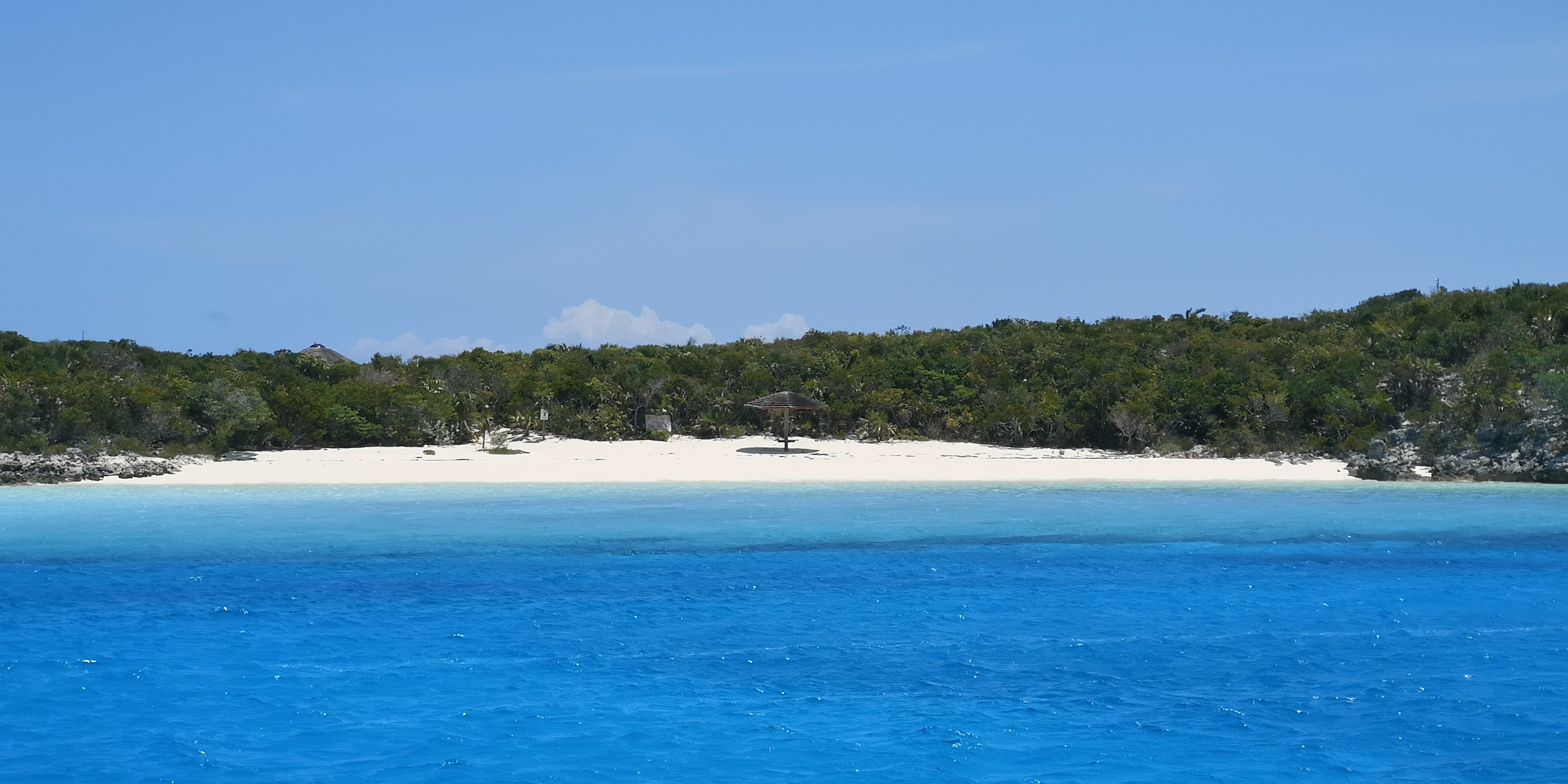Uns ist es zu trubelig in der Cambridge Cay. Wir verlegen uns zur Little Halls Pond Cay und stellen fest, dass wir vor Johnny Depps Privatinsel geankert haben. Am Strand querab steht ein Schild: „Dies ist nicht Disneyland. Sie sind nicht willkommen.“ Nicht grad freundlich. Andererseits möchte auch ein Star mal seine Ruhe vor Fotografen haben. Wir nehmen ein Strandfoto mit, nachdem wir schon direkt davor ankern. Schließlich hat Johnny rund um seine Insel noch mehr Strände.