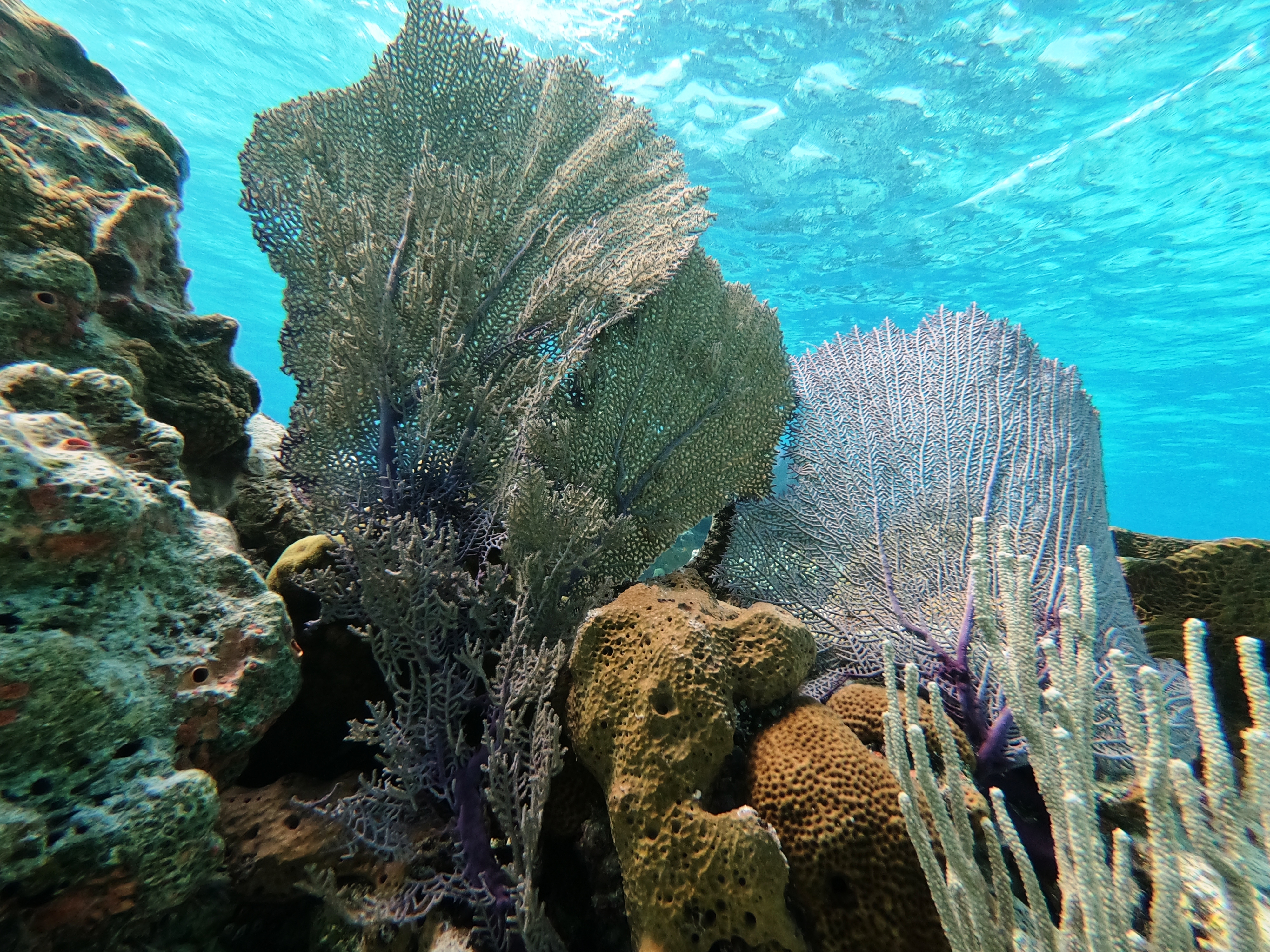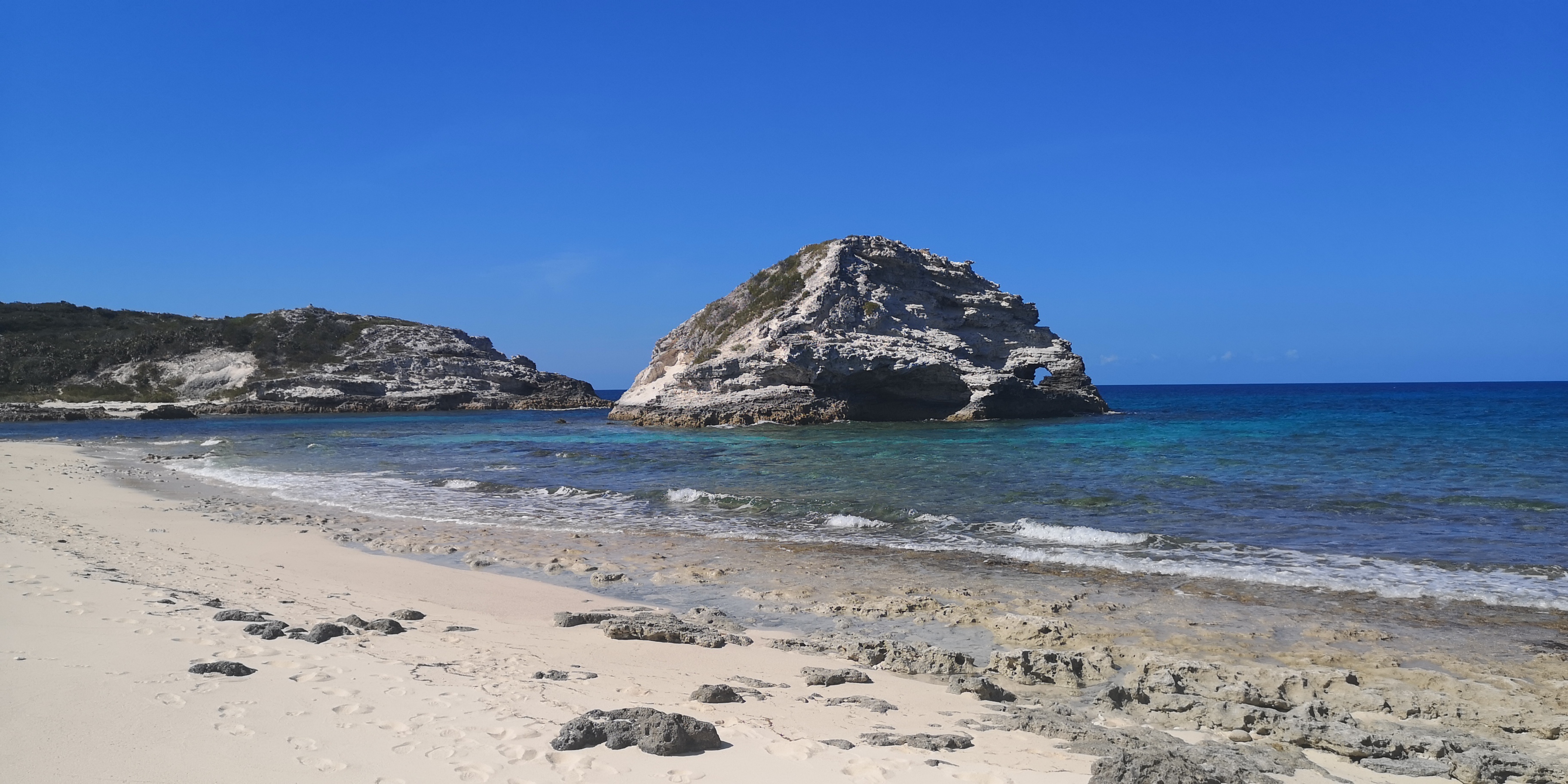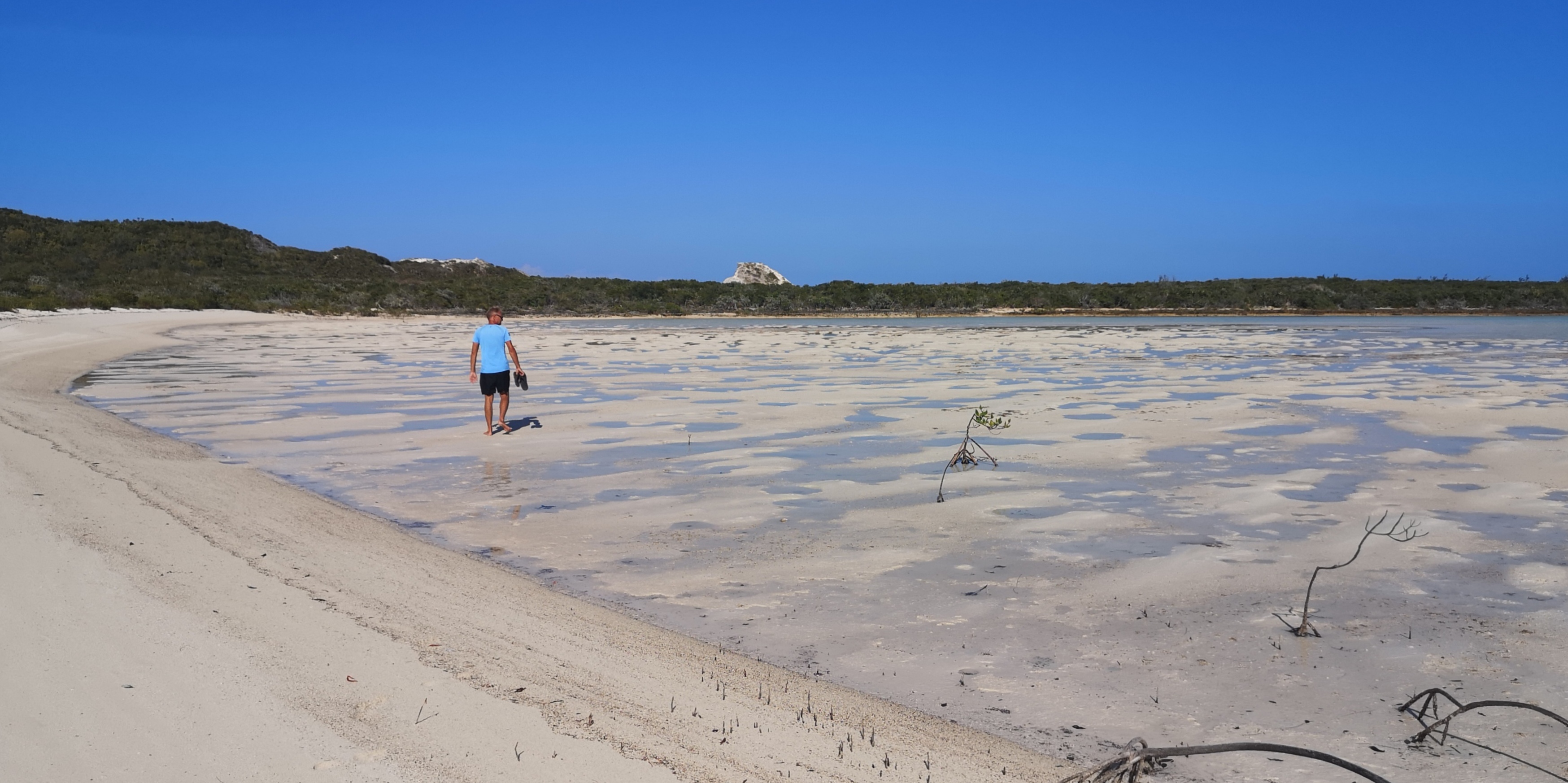Wir erkunden die Umgebung, die tatsächlich schön ist. Am meisten begeistert uns eine kleine Wanderung vom Honeymoon Beach auf die Windwardseite und anschließend ein Bad im sogenannten Blue Pool vor dem Honeymoon Beach. Hinter Sandbänken liegt ein tiefer blauer Bereich, wirklich wie ein Pool. Und dank Sandbänken haifrei, nur kleine Schildkröten sehen wir paddeln.