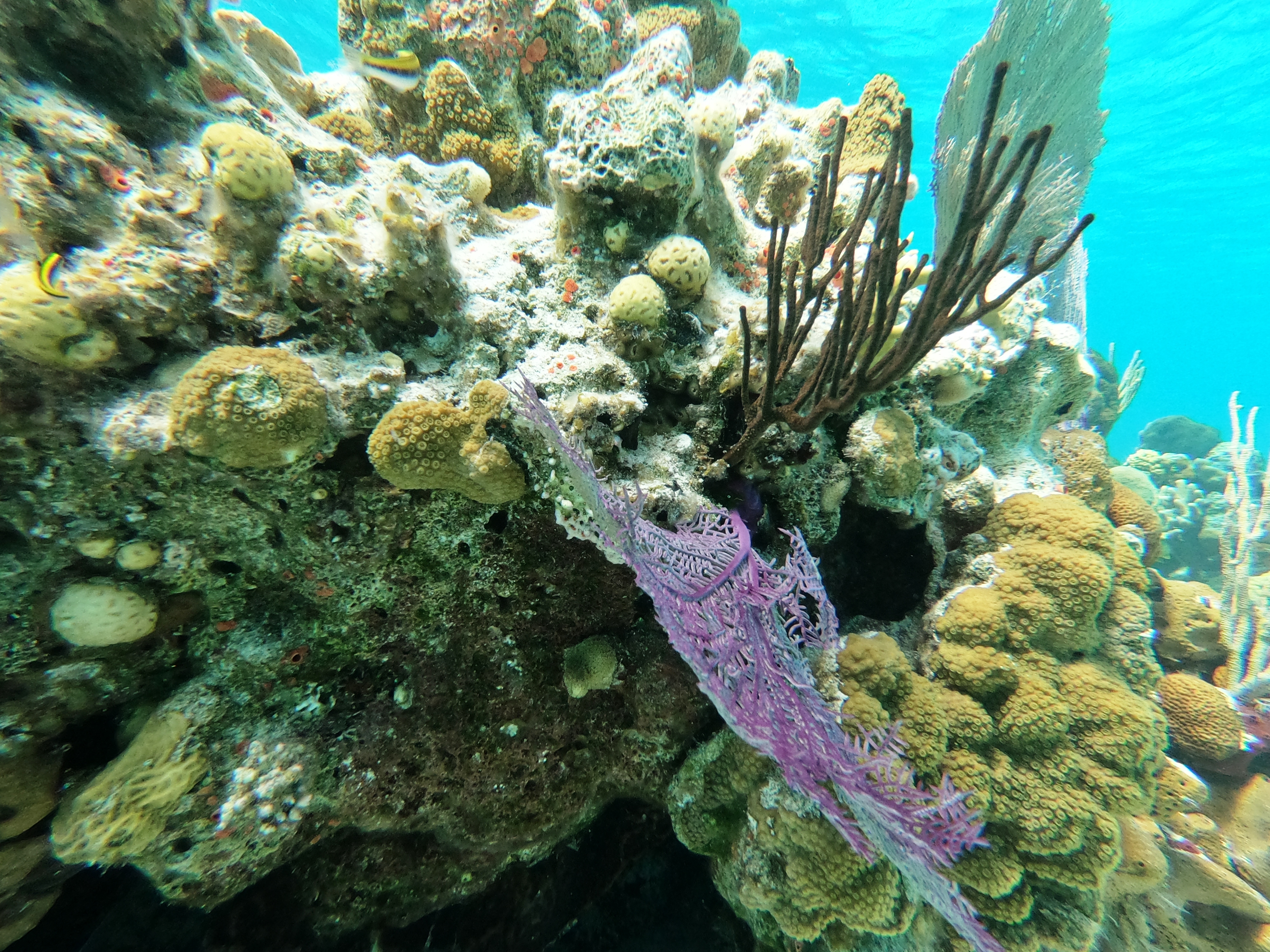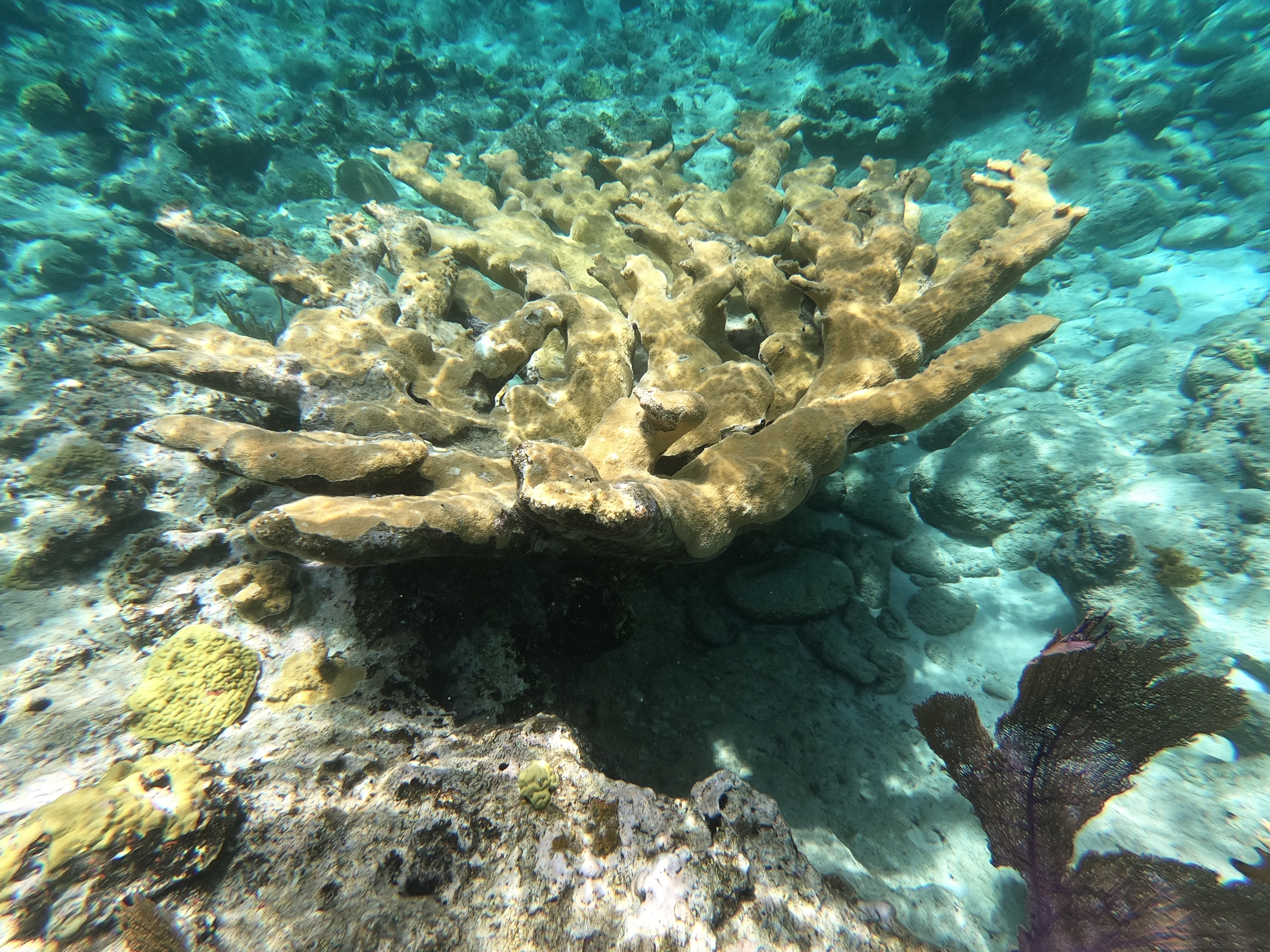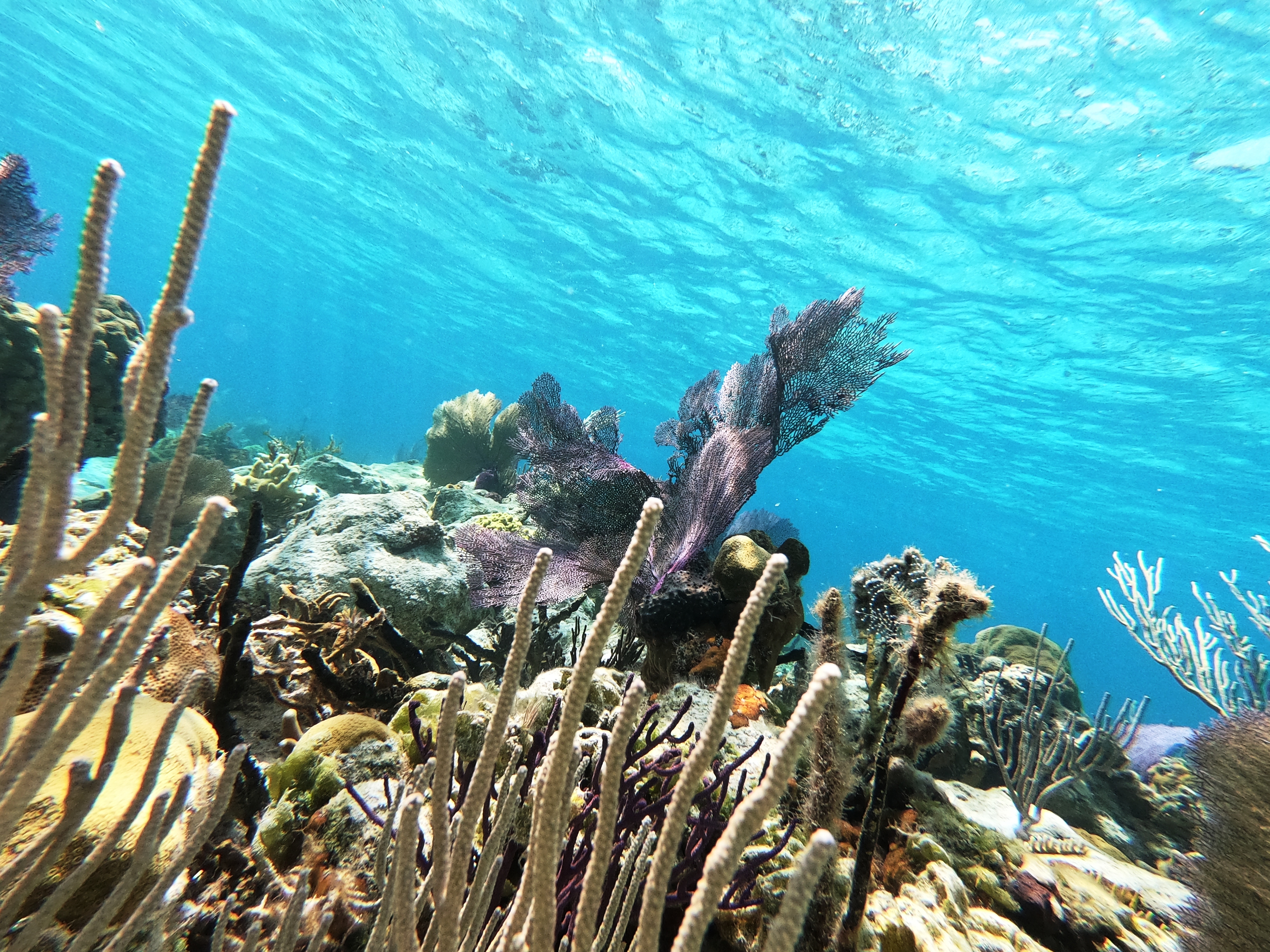 Wir erkunden die Umgebung, die tatsächlich schön ist. Am meisten begeistert uns eine kleine Wanderung vom Honeymoon Beach auf die Windwardseite und anschließend ein Bad im sogenannten Blue Pool vor dem Honeymoon Beach. Hinter Sandbänken liegt ein tiefer blauer Bereich, wirklich wie ein Pool. Und dank Sandbänken haifrei, nur kleine Schildkröten sehen wir paddeln.