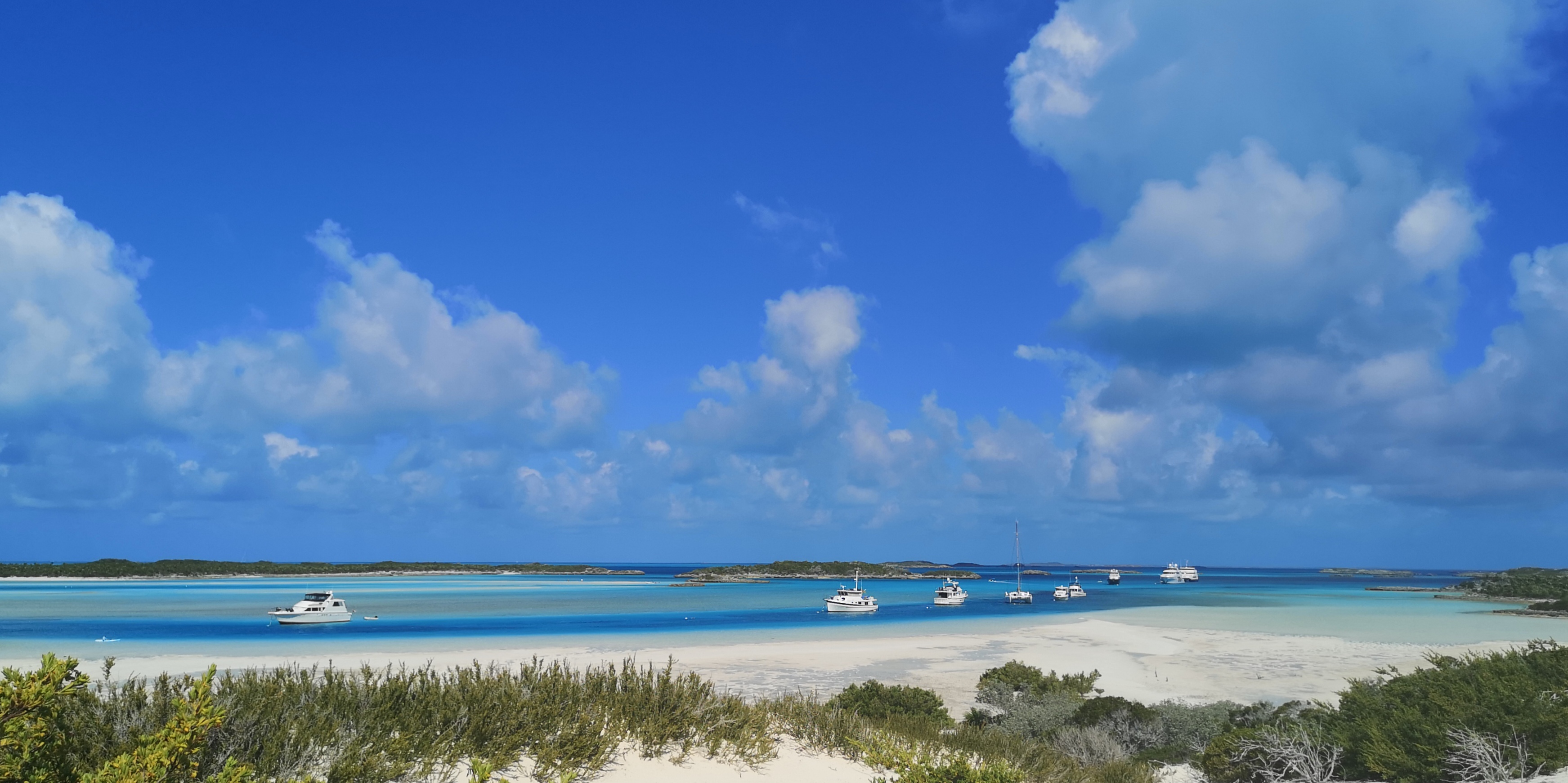 Unser erster Ankerplatz im Nationalpark ist Cambridge Cay. Mooringbojen sind in einem engen Kanal gesetzt. Sie werden auf first-come-first-serve-Basis vergeben und sind bei unserer Ankunft alle besetzt. Begeistert bin ich nicht gerade vom vollen Feld, nachdem wir zuvor schon so viele idyllische Ankerplätze in den Exumas hatten. Aber wir geben der Sache eine Chance und finden einen Ankerplatz ganz hinten auf Sandgrund.