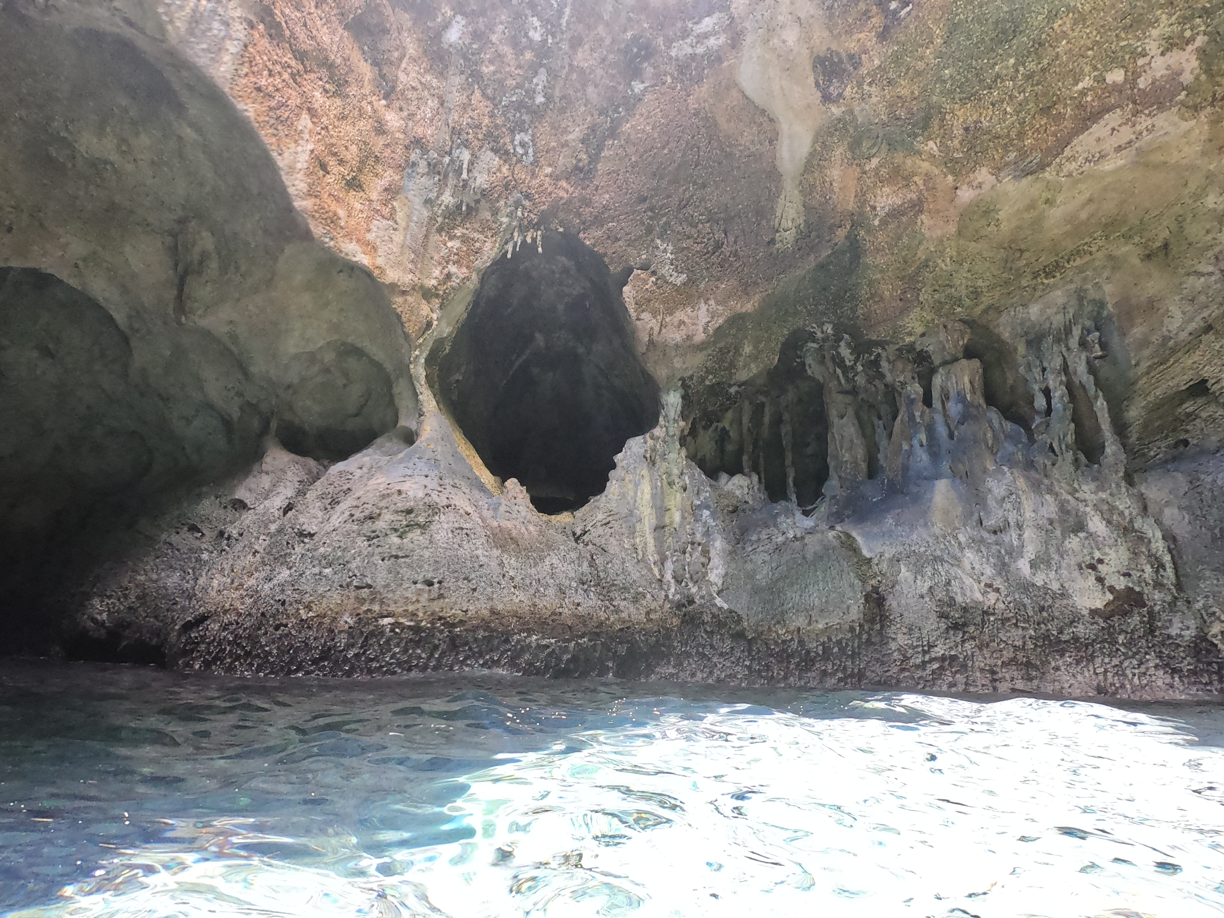 Begeistert kommt der Captain zurück. Die Stalaktiten und Stalagmiten in der rechten der beiden Höhlen sind grandios und die Farben in der anderen Höhle ebenfalls.