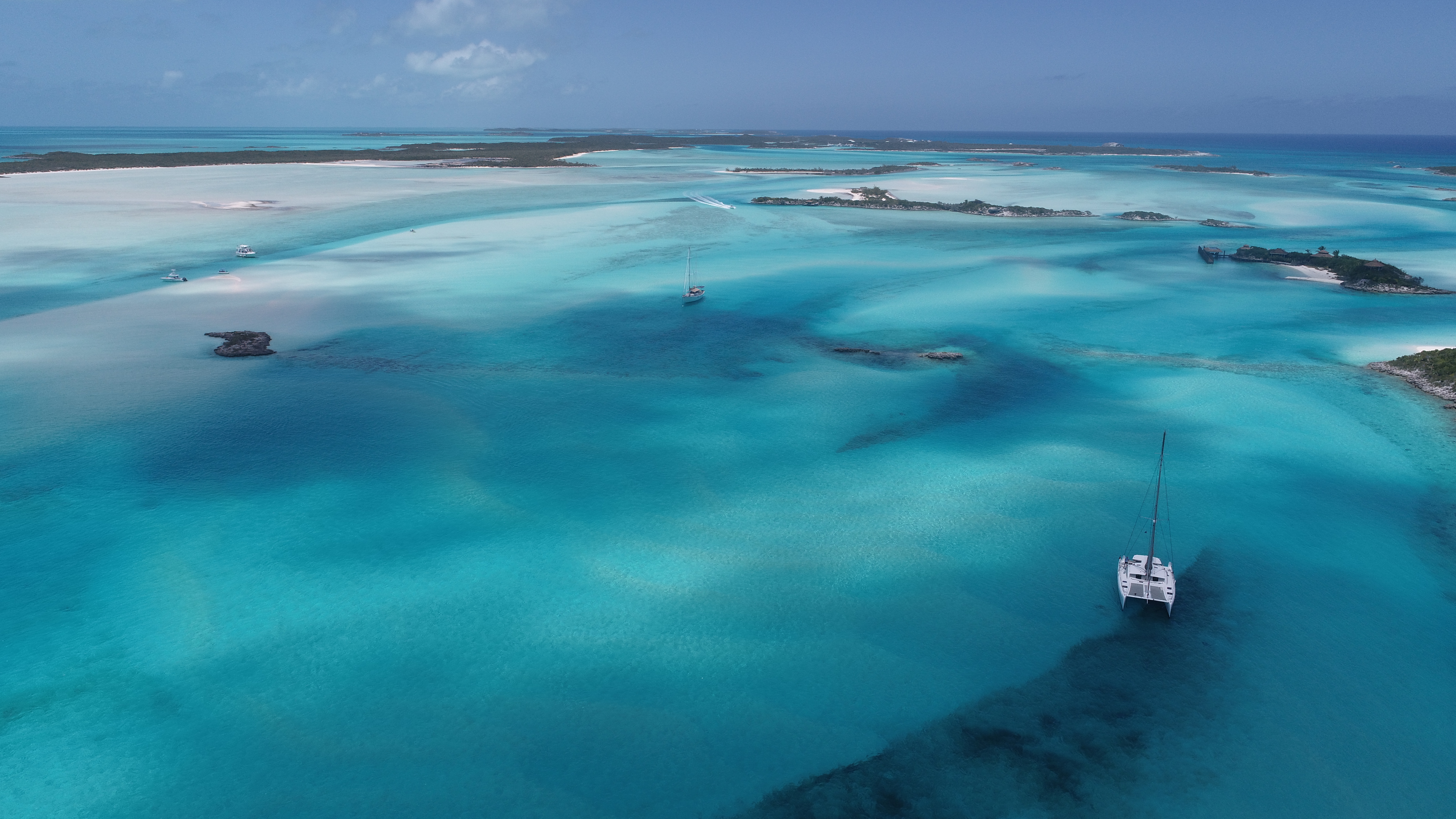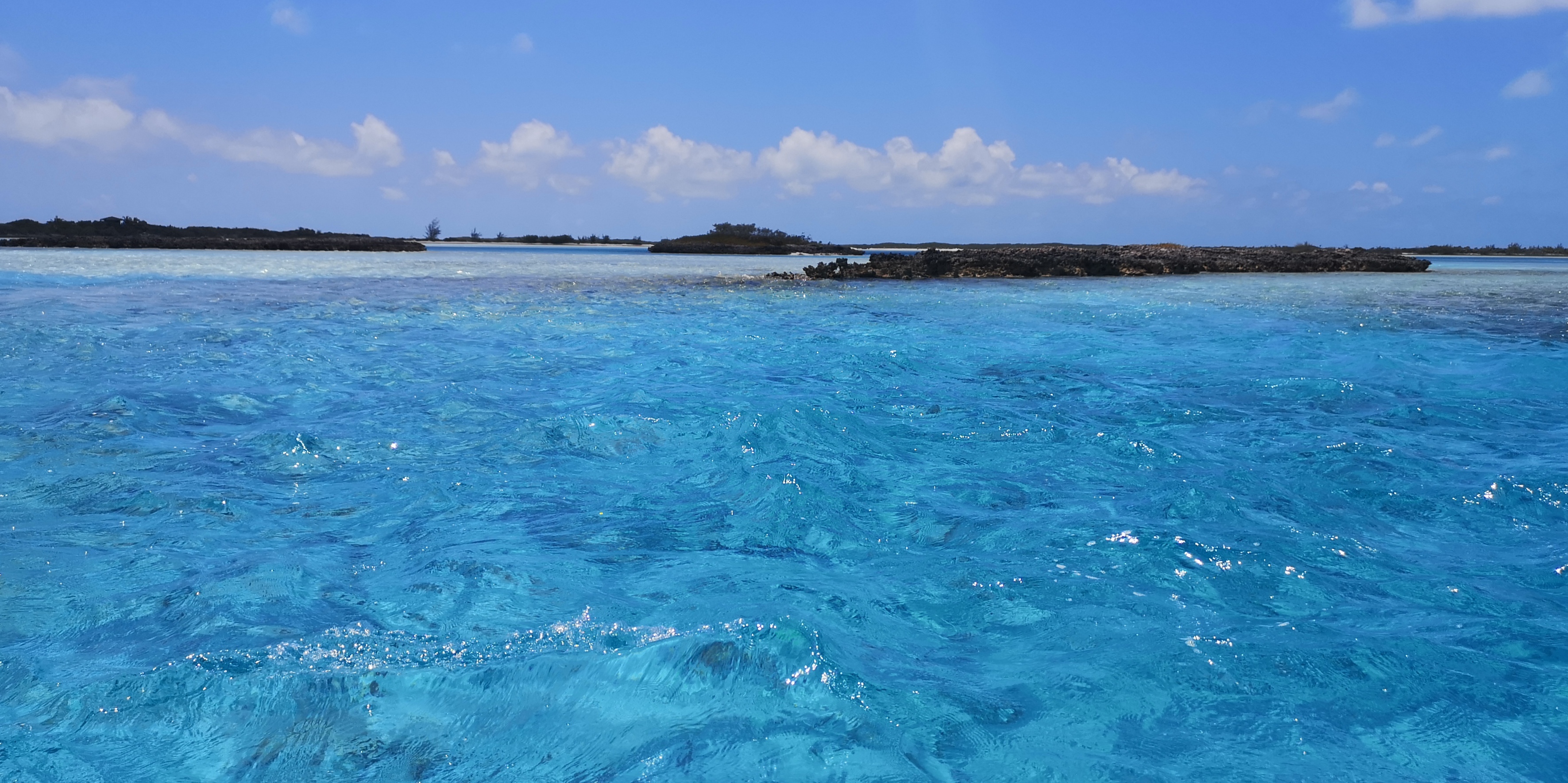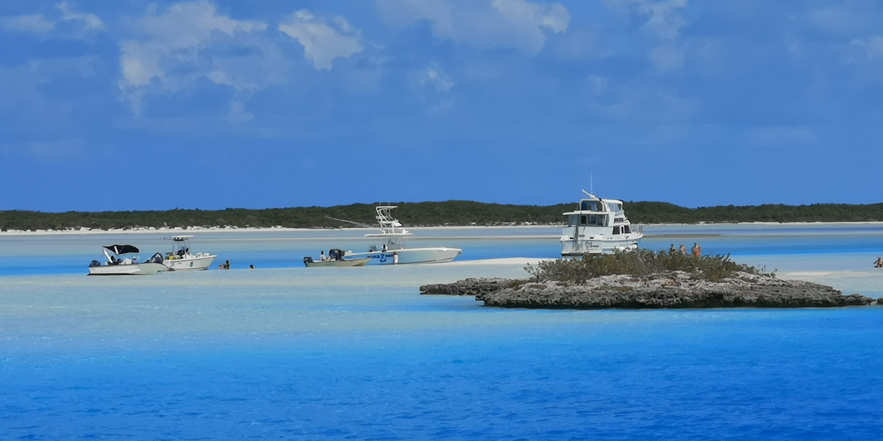Und erkunden mit dem Dinghy die Umgebung. Unzählige Flachwasserstellen und Cays, viele in Privatbesitz. Traumhafte Wasser- und Insellandschaft, schöne Korallen. Kein Wunder, dass hier viele Inseln in Privatbesitz sind mit zum Teil eigener Marina.