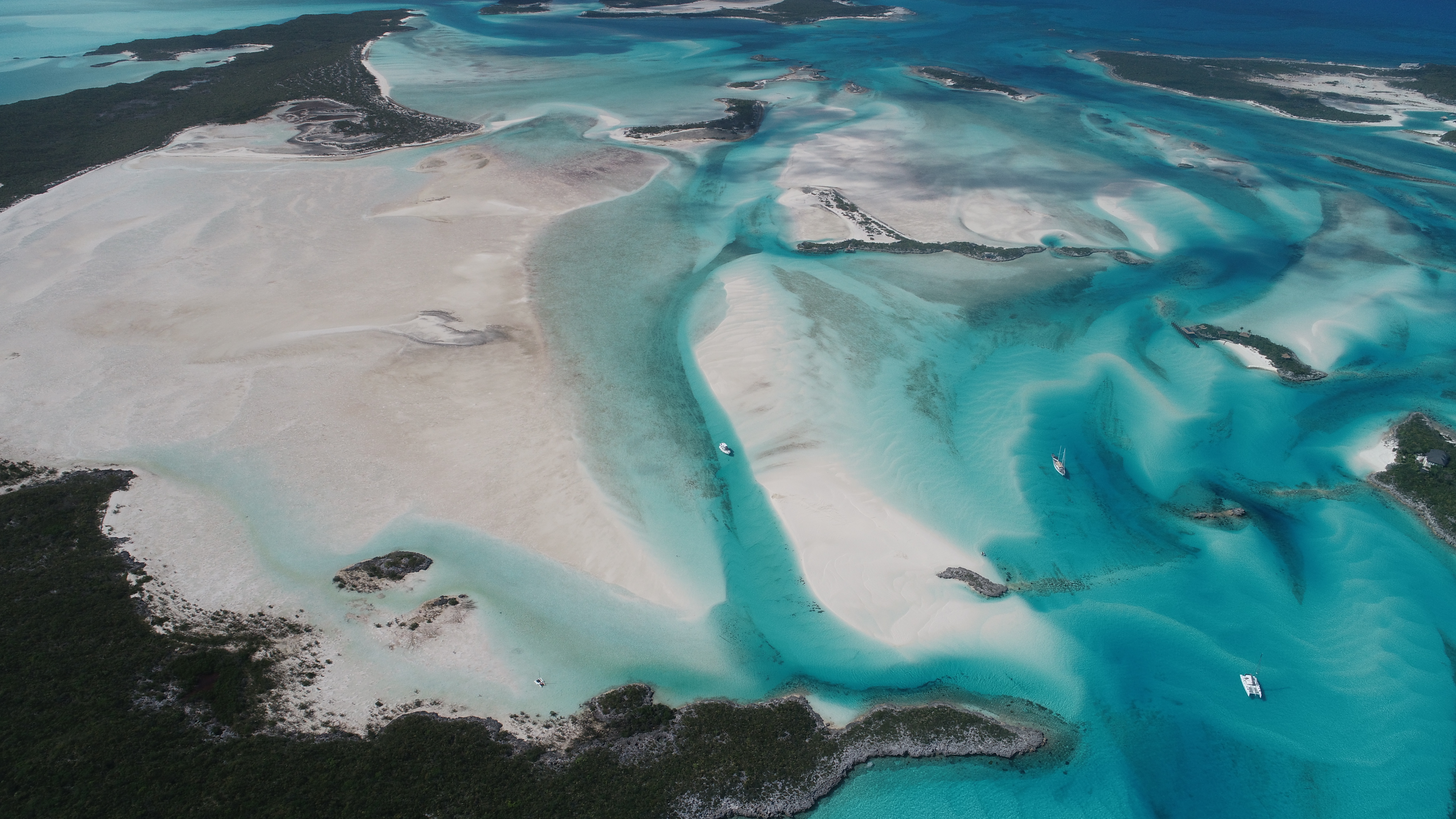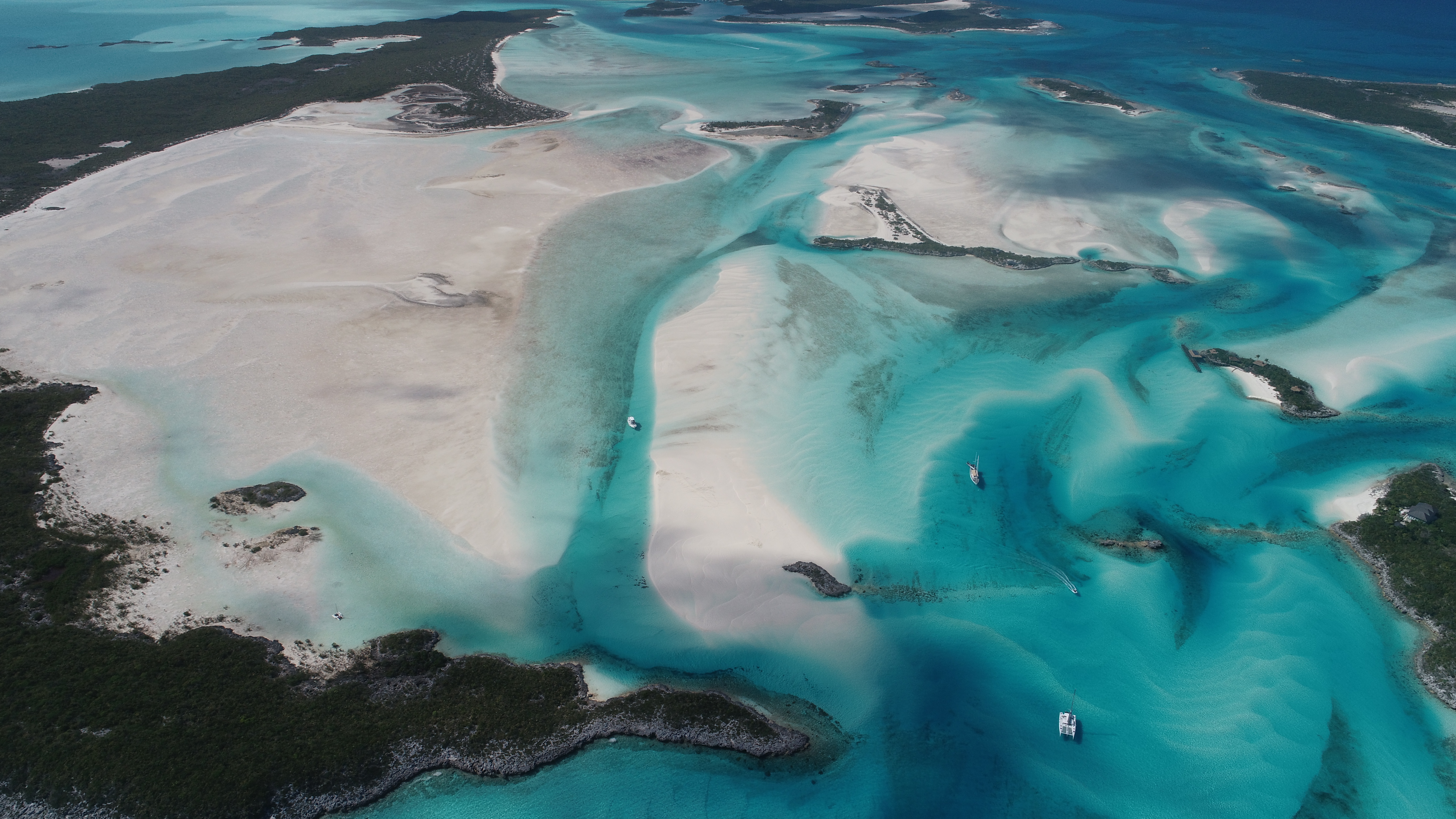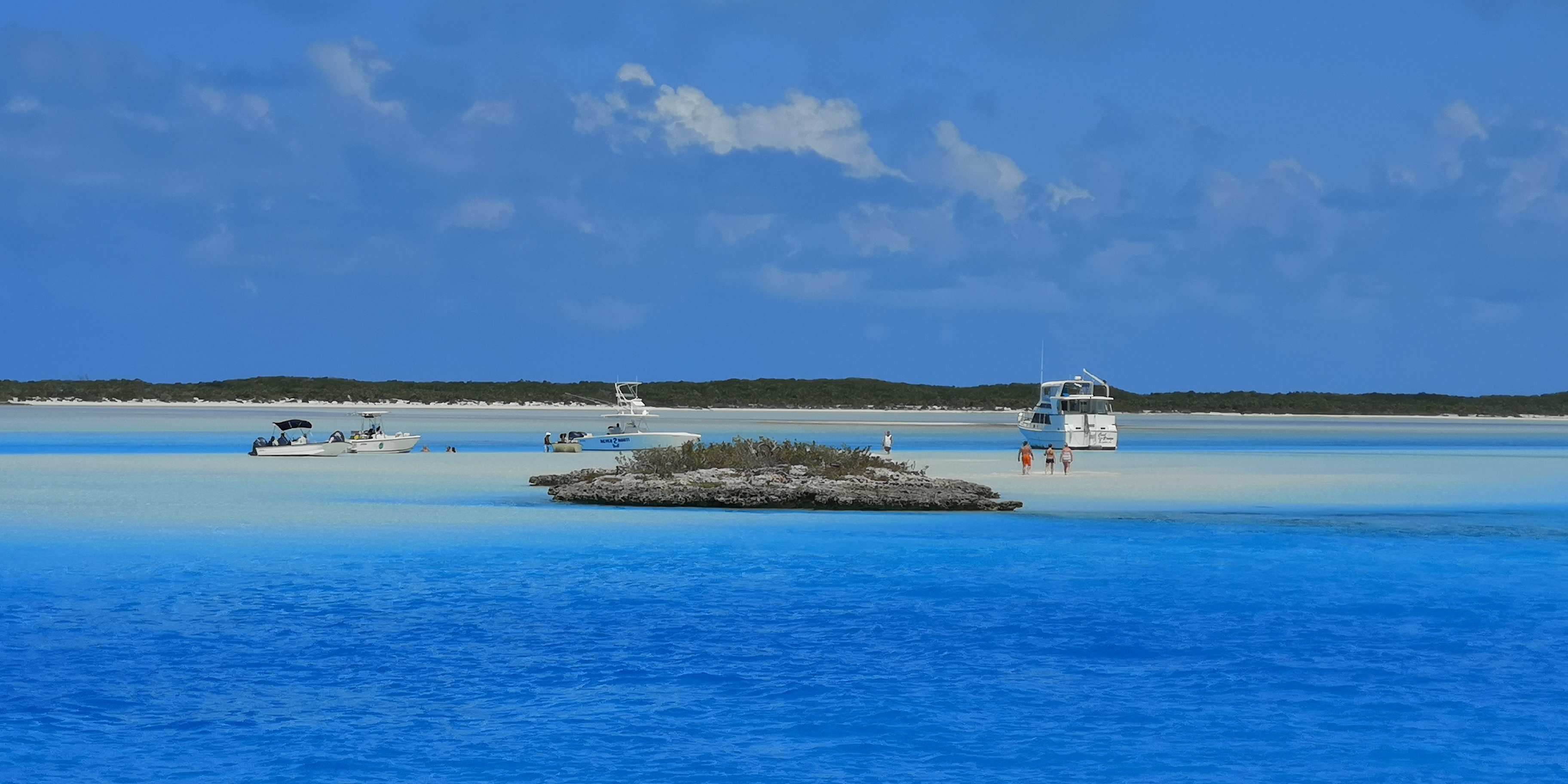 Und erkunden mit dem Dinghy die Umgebung. Unzählige Flachwasserstellen und Cays, viele in Privatbesitz. Traumhafte Wasser- und Insellandschaft, schöne Korallen. Kein Wunder, dass hier viele Inseln in Privatbesitz sind mit zum Teil eigener Marina.