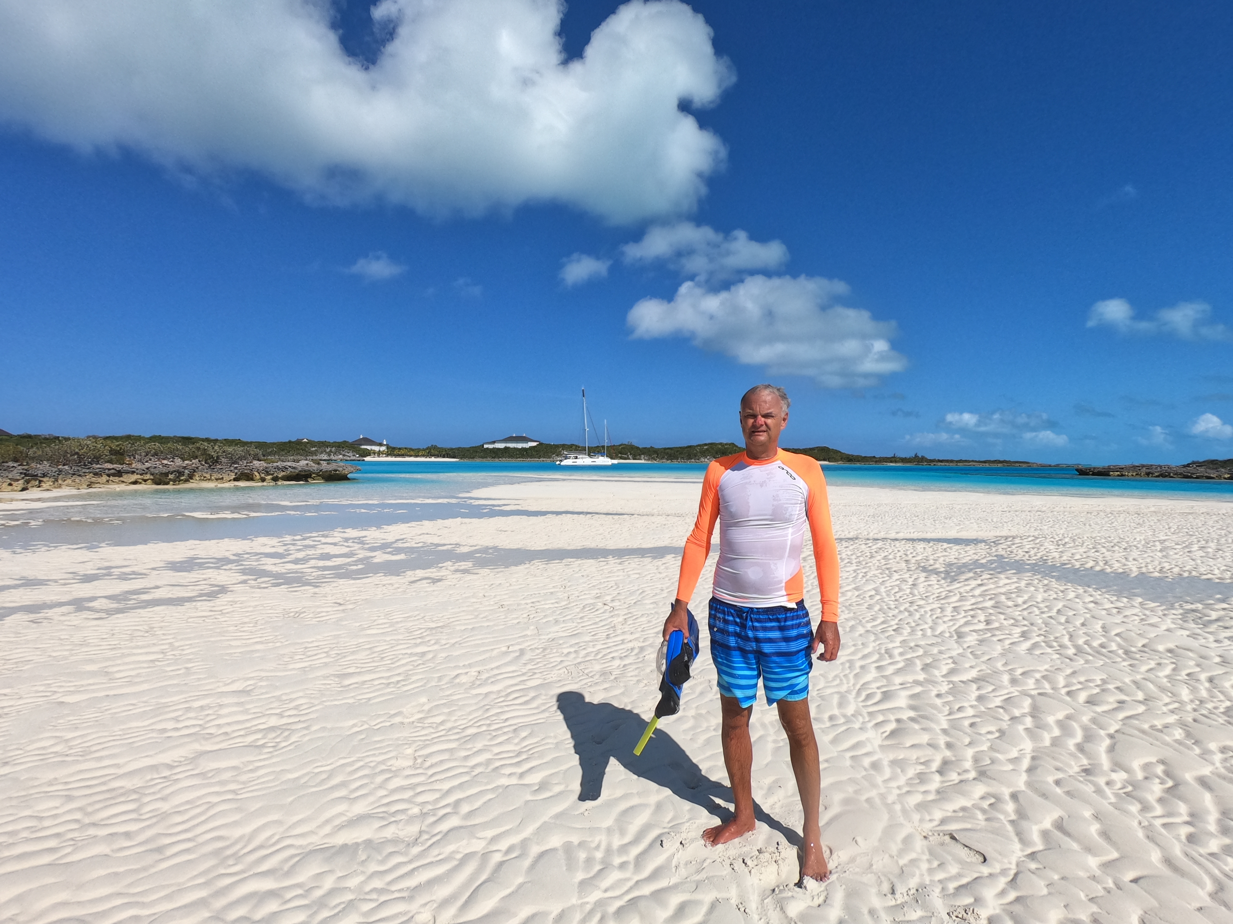 Natürlich gehen wir nicht an Land. Aber neugierig sind wir doch. Google erzählt uns, dass die Little Pipe Cay von einem reichen Amerikaner mit einem Hauptgebäude und mehreren Nebengebäuden bebaut wurde. Eine wunderschöne Location für ihn und seine Gäste. Mit zahlreichen Docks rund um die Insel, großem Süßwasserpool und anderen Annehmlichkeiten. Für 65 Mio. britische Pfund sehen wir das Ganze zum Verkauf ausgeschrieben,nachdem der Eigentümer inzwischen verstorben ist. Ob die Insel einen Käufer gefunden hat, wissen wir nicht. Abends glühen Lichter am Strand, samstags schweben Hubschrauber und Wasserflugzeug heran. Etwas tut sich also.