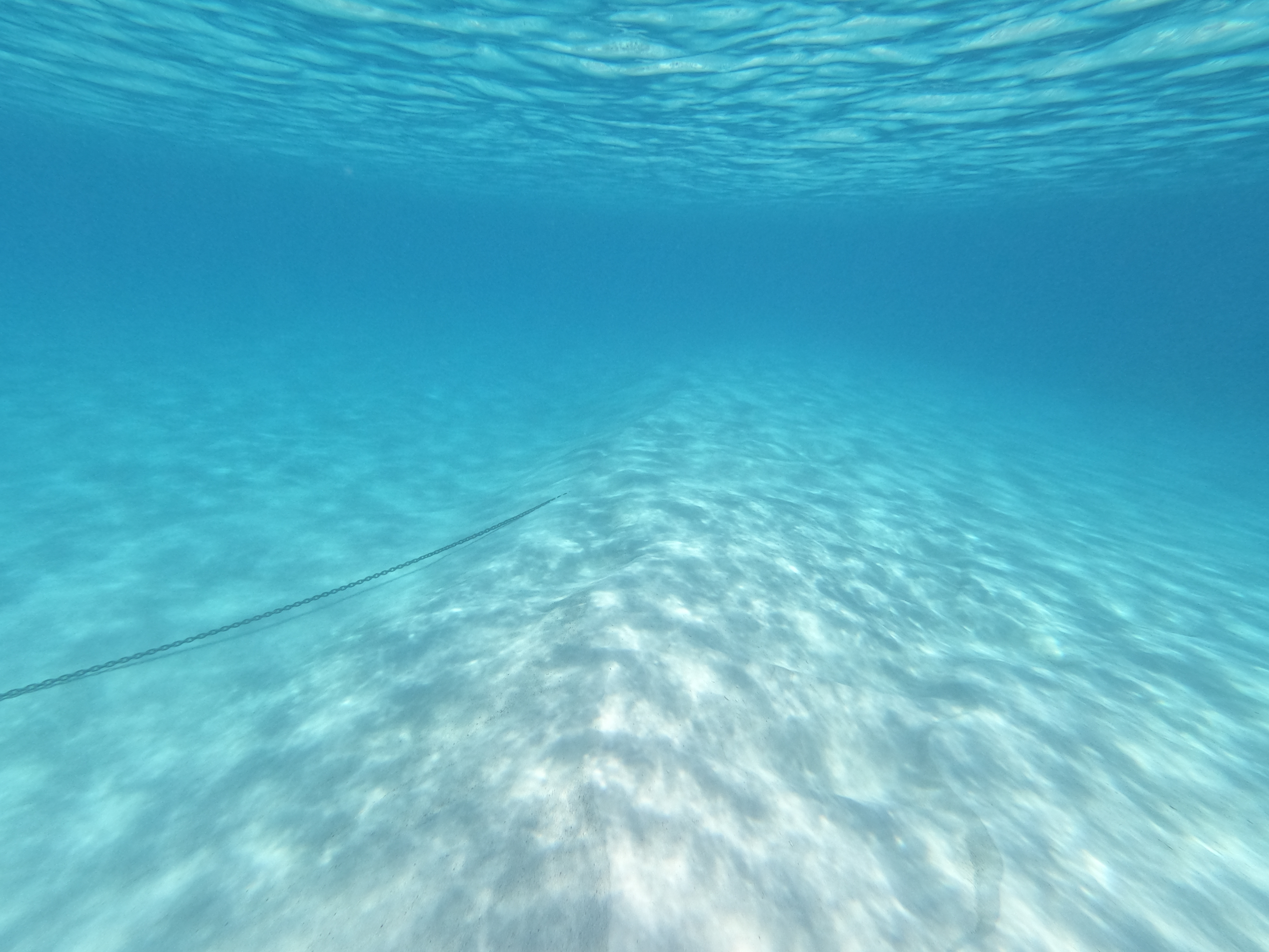 Die Kette unten am Grund runter ziehen vom Anker erweist sich als unmöglich ohne Tauchausrüstung. Zu tief das Wasser, zu stark der Gezeitenstrom und zu schwer der Anker bzw. die Kette. Der captain taucht mehrmals mit Maske & Schnorchel zum Anker hinab. Er schafft es fast den 35kg schweren Ankerzu befreien – aber nur fast, denn dann geht ihm die Luft aus und er muss auftauchen.