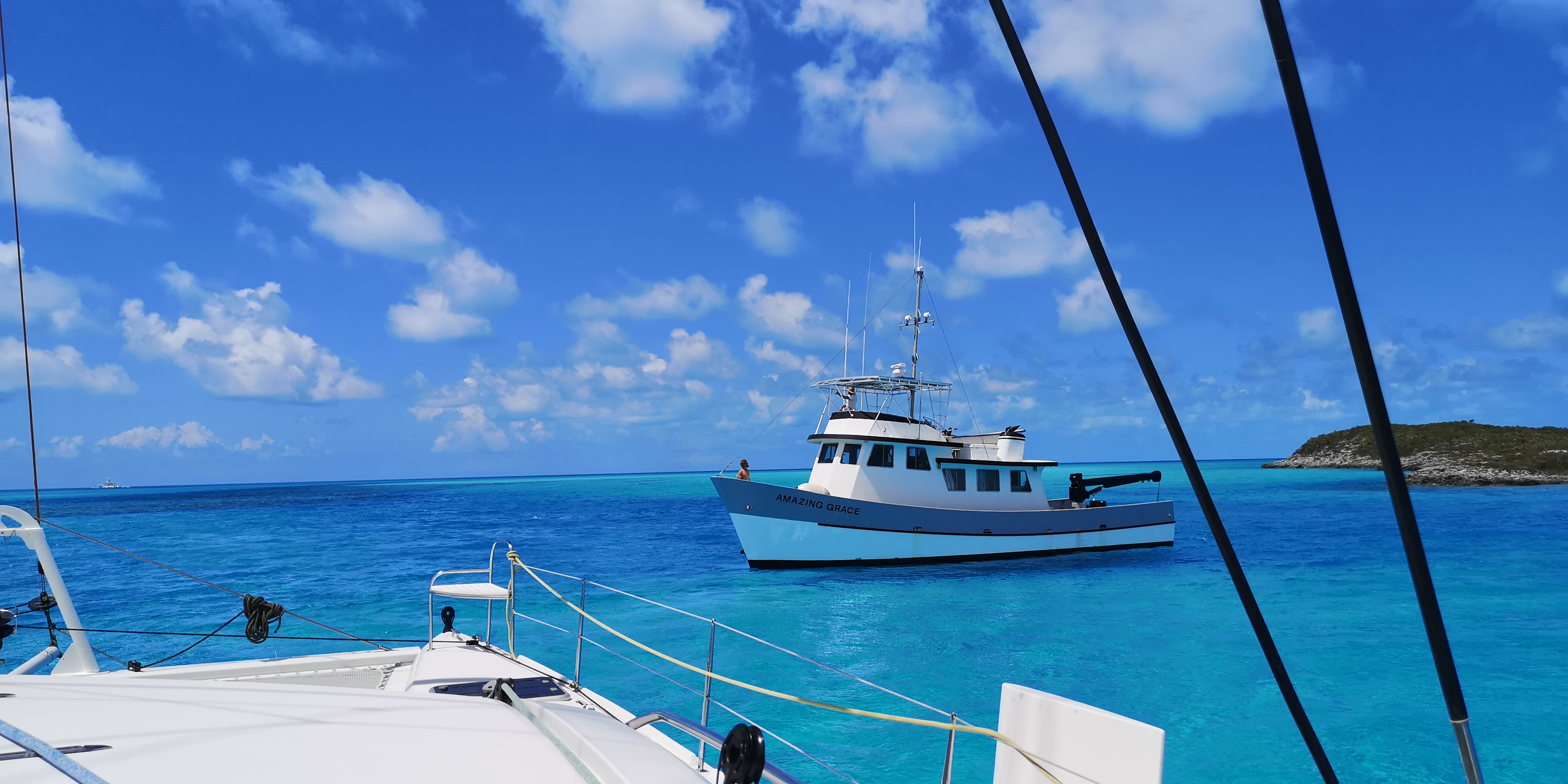 Wieder einmal ist das Navigieren spannend. Die Rasterkarte (Explorer Charts) zeigt für die Einfahrt zu unserem nächsten Ankerplatz an der Westküste von Little Pipe Cay zwei enge Durchfahrten, in deren Mitte ein nicht befahrbares Flach liegt. Da heißt es ganz exakt steuern.