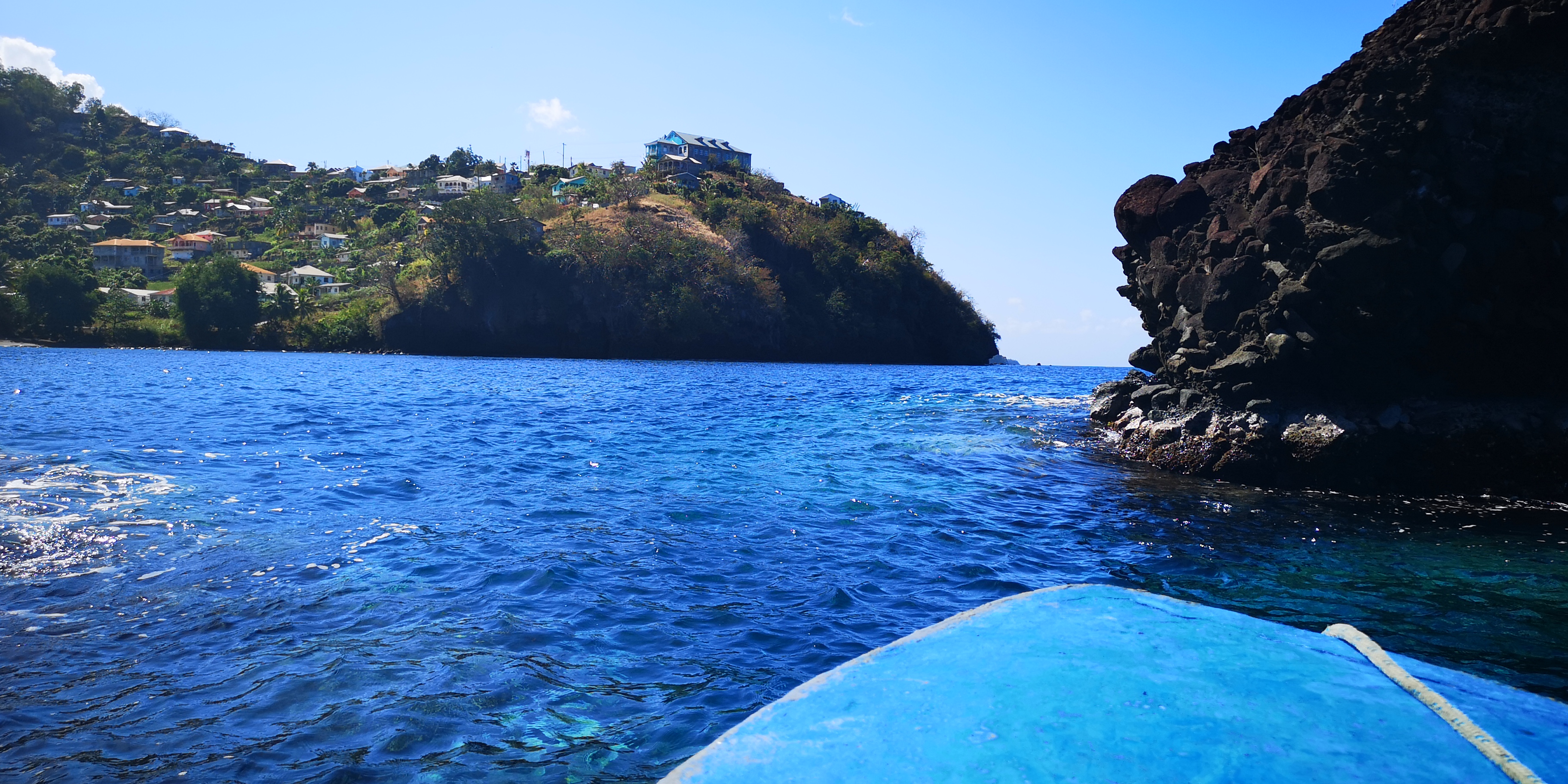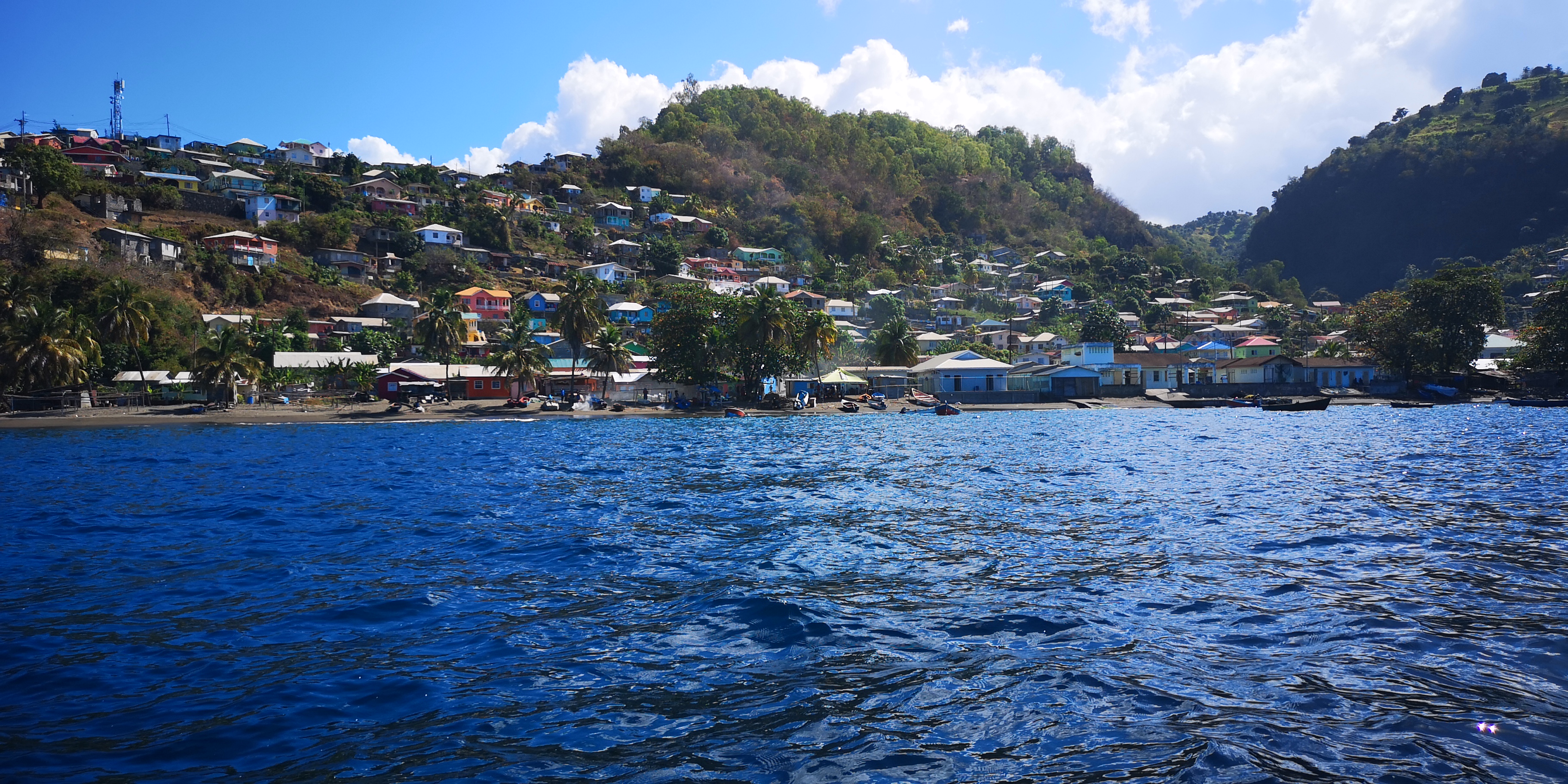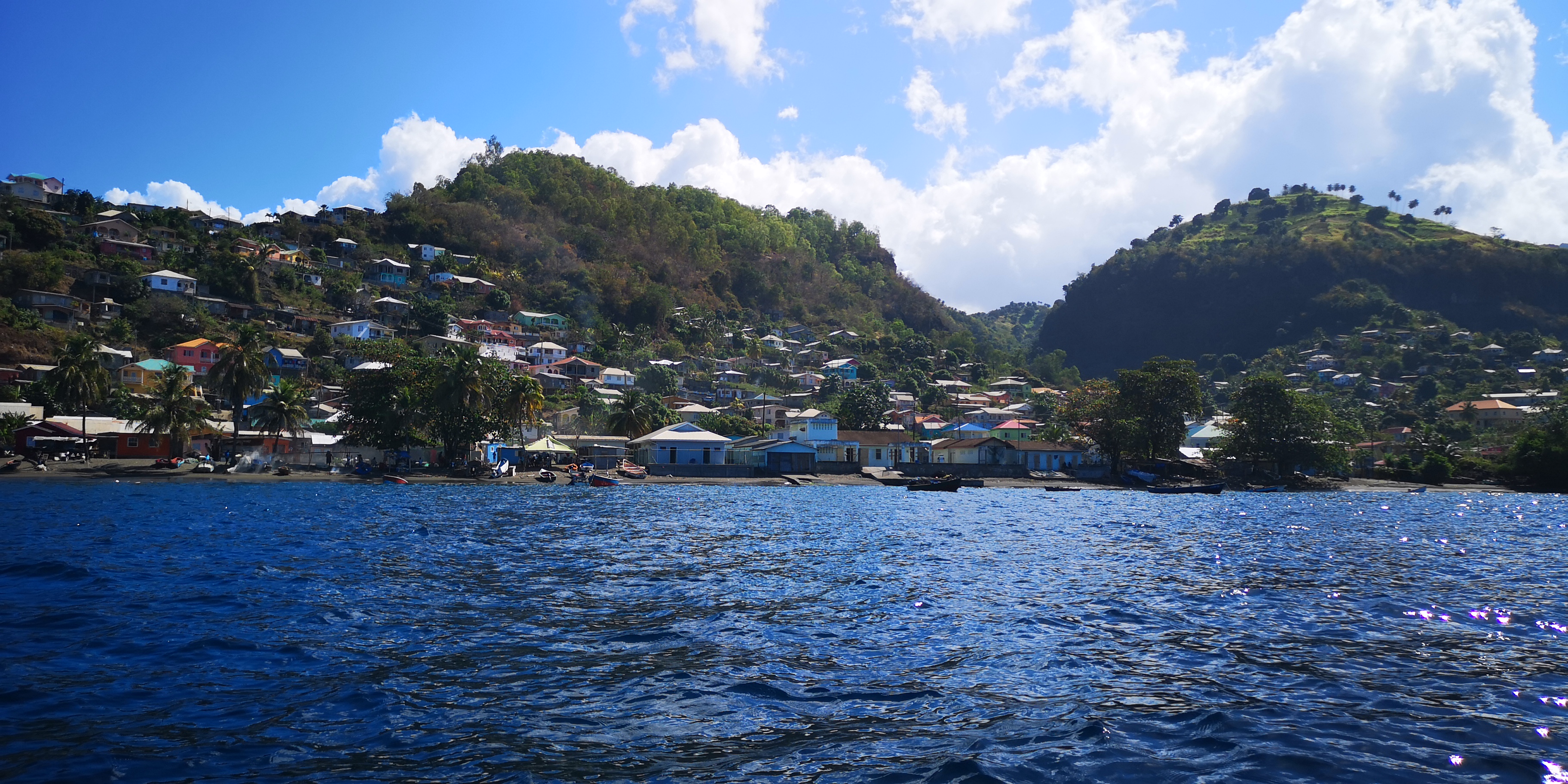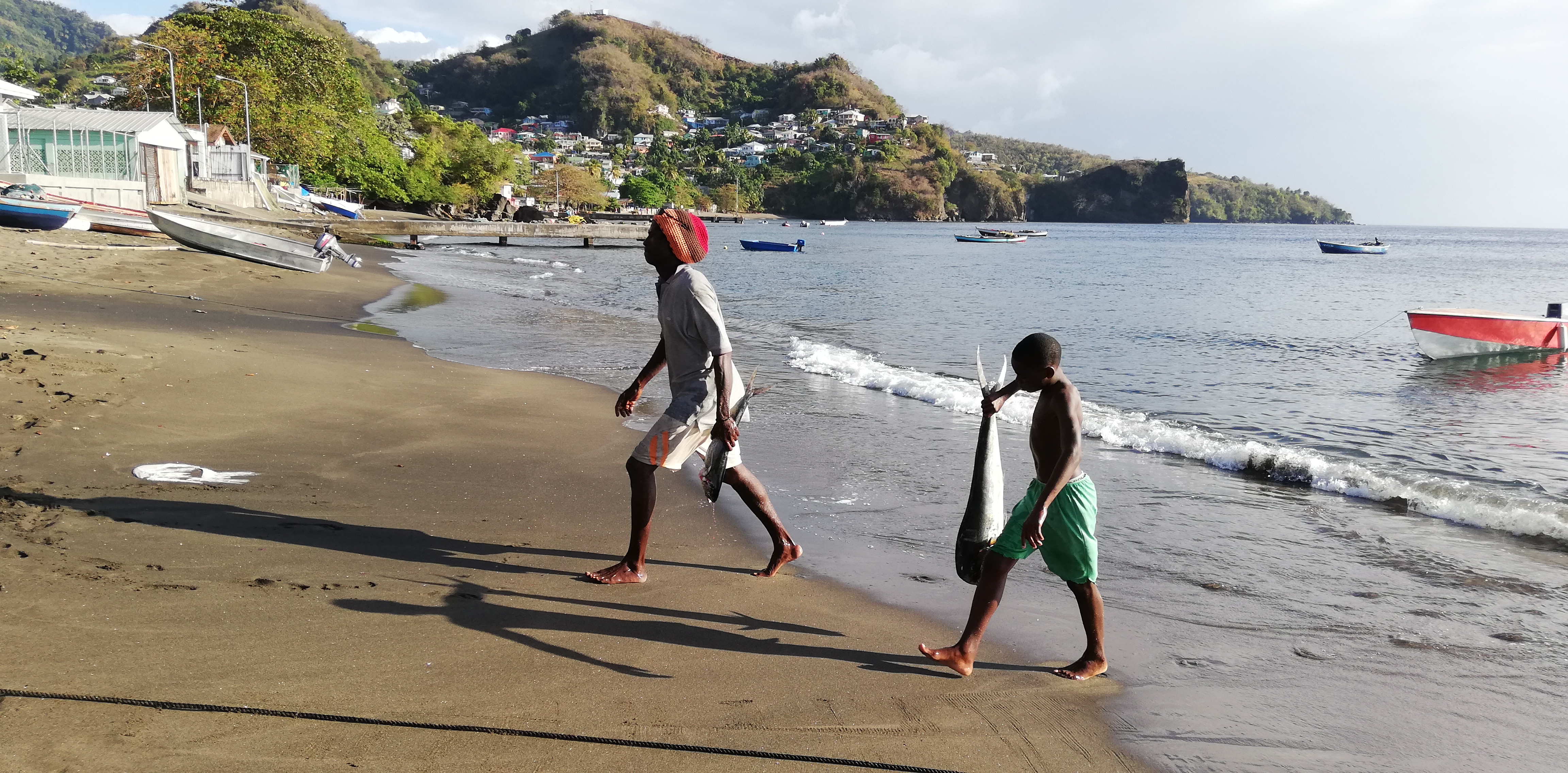 Zurück sollte es eigentlich mit dem Taxi bis zur Cumberland Bay gehen, aber Atnil erwartet uns bereits in Barrouallie. Und so machen wir den Rest der Strecke wieder mit dem Boot. Nachher sehe ich mir die Karte an und verstehe es: Mit dem Auto wäre es ein ordentlicher Umweg durch die Berge, während wir mit dem Boot in ein paar Minuten da sind. Schade an sich, wir hätten gerne noch ein wenig vom Land gesehen, aber es war auch so unheimlich nett, interessant und spannend: