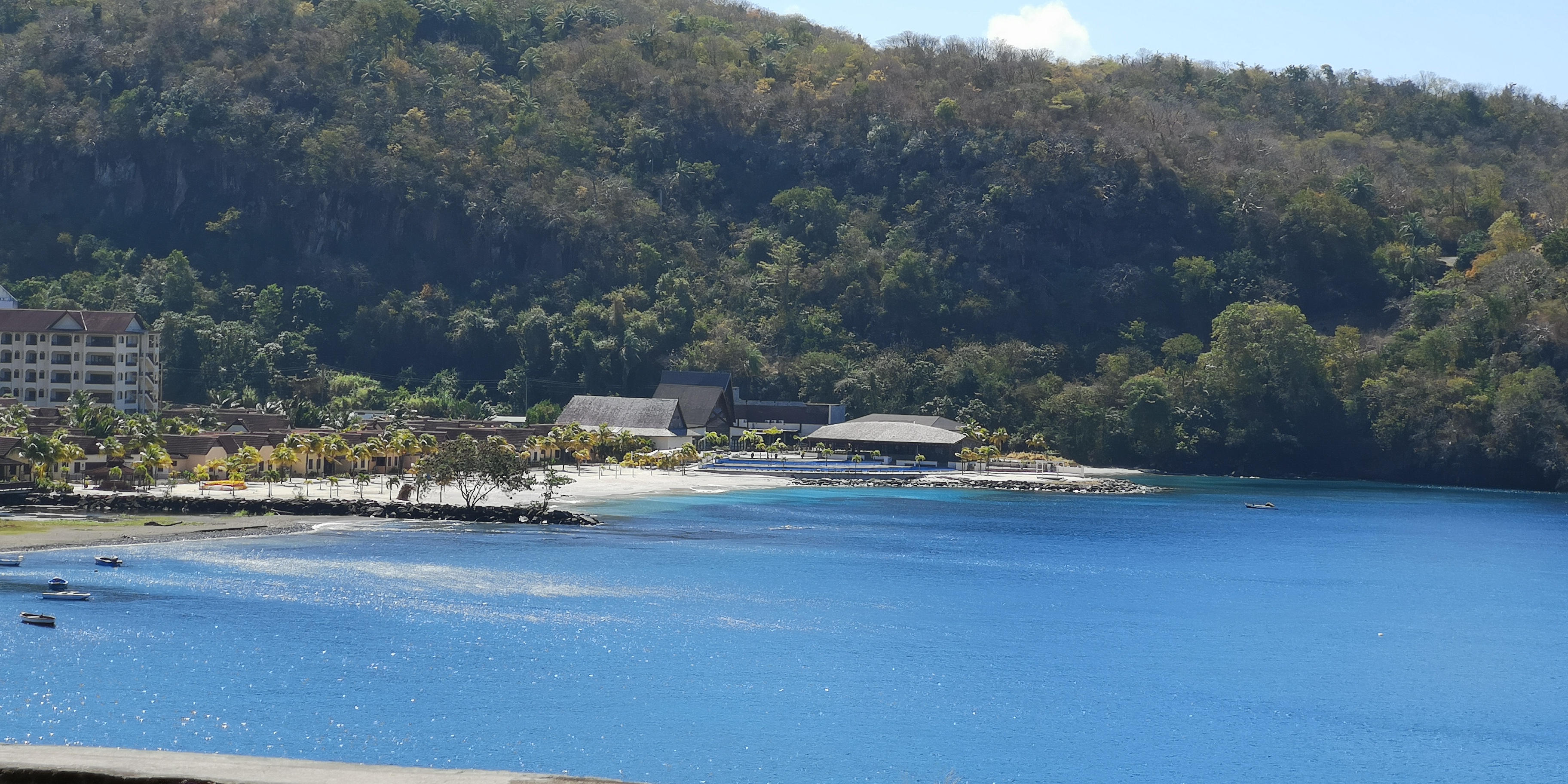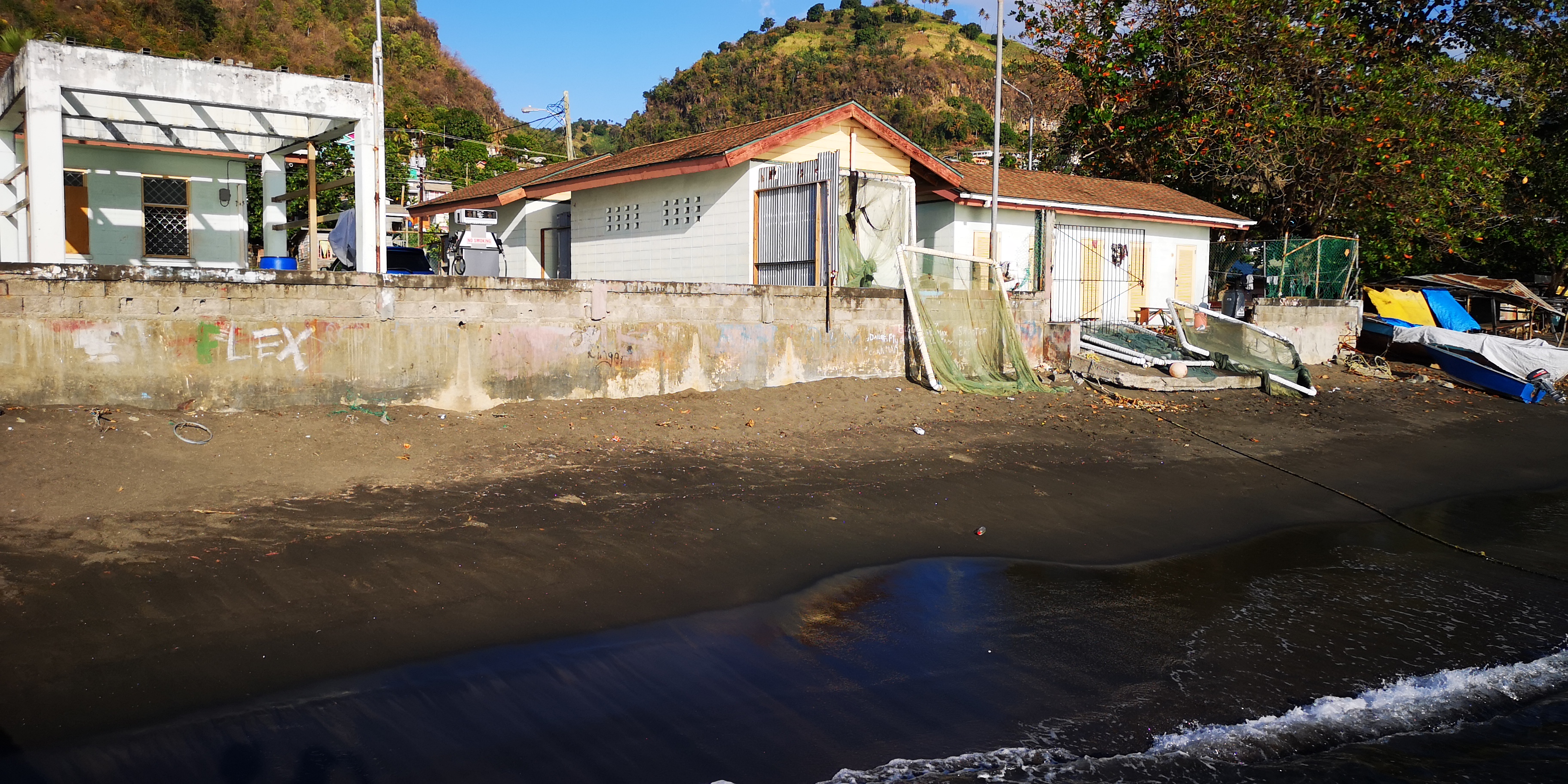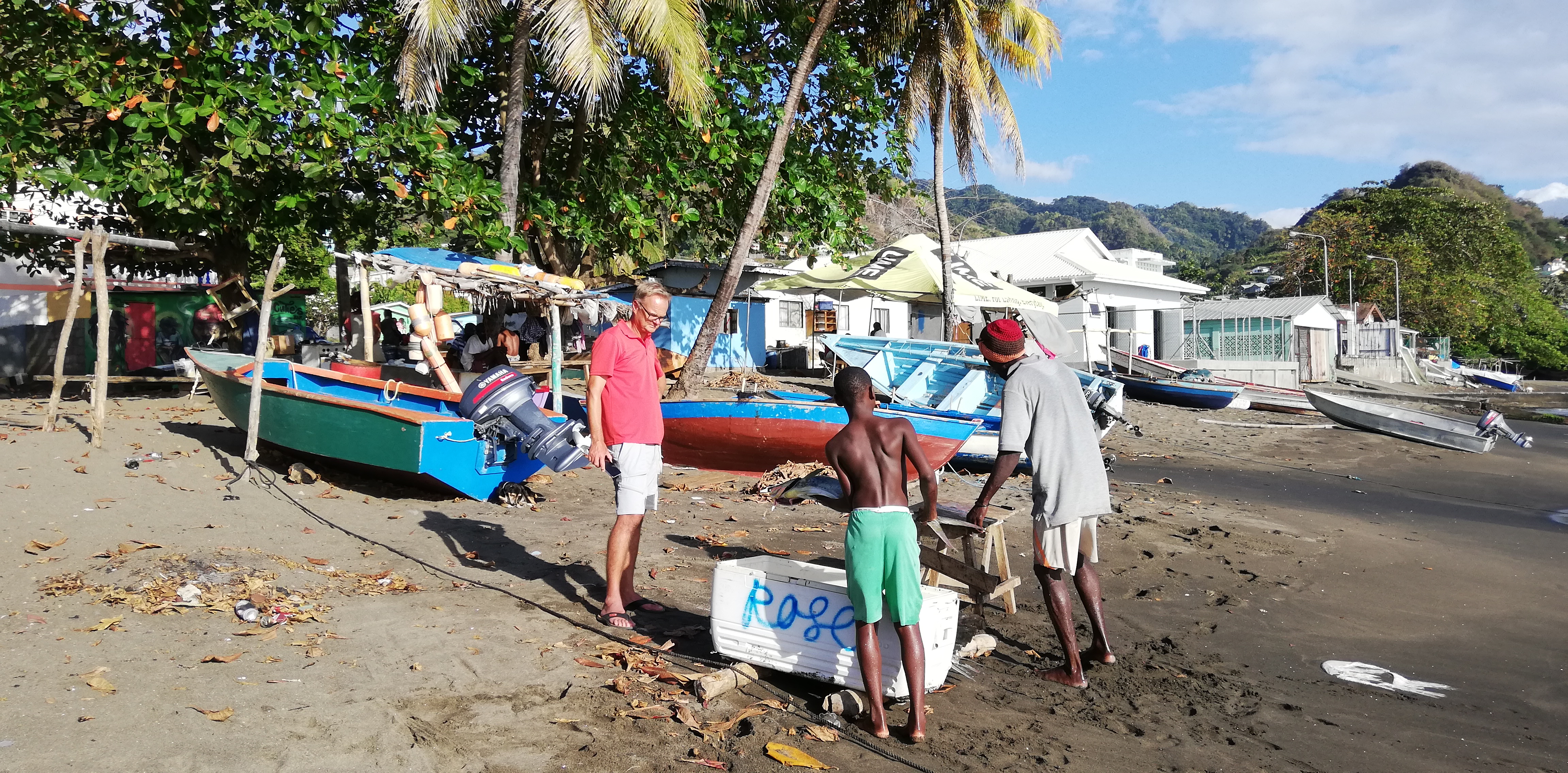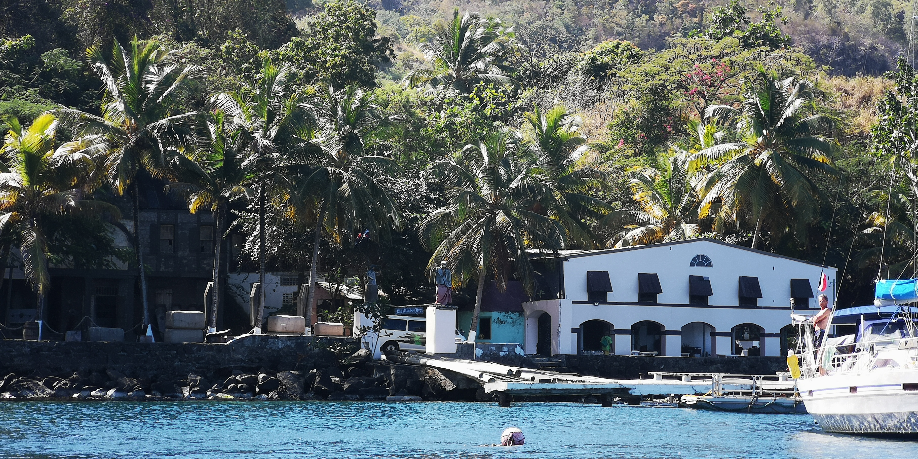 Wir bitten Atneal, uns ein Taxi zu organisieren, mit dem wir ein wenig der Küste entlang bis in die Hauptstadt Kingstown fahren können. Atneal holt uns am Vormittag ab, wir fahren erstmal mit seinem Holzboot 2 Buchten weiter – vorbei an der Walillabou Bay nach Barrouallie: