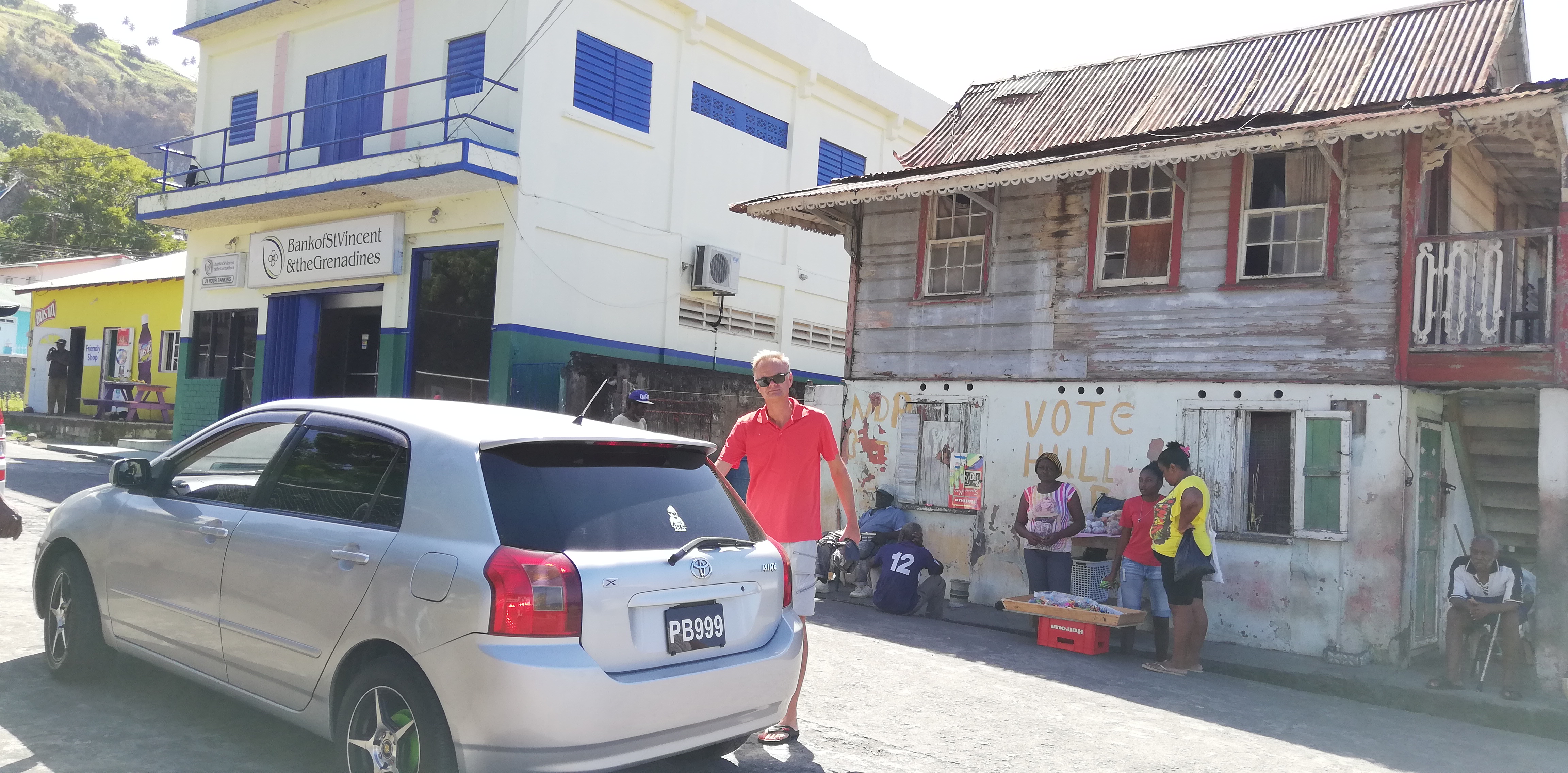 Meist fährt er Motorradeskorte für den Ministerpräsidenten und nebenbei verdient er sich ein Zubrot. Wir haben also quasi noch integrierten Polizeischutz – mehr Vorsicht kann man kaum walten lassen. 200 EC$ haben wir zuvor mit Atneal für die Fahrt hin- und zurück vereinbart. Obwohl wir uns sehr lange in Kingstown aufhalten und Salomon an diversen Stellen warten muss, ist das kein Problem. Nachdem was wir später erfahren, liegt der Preis noch unter den üblichen Taxitarifen.