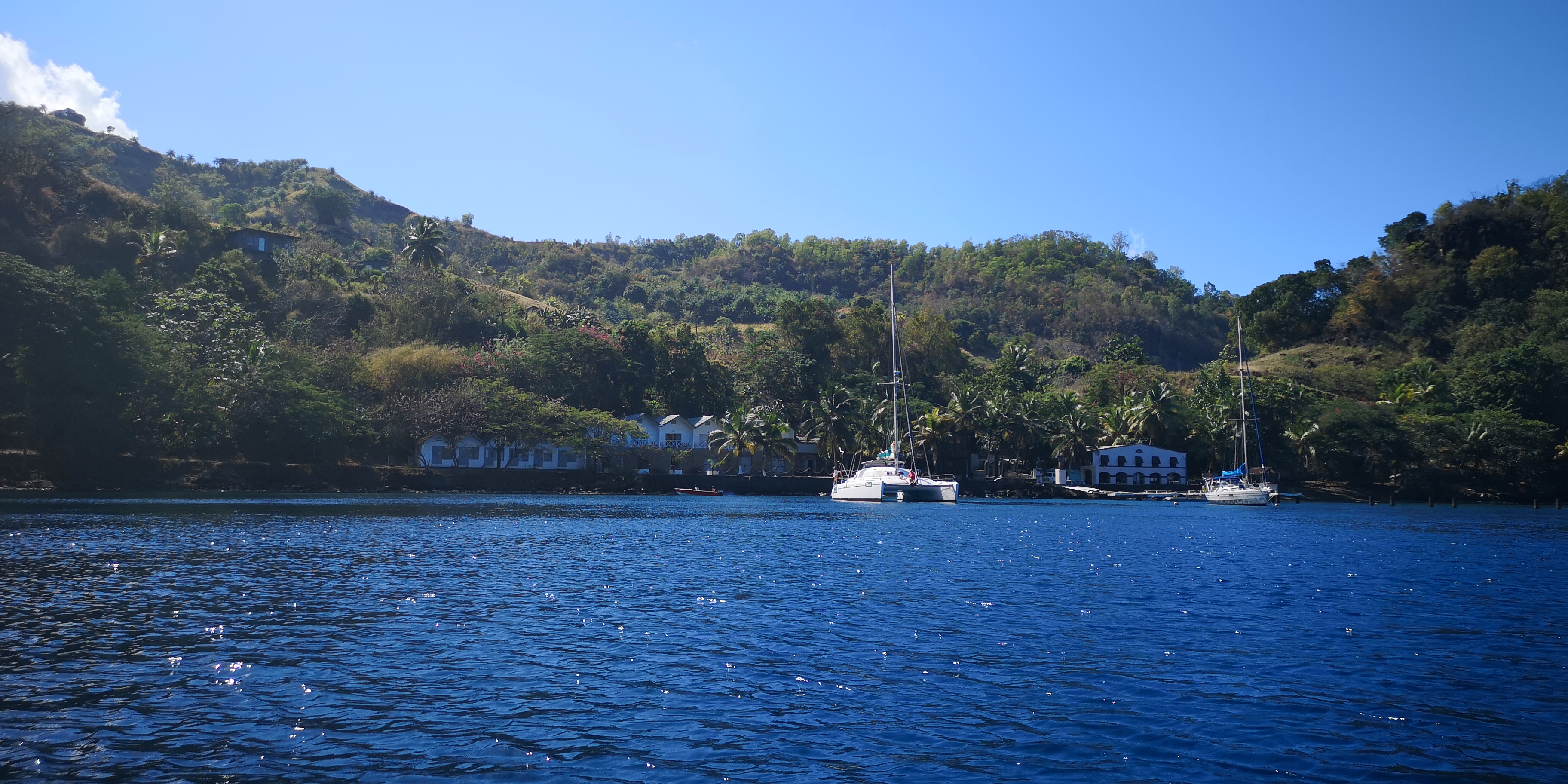 Da wir zeitig aus St Lucia aufgebrochen sind, liegen wir schon am frühen Nachmittag in der Cumberland Bay. Die Bucht füllt sich im Verlauf des Nachmittags – viele Segler scheinen sie als Stopp zu nutzen auf dem Weg in den Norden nach St Lucia.
