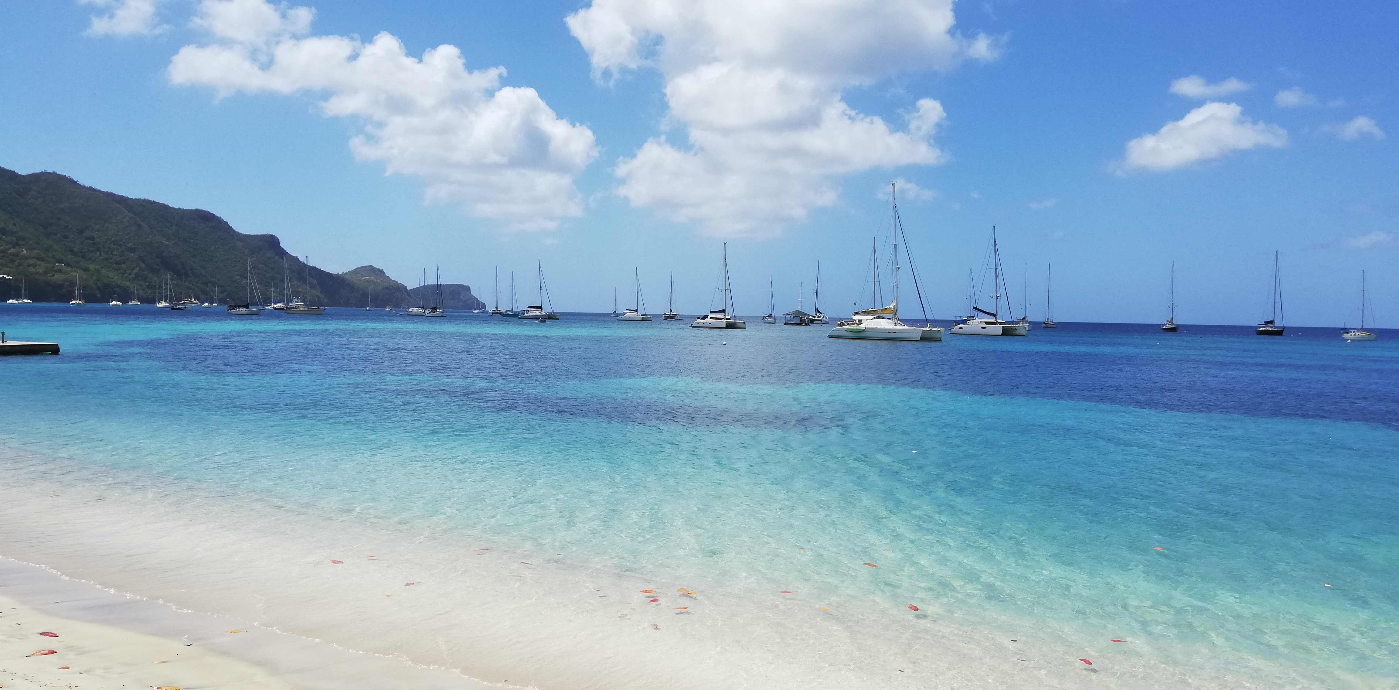 Ansonsten genießen wir die viele Infrastruktur der Admirality Bay, die sehr auf Yachties eingestellt ist. Dinghystege, viele Bars und Restaurants mit Livemusik, Marineservice und Ausstatter (Achtung bei der Preisgestaltung!). Um 8 Uhr morgens gibt es auf Kanal 68 vom Restaurant Figtree eine Funkrunde mit Neuigkeiten, Tipps, Angeboten, Wetter – nett ist das. Schön ist auch, dass man vom Ort Port Elizabeth am Meer entlang bis zu den Stränden der Bucht laufen kann. Und die sind traumhaft – türkises Wasser wellt an weiße Strände.