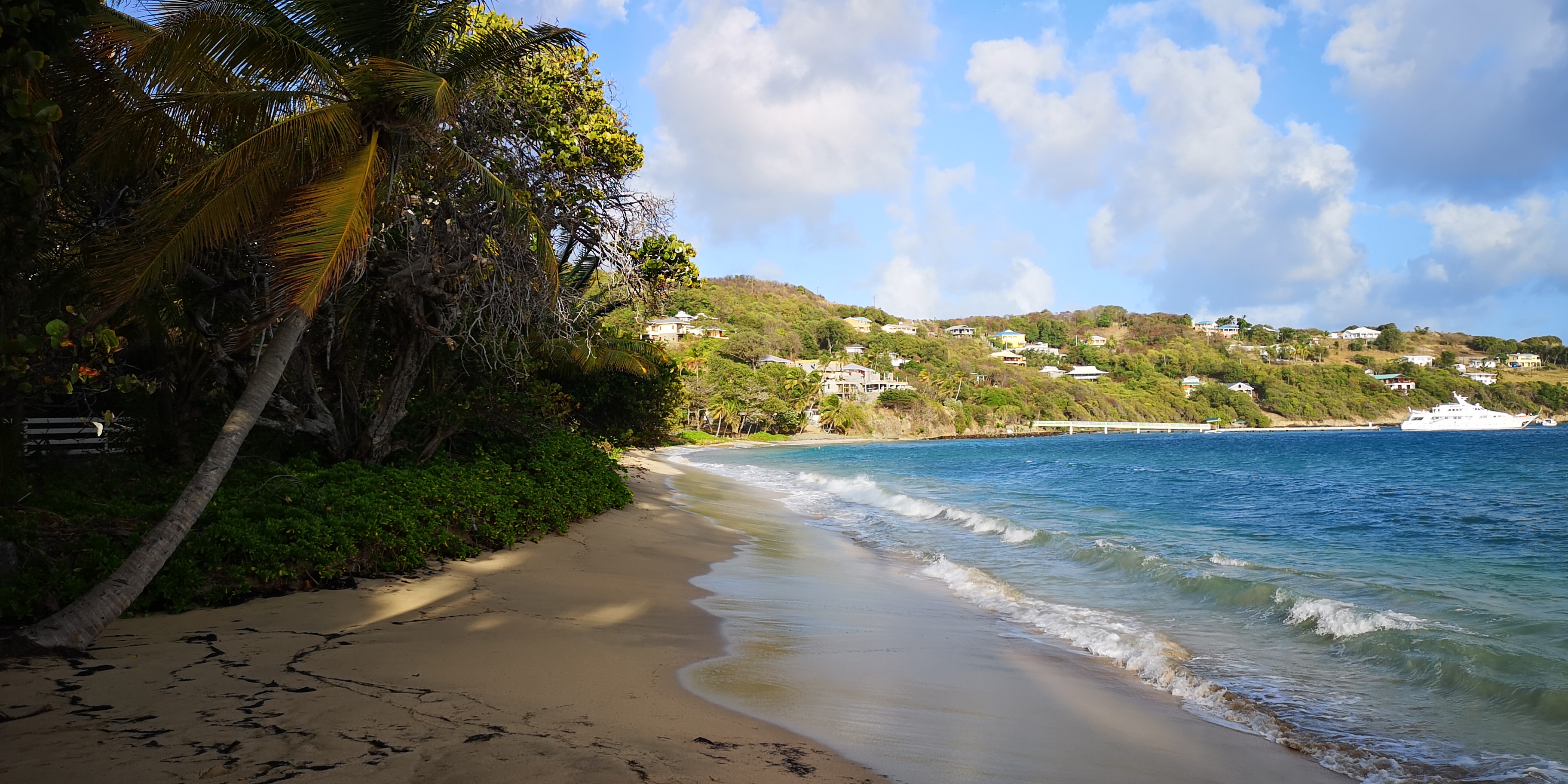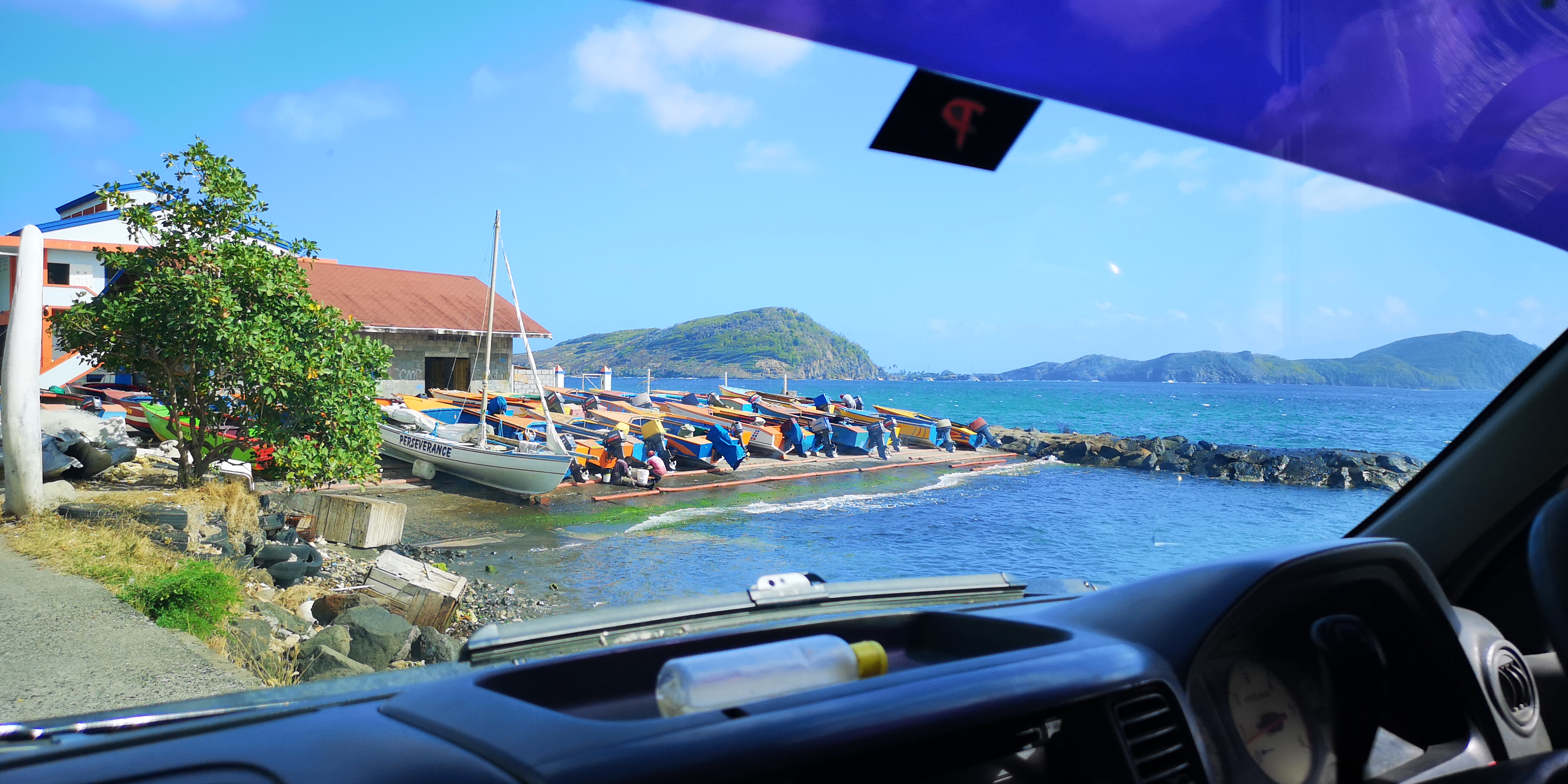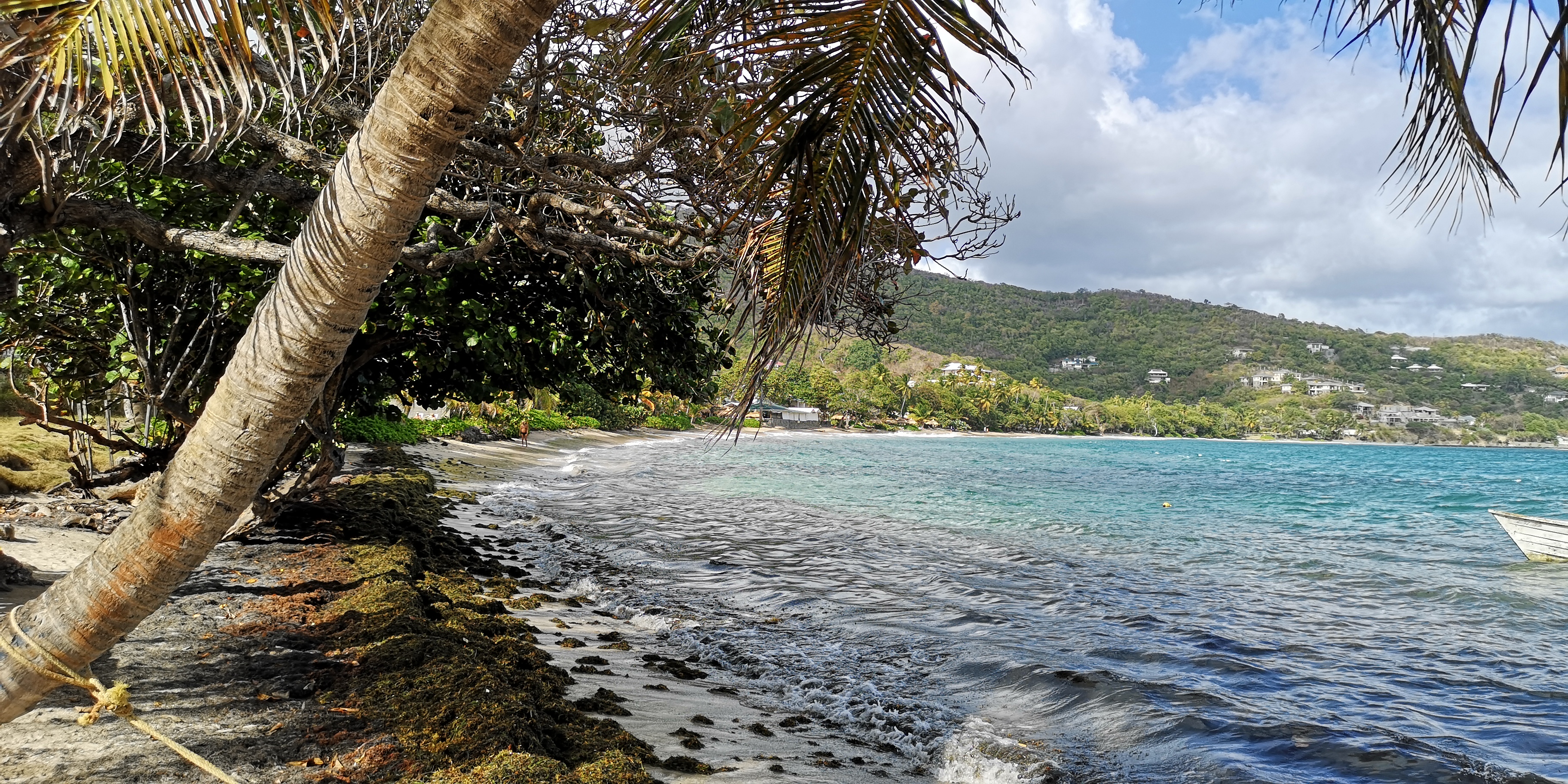 Wir steigen ein und fahren bis zur Friendship Bay. Blicken auf Petit Nevis, die Nachbarinsel, und einige der zahlreichen Cays. Ganz anders als in der Admirality Bay ist es hier. Windzerzaust.