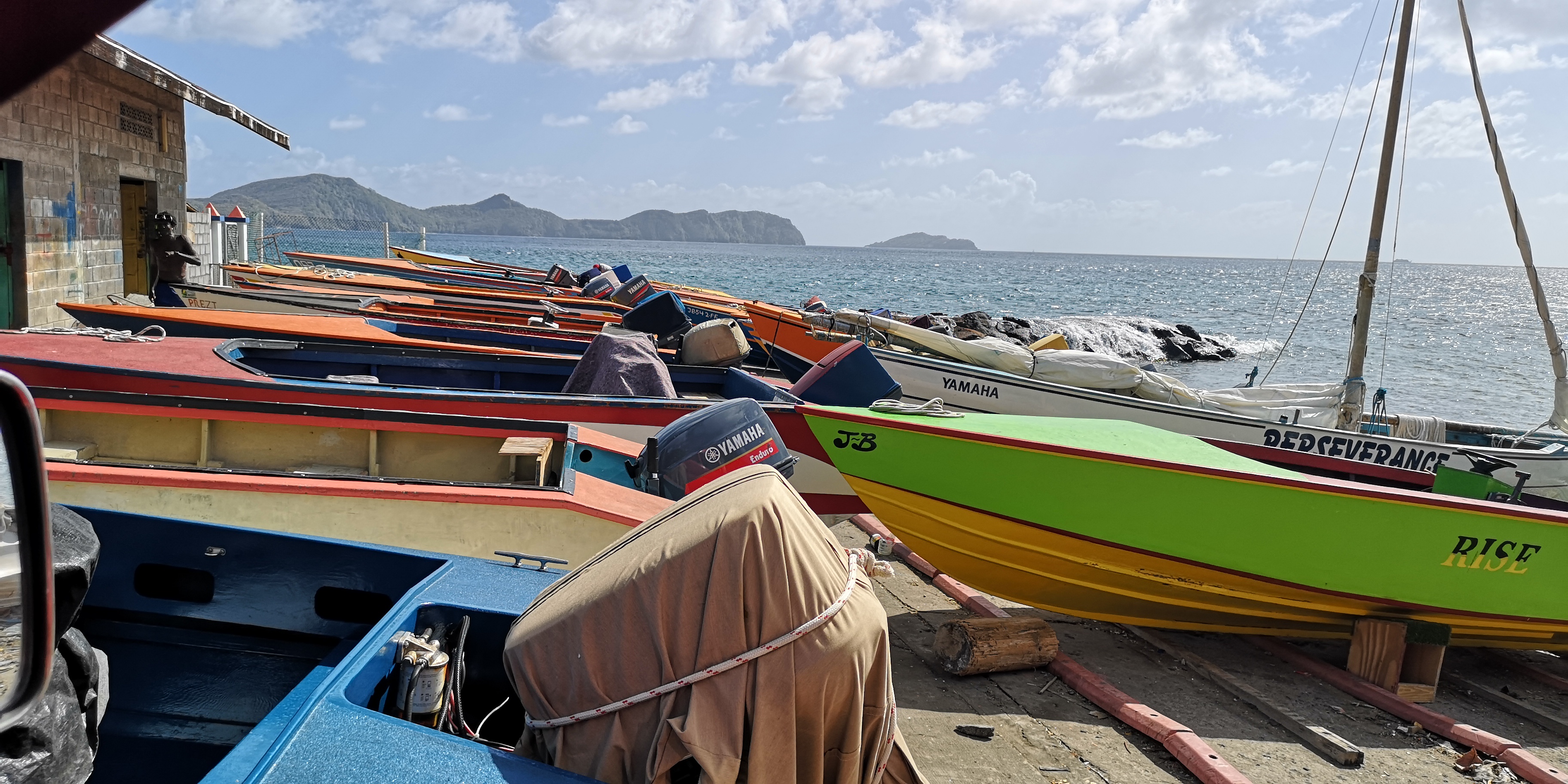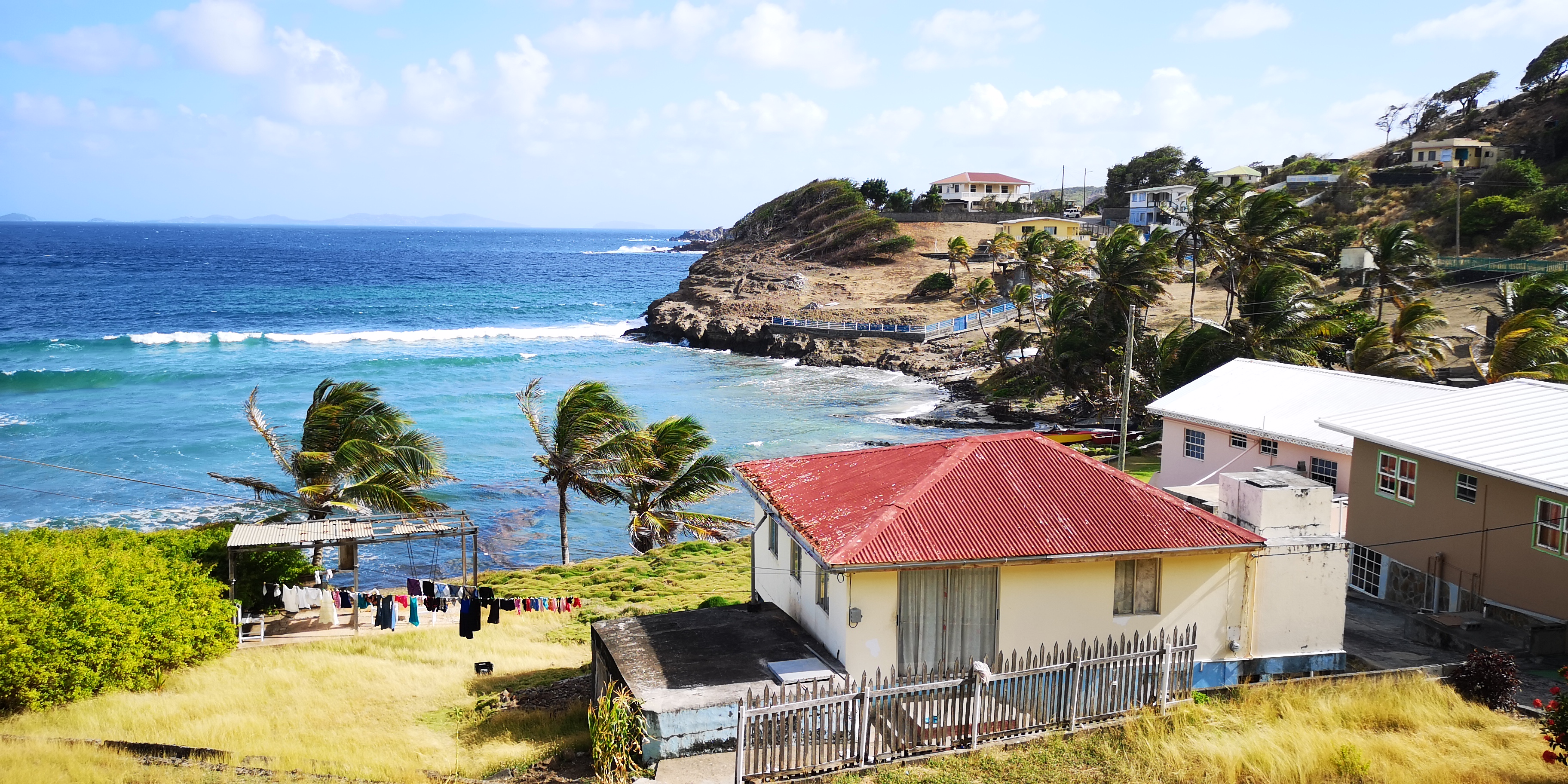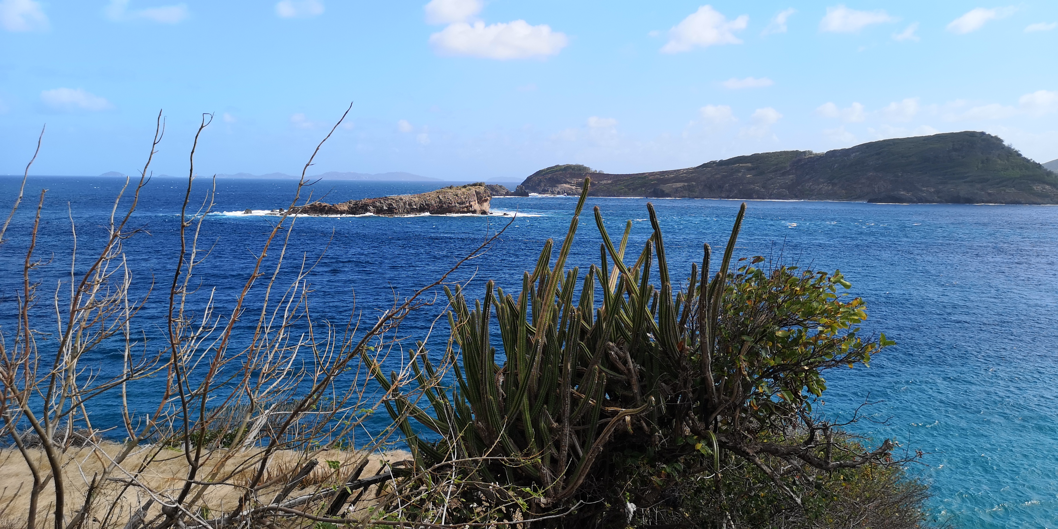 Wir steigen ein und fahren bis zur Friendship Bay. Blicken auf Petit Nevis, die Nachbarinsel, und einige der zahlreichen Cays. Ganz anders als in der Admirality Bay ist es hier. Windzerzaust.
