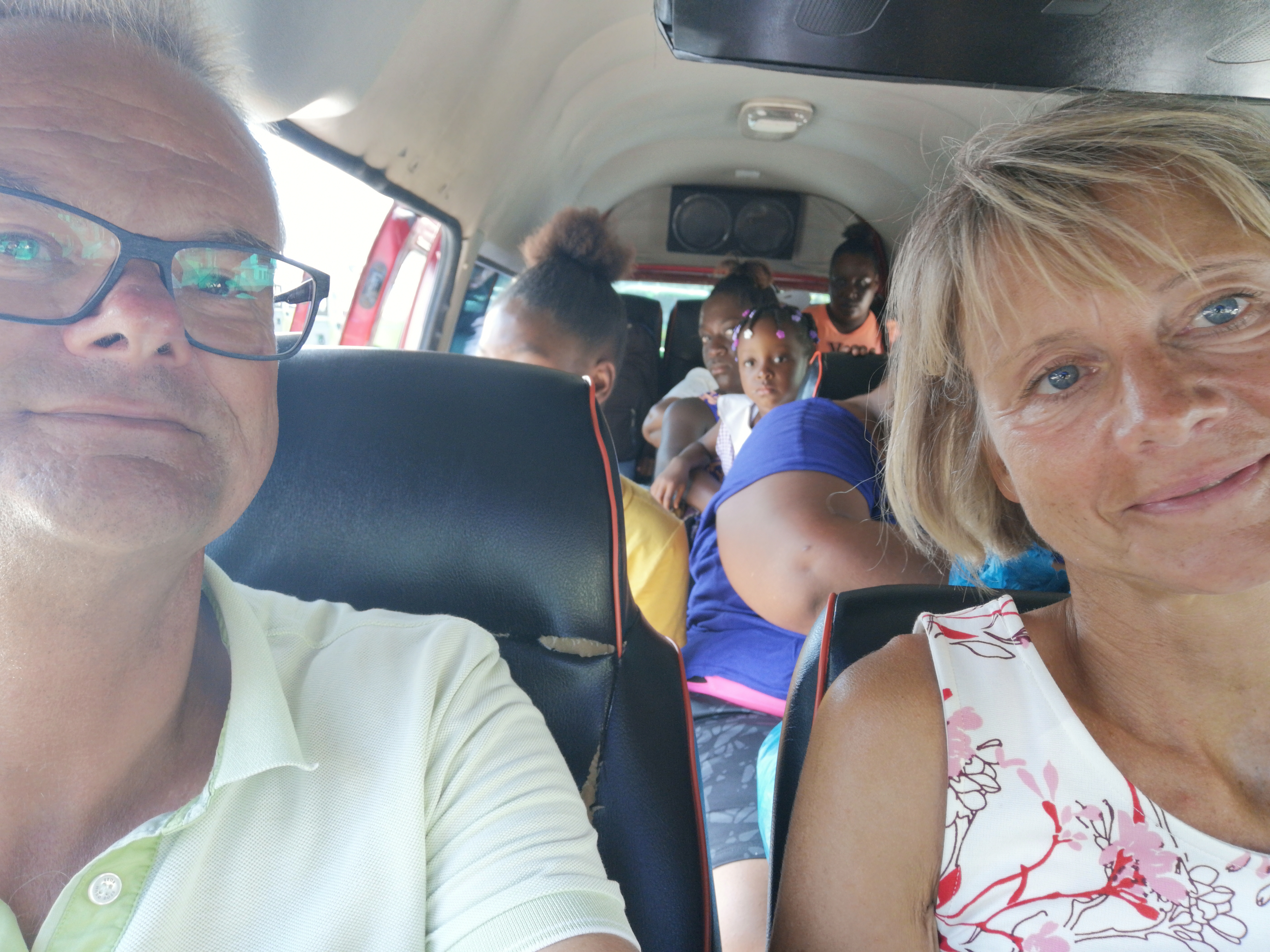 Im „Dollarbus“ – so heissen hier die Sammeltaxis. Wir bezahlen einen Bruchteil des Taxipreises