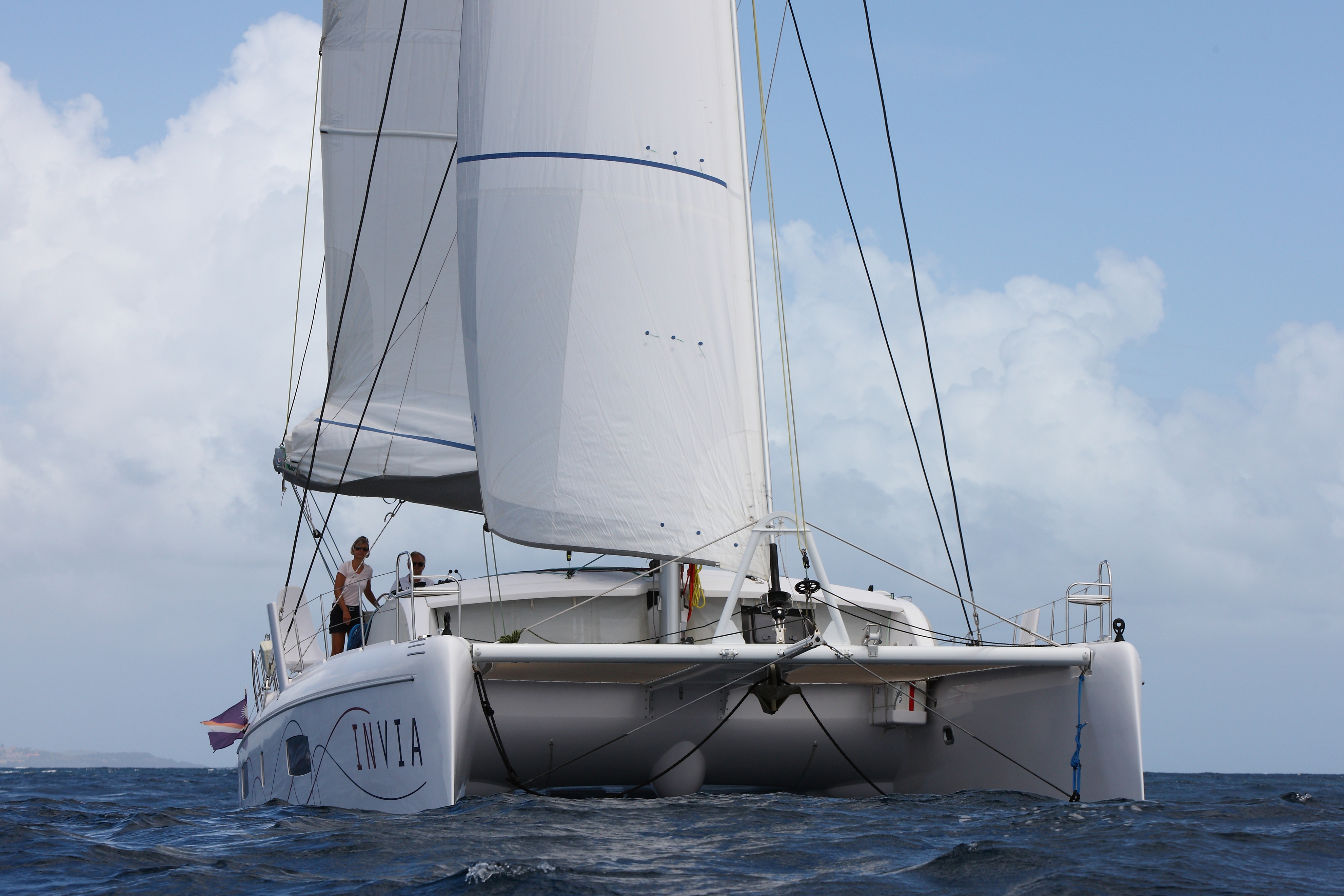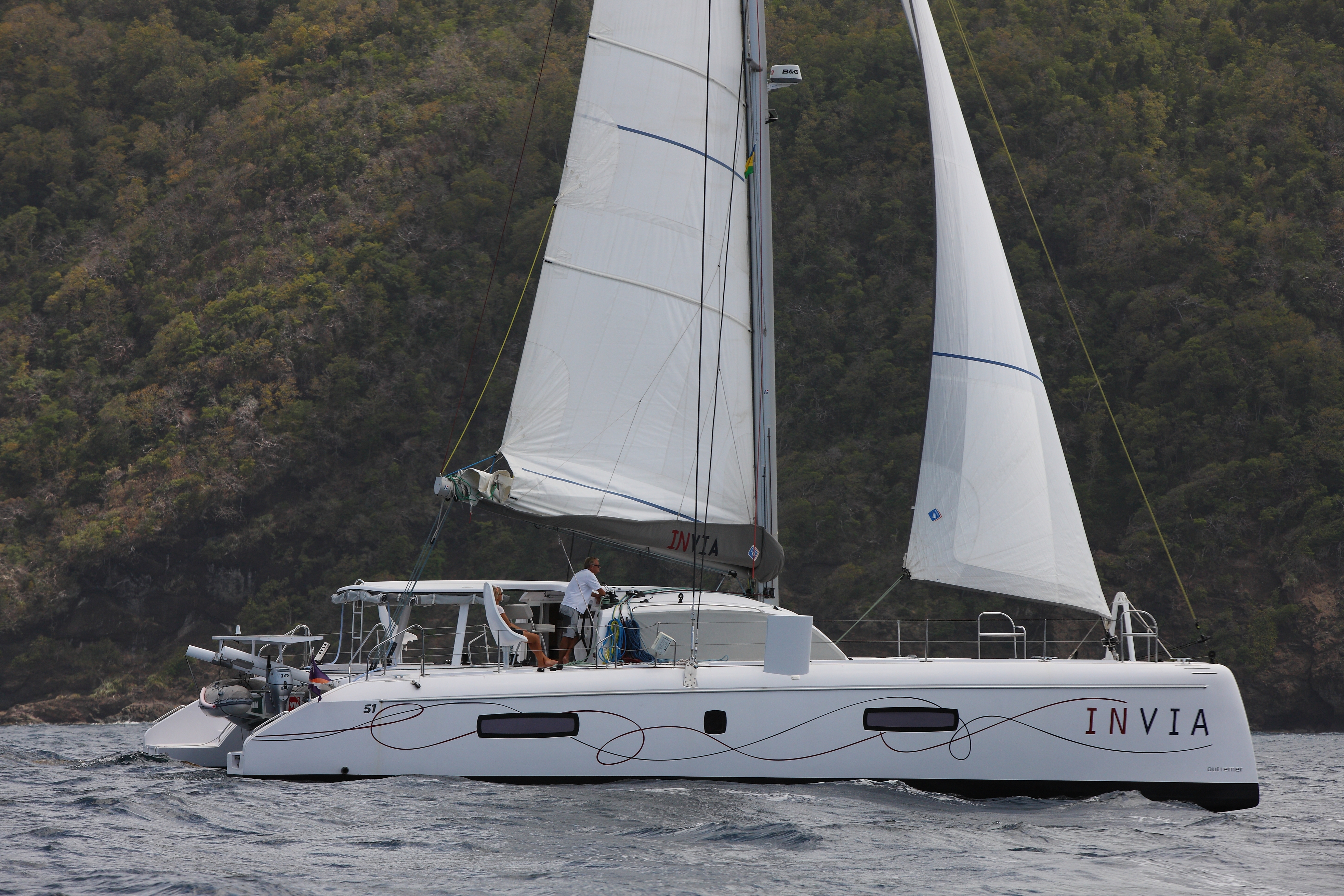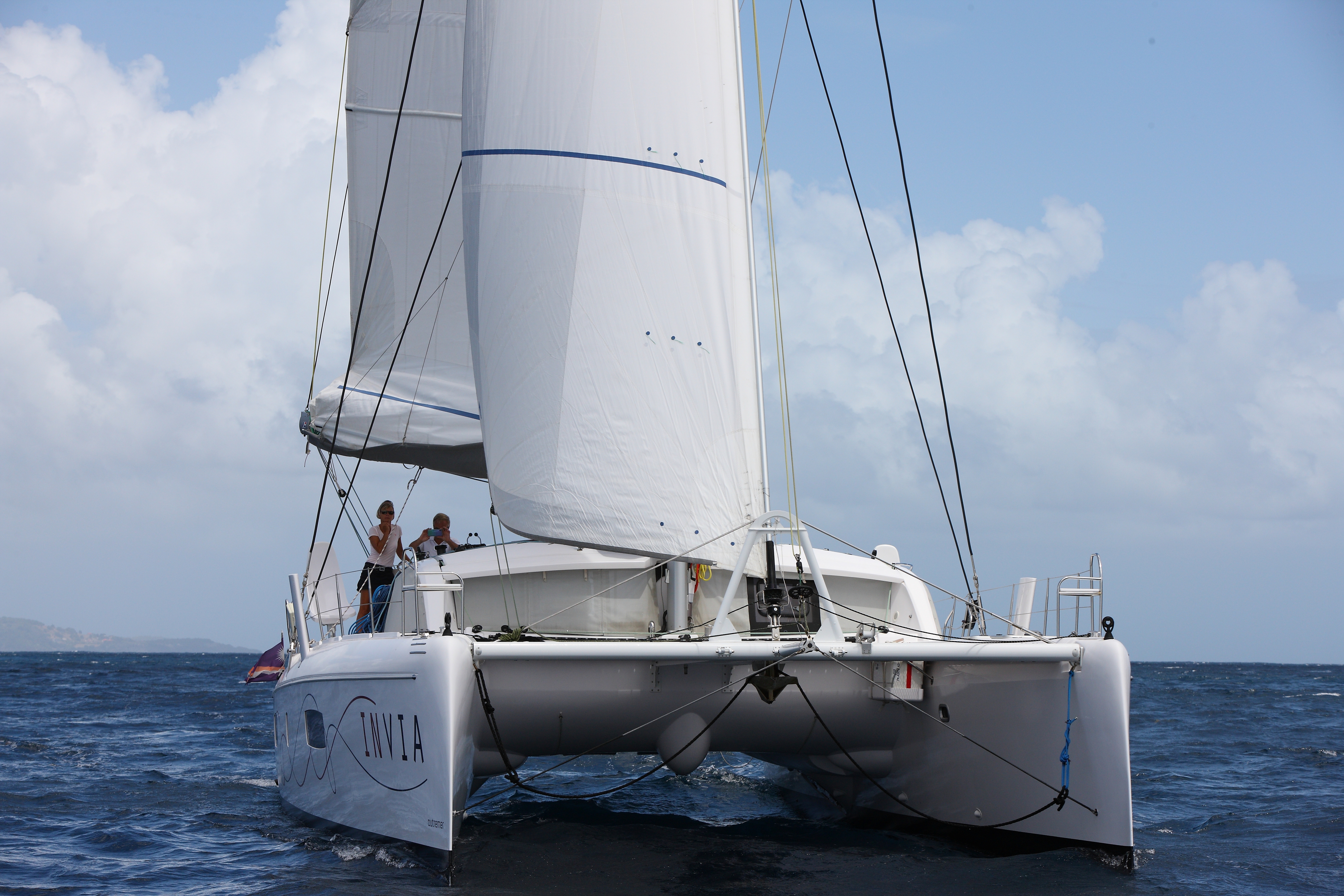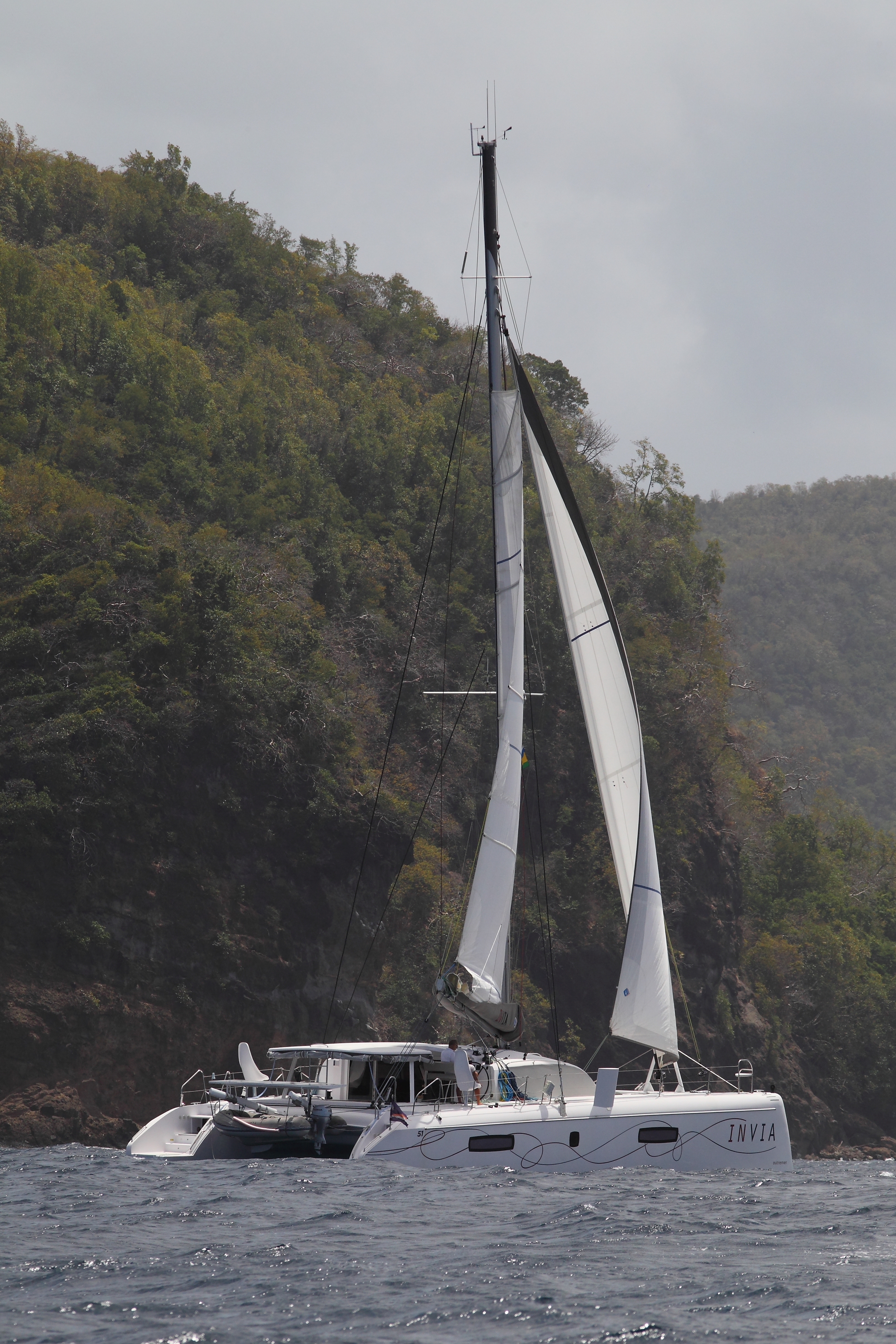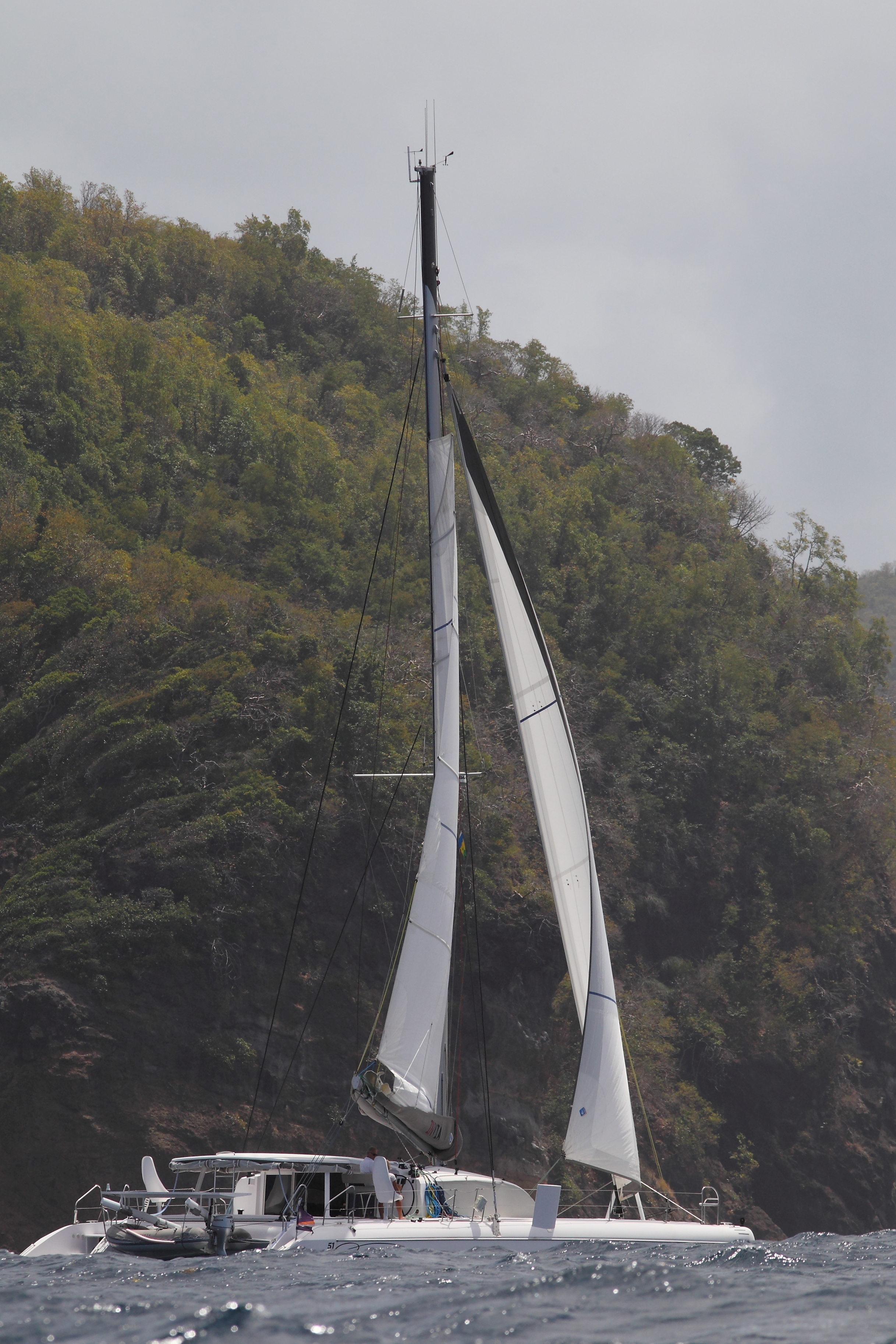 Erst ganz zum Schluss wird mir klar: Das ist ein Fotograf, der Bilder von ankommenden Yachten macht, in der Hoffnung später einen Käufer dafür zu finden. Genau so ist es auch: Tags drauf kommt Kenmore Henville, so heißt der Fotograf, zu uns. Gibt mir einen Umschlag mit einem schönen Foto der INVIA unter Segeln und einem USB Stick darin. Die Fotos auf dem Stick sind toll – ich investiere die 170 USD und kaufe sie ihm alle ab. Hätten wir nur vorher gewusst, was da abgeht! Dann hätten wir auch freundlichere Gesichter gezeigt, uns ein wenig in Pose geworfen, um noch bessere Bilder zu bekommen.