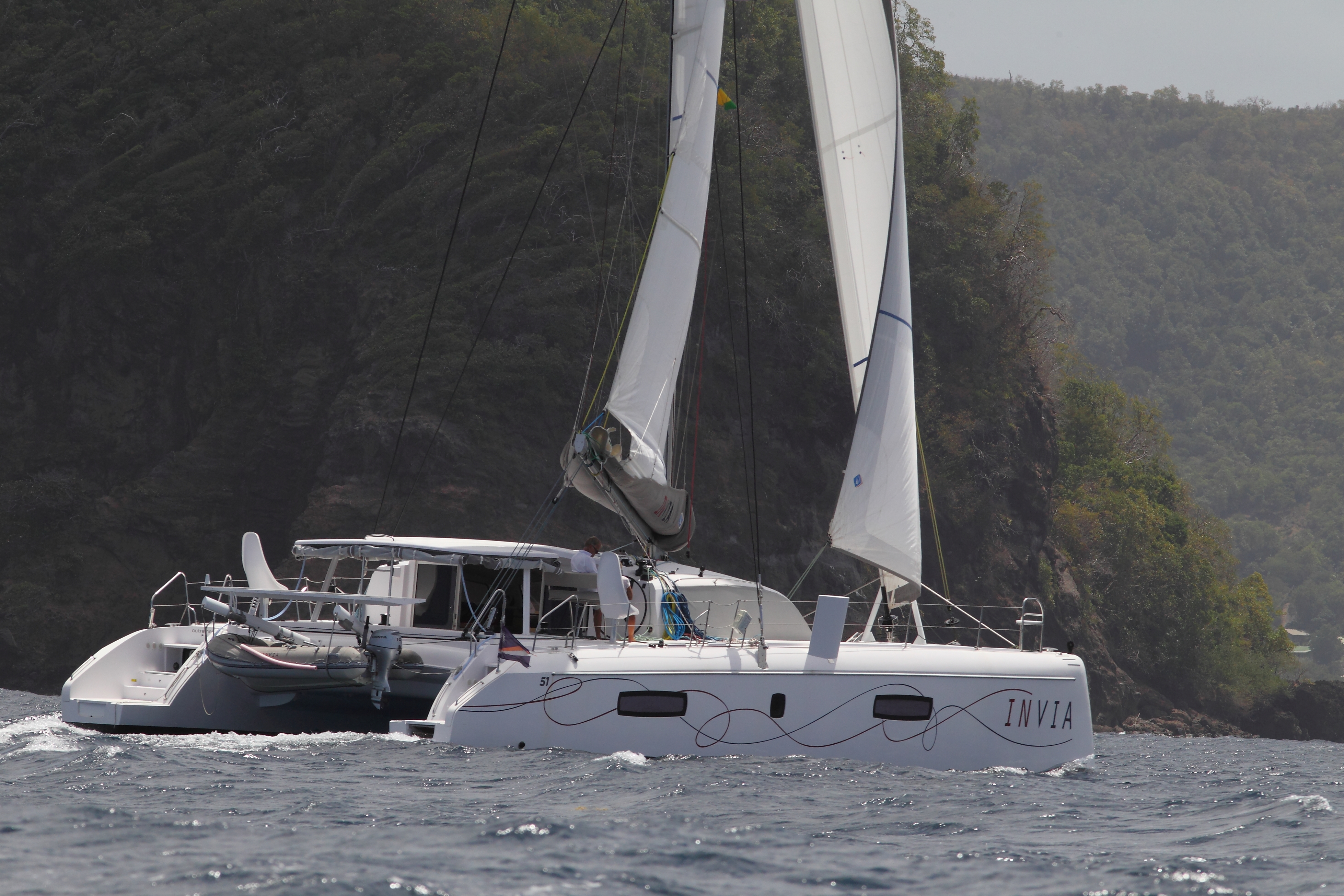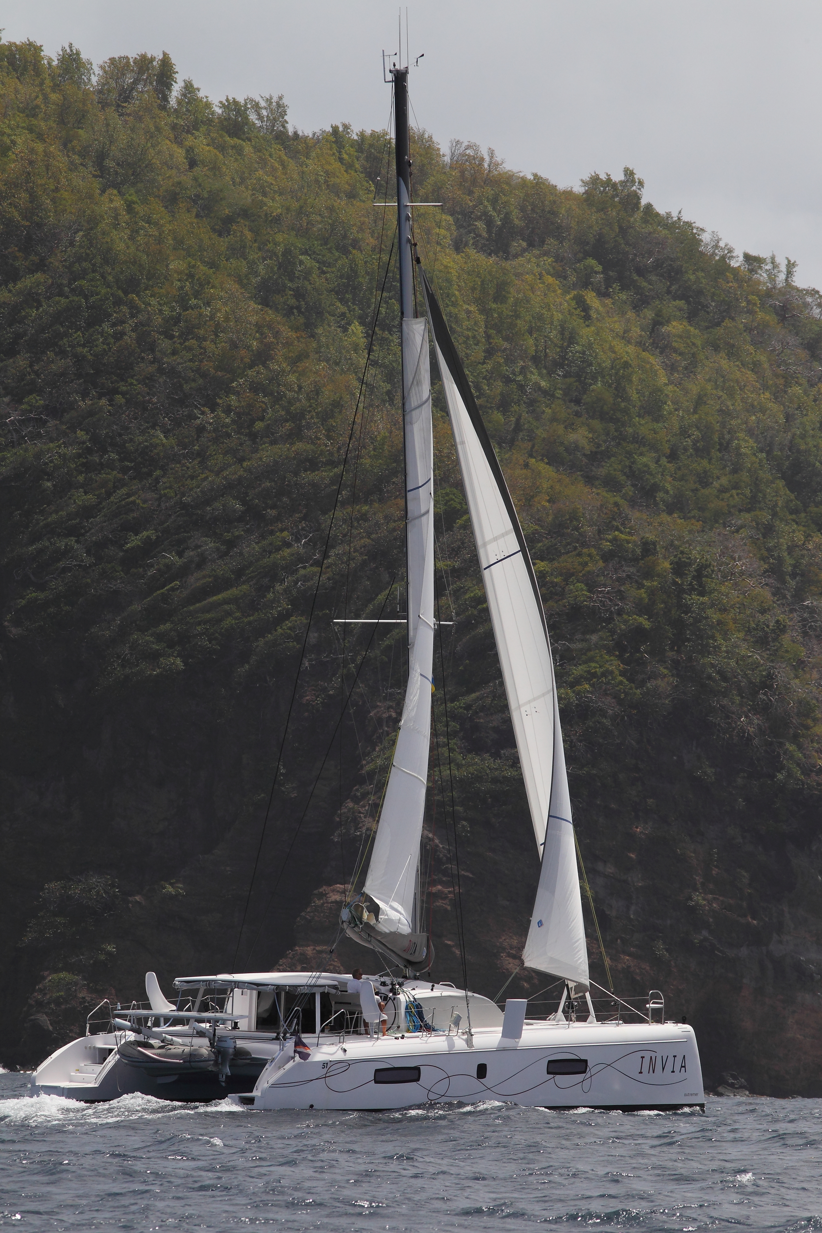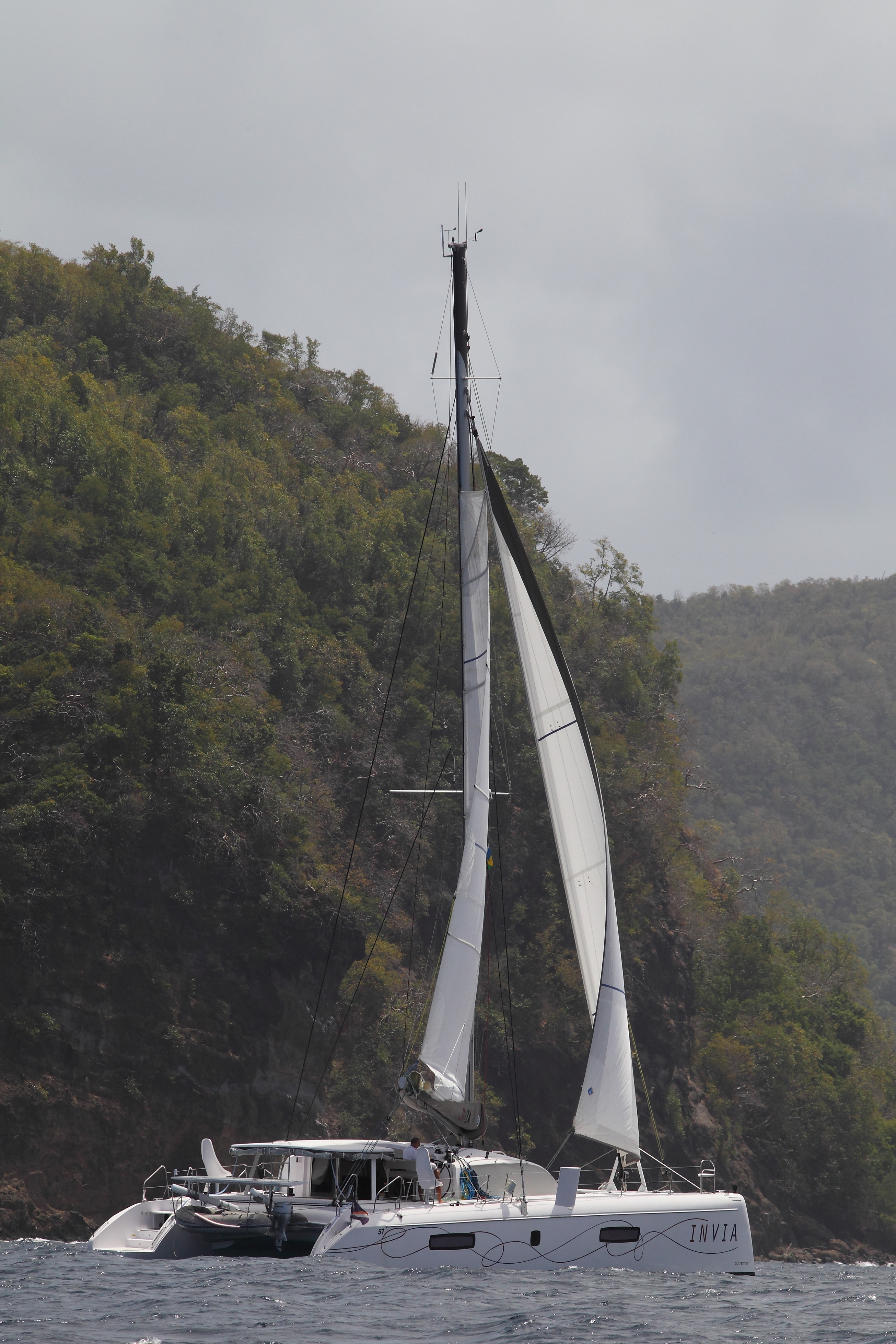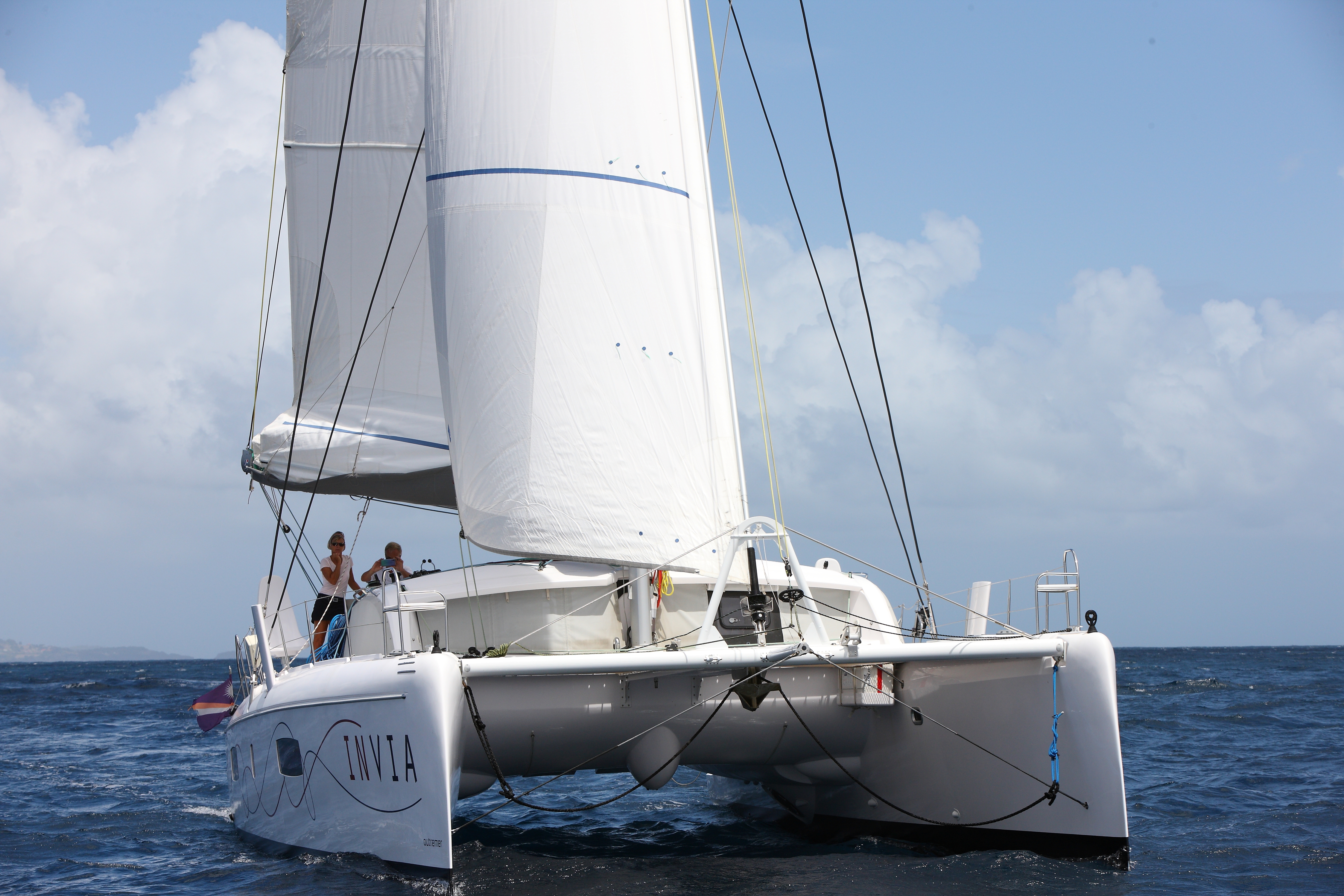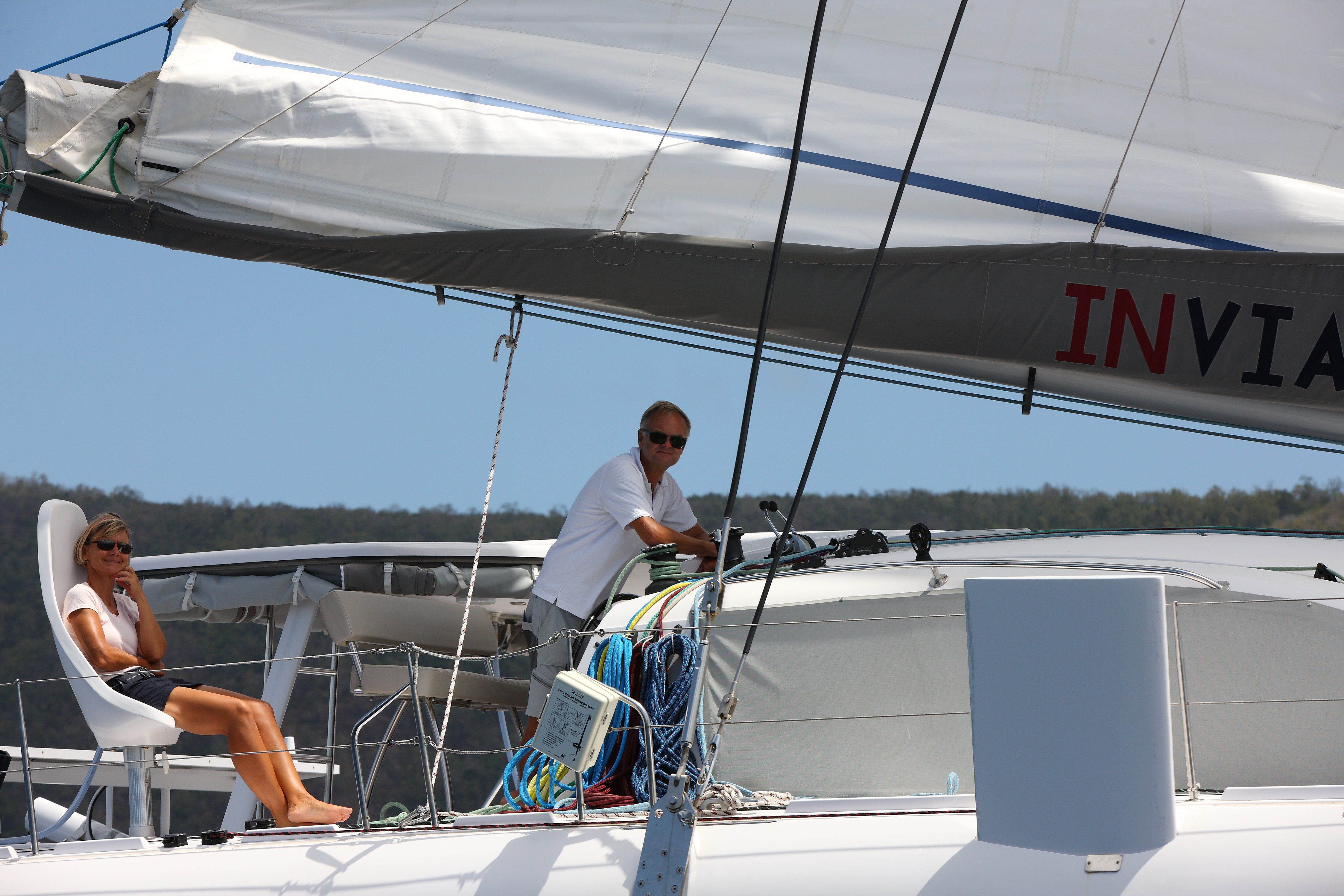 Erst ganz zum Schluss wird mir klar: Das ist ein Fotograf, der Bilder von ankommenden Yachten macht, in der Hoffnung später einen Käufer dafür zu finden. Genau so ist es auch: Tags drauf kommt Kenmore Henville, so heißt der Fotograf, zu uns. Gibt mir einen Umschlag mit einem schönen Foto der INVIA unter Segeln und einem USB Stick darin. Die Fotos auf dem Stick sind toll – ich investiere die 170 USD und kaufe sie ihm alle ab. Hätten wir nur vorher gewusst, was da abgeht! Dann hätten wir auch freundlichere Gesichter gezeigt, uns ein wenig in Pose geworfen, um noch bessere Bilder zu bekommen.