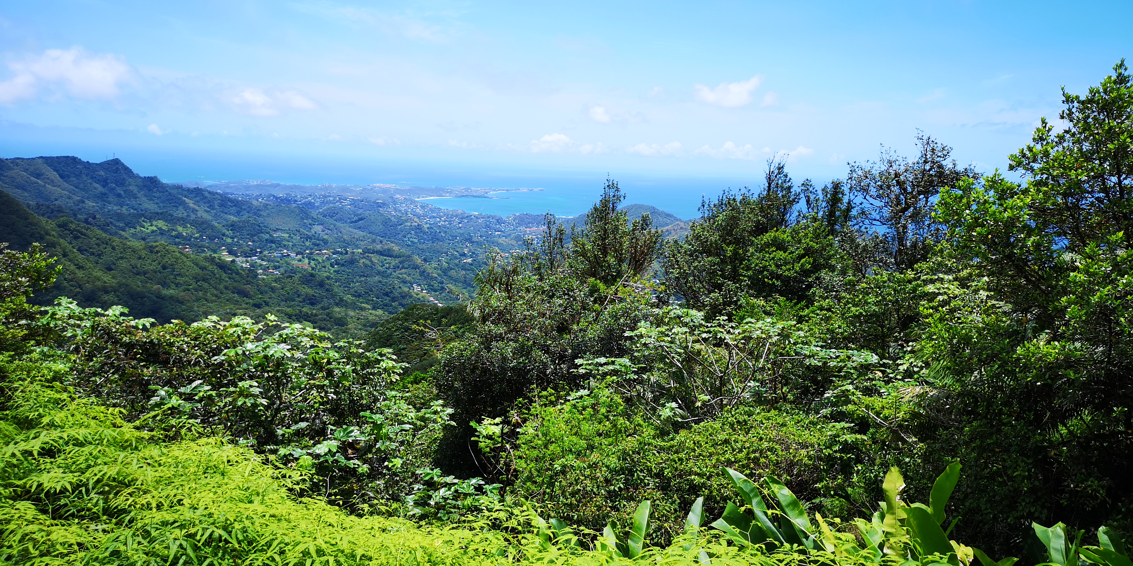 Mit dem Minibus erreichen wir auch den Grand Etang, den größten Süßwassersee auf Grenada. Der Zutritt kostet und führt zunächst zu touristischer Infrastruktur, die man sich an Tagen mit Cruiseship mit vielen Menschen teilt. Wer wie wir direkt zum See geht, lässt die Massen aber schnell hinter sich. Auf unserer Wanderung vom See auf den Mount Quaqua begegnet uns eine Wanderin. Die anschließende Wanderroute zu den Concord Falls haben wir für uns allein.