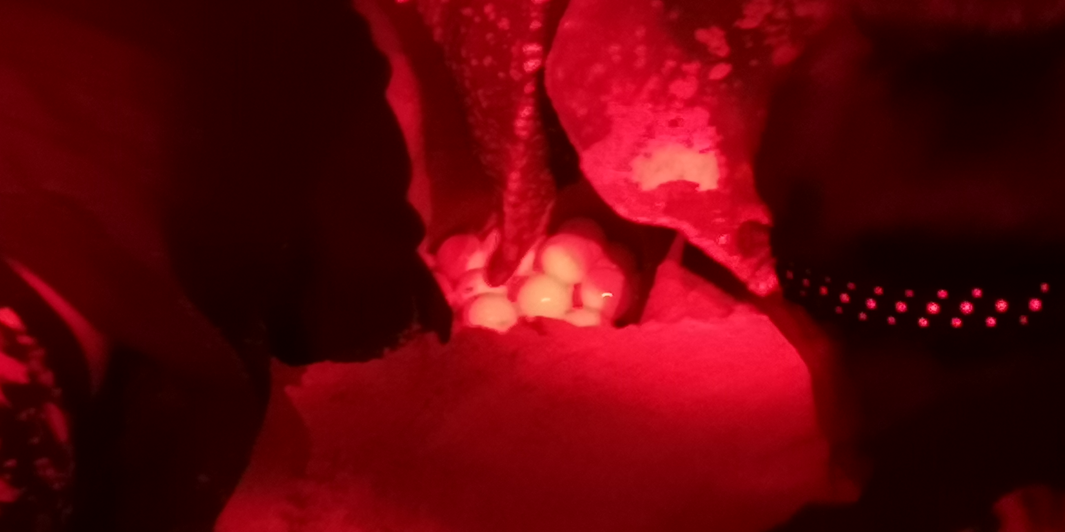 Auf den Fotos sieht man Mitglieder der Schutzorganisation beim Zählen der abgelegten Eier. Befruchtete Eier sind tischtennisballgroß, nicht befruchtete sind kleiner. Zwischen 100-150 Eier kann die Schildkröte in ein Gelege ablegen. Insofern klar, dass sie in einer Art Trance ist bei der Ablage. Diese Masse und Größe rauspressen. Nach der Ablage bedeckt die Schildkröte ihr Gelege in einem langwierigen Prozess, indem sie mit Hilfe ihrer Vorderflossen Sand nach hinten schaufelt und mit den Hinterbeinen über das Gelege schiebt. Beendet war alles um 24 Uhr. Zwischen 6-7 Mal wird die Schildkröte insgesamt zur Eiablage abends an den Strand kommen. Zwischen den Gelegen wird sie erneut Eier befruchten, bevor sie wieder an Land geht. Trotz der langen Wartezeit hat sich der Besuch für uns definitiv gelohnt.