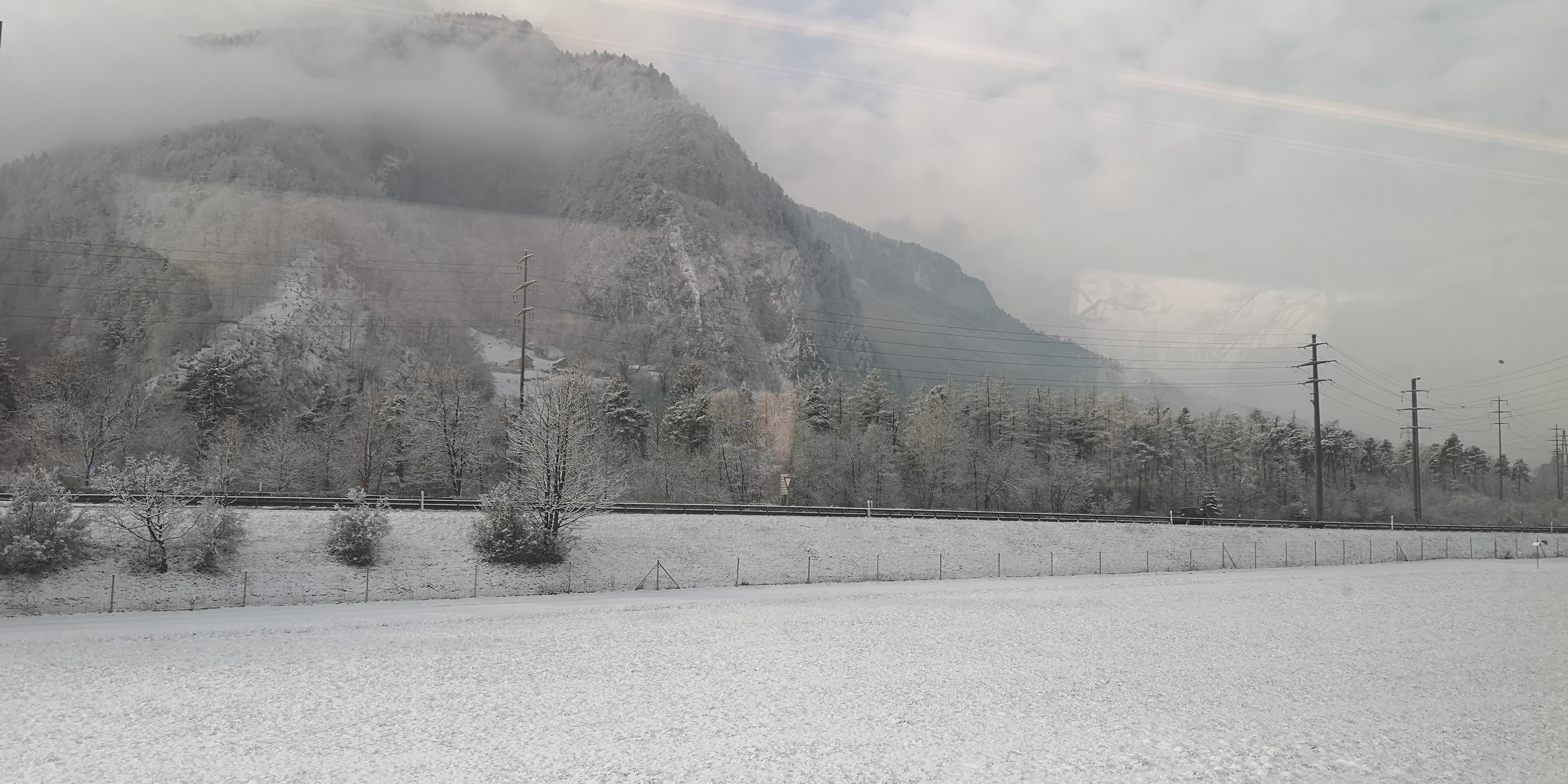 Die verschneite Schweizer Bergwelt zu verlassen, wird nicht so einfach: Kurz vorher hat der Fahrplan des örtlichen Sportbus gewechselt, was wir übersehen. Wir verpassen so den Postbus nach Chur, zu dessen Haltestelle uns der Sportbus hätte fahren sollen. Schnell ein Taxi bestellt – denn wir wollen den letzten ICE erwischen, der uns von Chur ohne x-maliges Umsteigen nach Frankfurt bringt. Das Taxi – kommt und kommt und kommt nicht. Auf gut Glück nehmen wir den nächsten Postbus, der uns bei planmässiger Ankunft noch 5 Minuten Zeit zum Umsteigen in den ICE lässt. Natürlich muss ausgerechnet jetzt an fast jeder Haltestelle jemand ein- oder aussteigen, ein Billet beim Fahrer lösen etc. etc. Bis zu 7 Minuten Verspätung haben wir kurz vor Chur. Grmpff!! Doch es geht alles glatt, wir erwischen den Zug. Mit all unserem Gepäck.