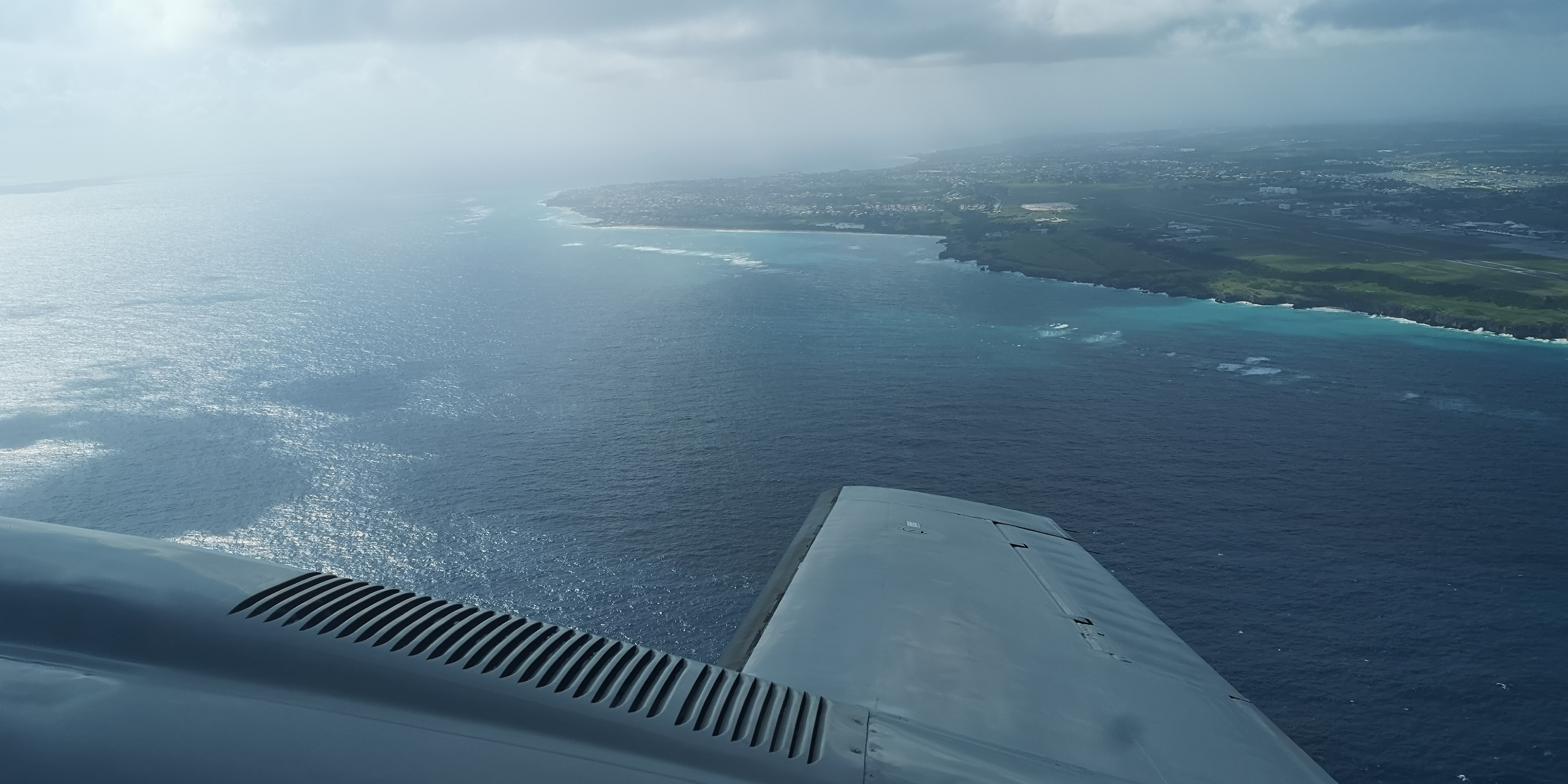 Gepäckmässig müssen wir uns einschränken. All die vielen Ersatzteile und Goodies, die wir so zusammengeordert haben, sind einfach zu schwer. Wir müssen in Barbados in einen kleineren Inselhopser umsteigen – der erlaubt nur 44lb (rund 19,8 kg) Freigepäck pro Person. Ich ordere noch ein 3tes Gepäckstück gegen Aufpreis – ein 4tes lässt das System nicht mehr zu, der Flieger ist voll. Also bleibt einiges hier.