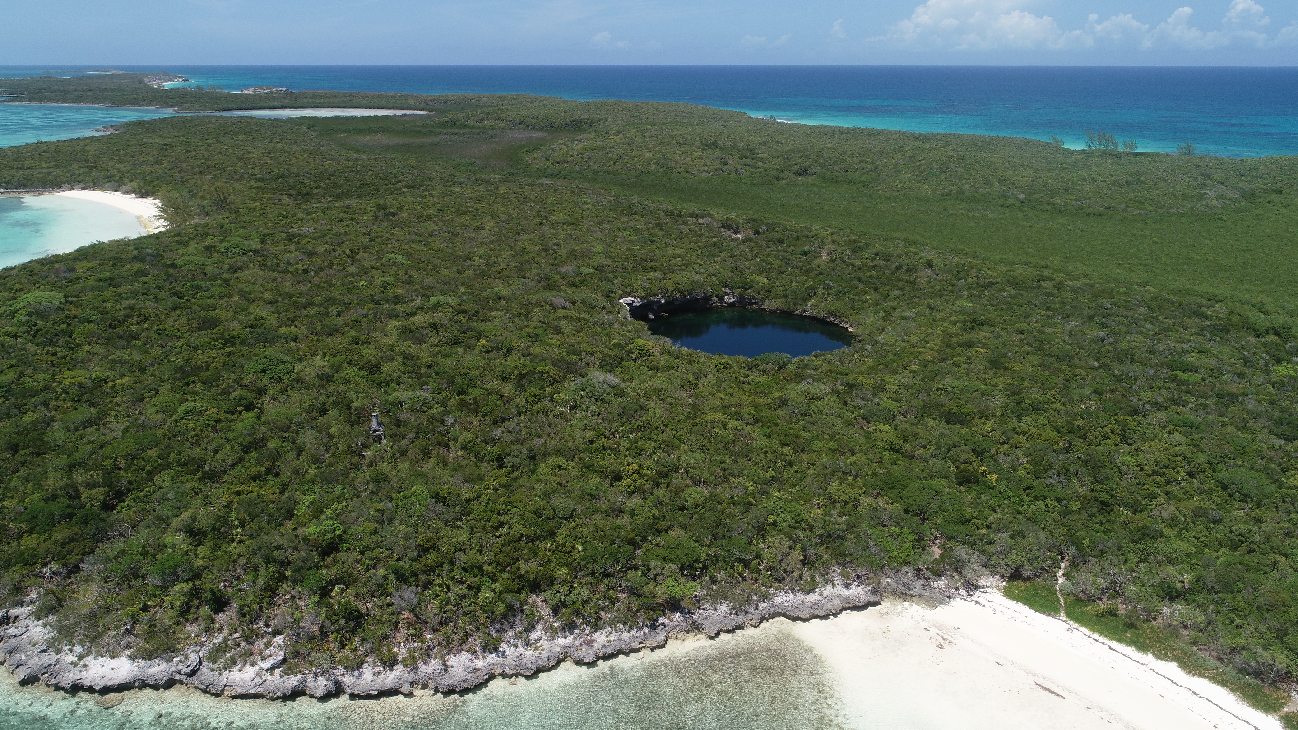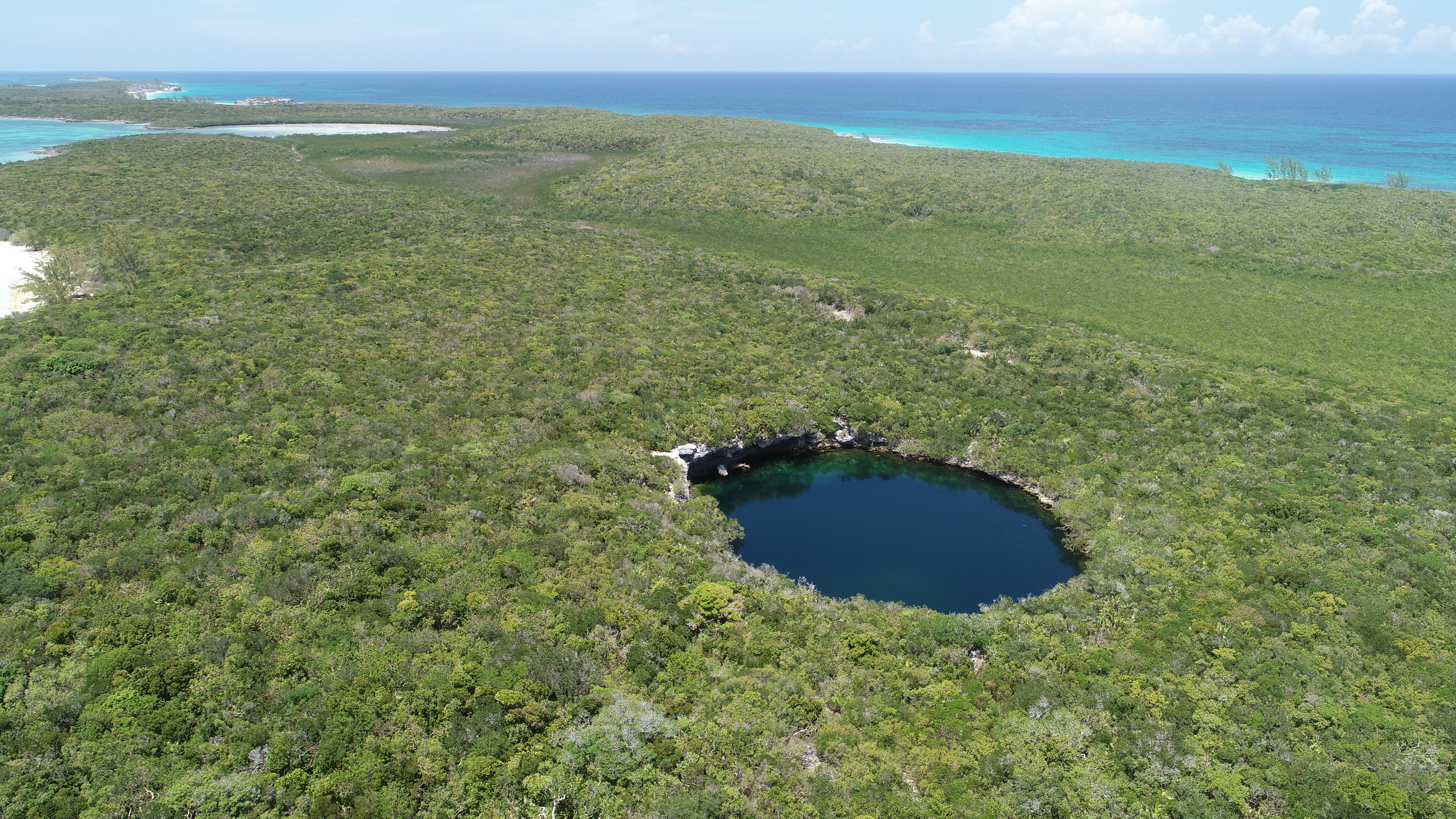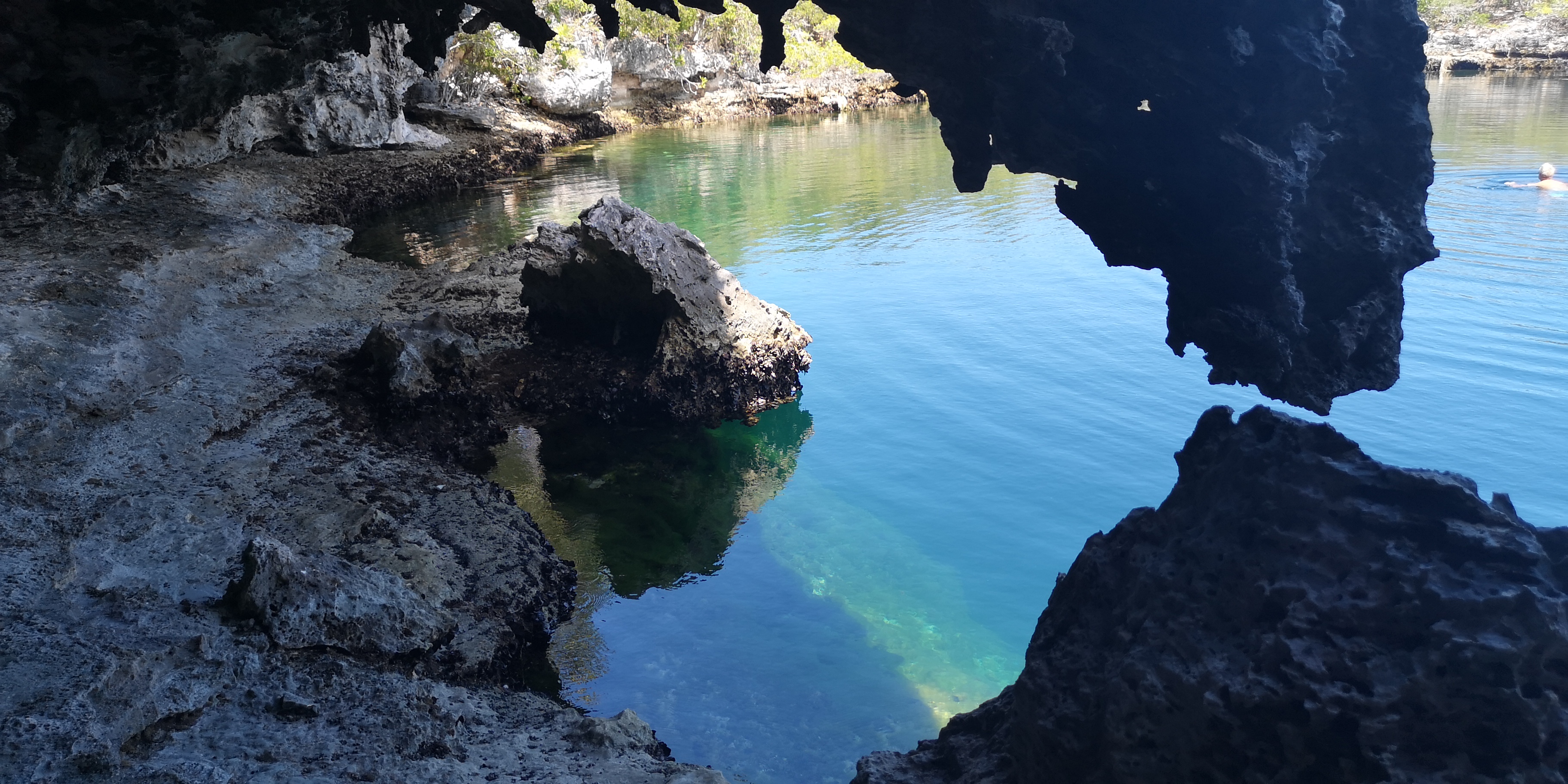 Die Bahamas sind übersät mit Blue Holes. Darüber habe ich schon in diversen BLOGs berichtet. Einige wenige Blue Holes sind nur von Land aus erreichbar – so auch das auf Hoffman’s Cay. Es ist sogar relativ weit im Inselinneren – und mit rund 180 m (laut Wikipedia), das sind 600 Fuß, enorm tief.