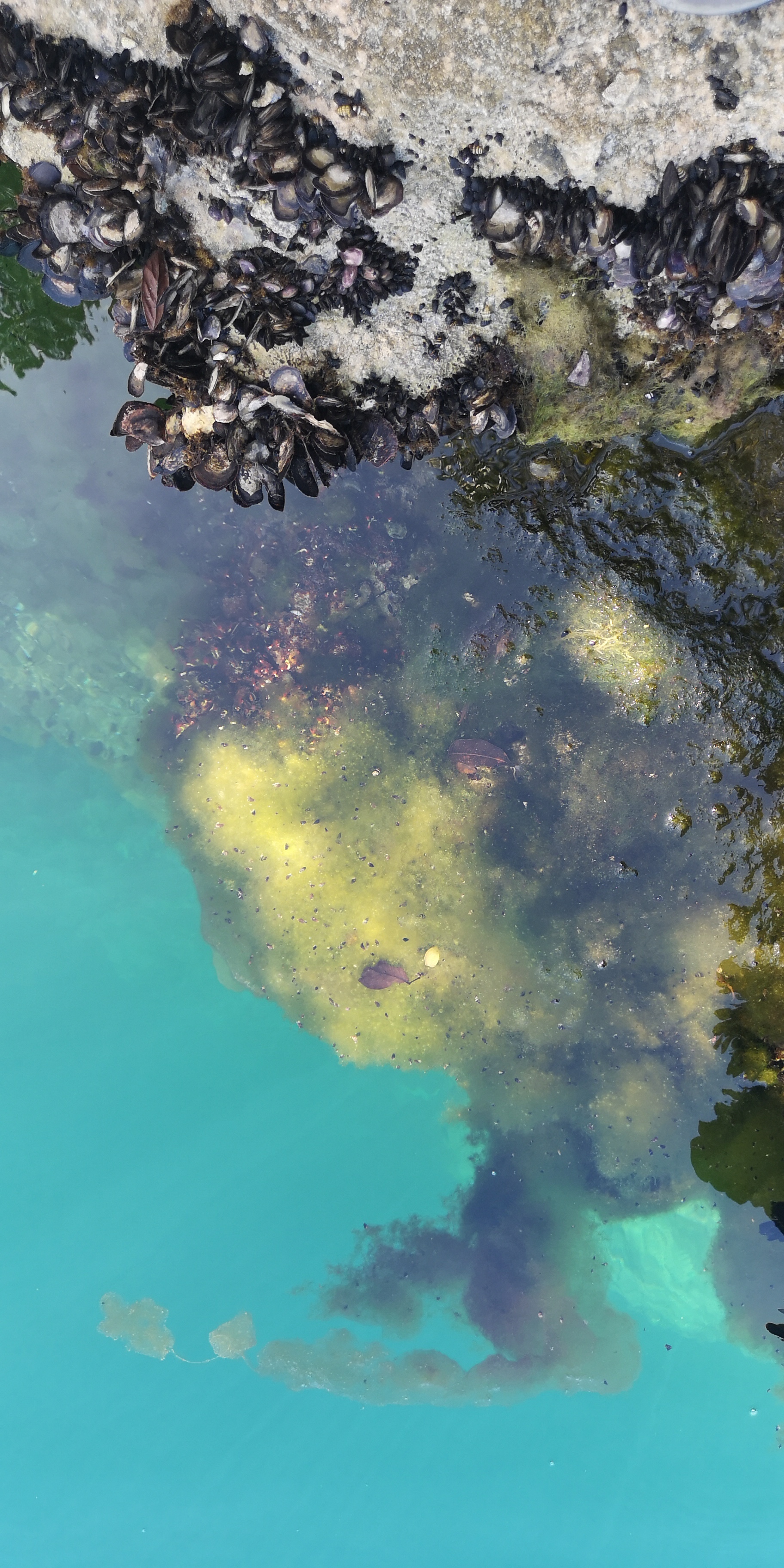 Ich lasse es mir nicht nehmen und springe von der unteren Felsküste hinein. Der kleine Fleck da in der Mitte bin ich (mehr in obigem Video):